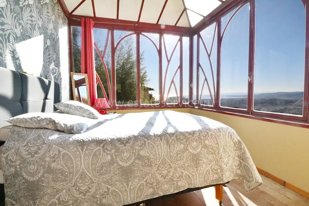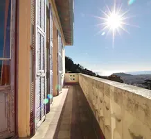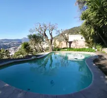 Элегантный особняк в колониальном стиле с захватывающей панорамой на море и окрестности. Общая площадь 259 m² (жилая 190 m²), земельный участок 1.100 m². На первом уровне отдельная студия 22.5 m², гараж 65 m² и мастерская, далее разместились прихожая 7.3 m², большая гостиная 64.8 m² с большой террасой, отдельная кухня 10.2 m², кабинет 11.6 m², санузел и гардеробная. Наверху - три большие спальни 11.5, 13.8 и 17.7 m², одна с балконом, душевой и гардеробной, общая ванная комната и туалет. Ориентировочная стоимость ремонта порядка 150.000 €. Годовой налог на имущество 2.270 €.