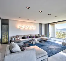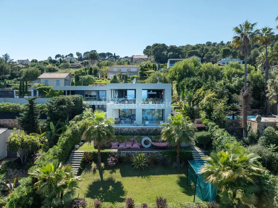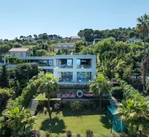 Солидная вилла 2019 года постройки с престижным и удобным расположением недалеко от Кап Ферра. Жилая площадь 300 m², на ландшафтном участке 1.600 m² шикарный сад, бассейн 15x5 м с ионизационной системой очистки, джакузи, спа-центр, винный погреб, гараж и парковка на несколько автомобилей. В доме - просторная гостиная с дизайнерским камином, столовая с открытой кухней, три элегантные спальни, отдельные апартаменты 45 m² и несколько панорамных террас.