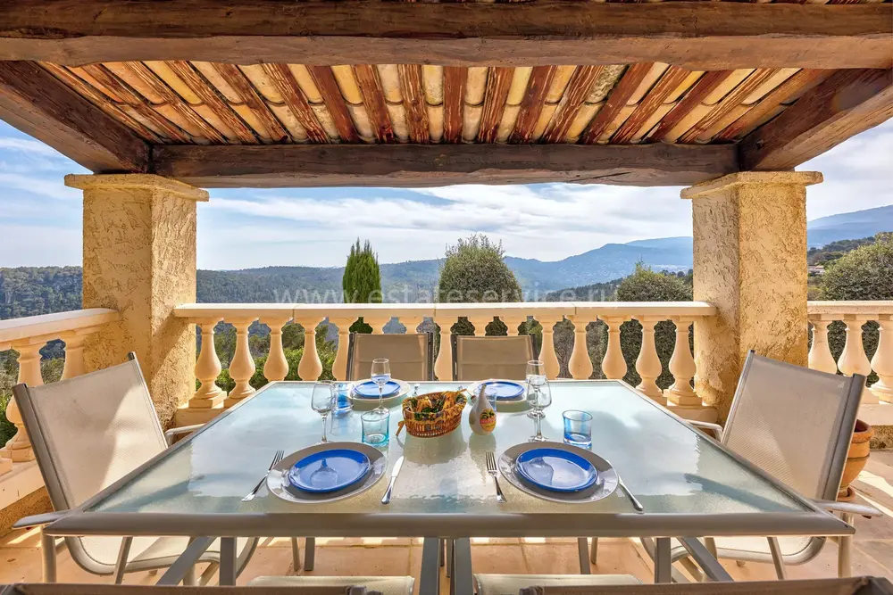 Вилла 1997 года постройки в нескольких минутах от средневековой деревни Tourrettes-sur-Loup. Жилая площадь 228 m², земельный участок 2.500 m². На трёх уровнях разместились просторная гостиная 41 m² с камином и кухня-столовая выходят на большие террасы, одна из которых с барбекю, пять спален 11.8, 12.6, 13.5, 16.9 и 18 m², ванная комната, две душевые с туалетами, отдельный санузел, а также домашний кинотеатр 22.5 m², прачечная 17.9 m², мастерская 11.9 m², гараж 14.1 m² и винный погреб. Хорошее состояние, бассейн с подогревом, реверсивный кондиционер, полы с подогревом, оптоволокно, площадка для игры в петанк.