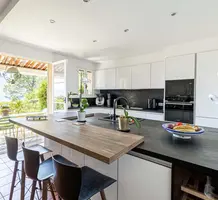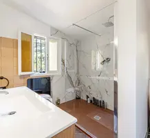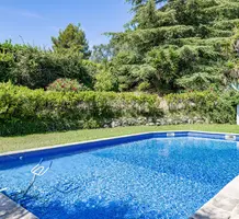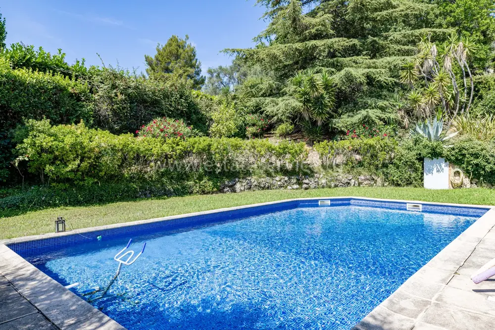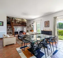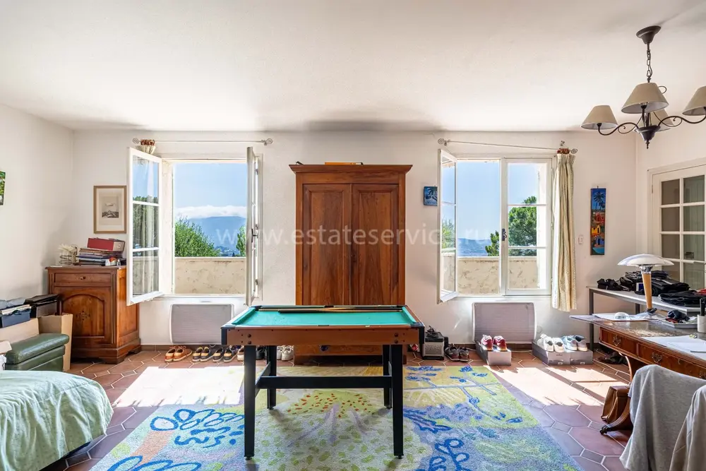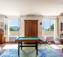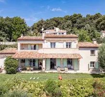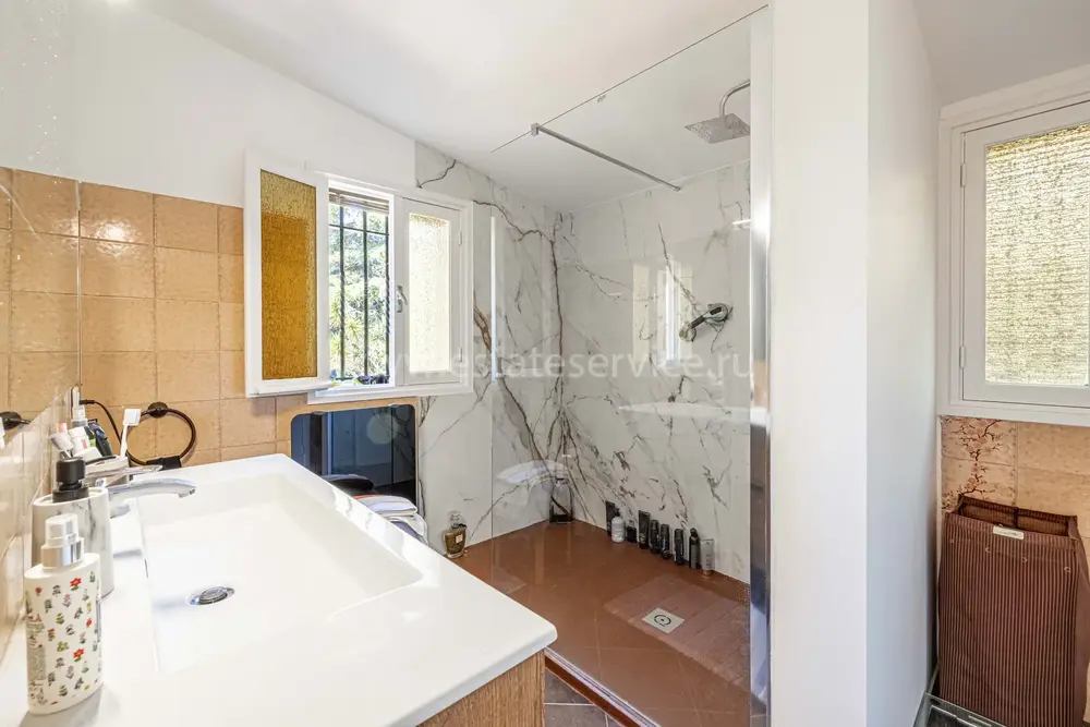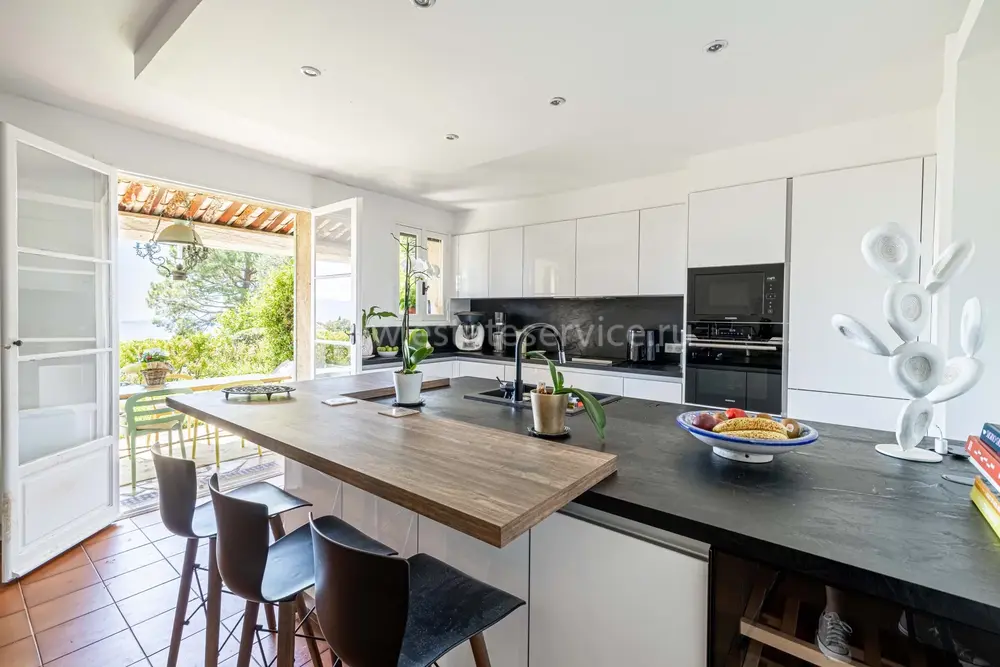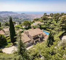 Провансальская вилла с доминирующим расположением и морским видом в закрытом поместье на 6 домов. Жилая площадь 230 m², на ровном участке 2.500 m² много (средиземноморские, оливковые и лимонные деревья) зелени, бассейн 11.5 x 5 m с морской водой и подогревом, площадка для петанка, гараж 20 m² и большая парковка. На первом уровне прихожая, уютная гостиная 55 m² с камином, выходящая на большую террасу, современная отдельная кухня 22 m² и главная спальня 26 m² с ванной комнатой. Наверху - ещё три спальни, одна с душевой и общая ванная комната. Годовой налог на имущество 4.855 €.