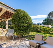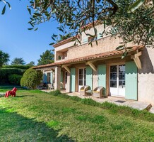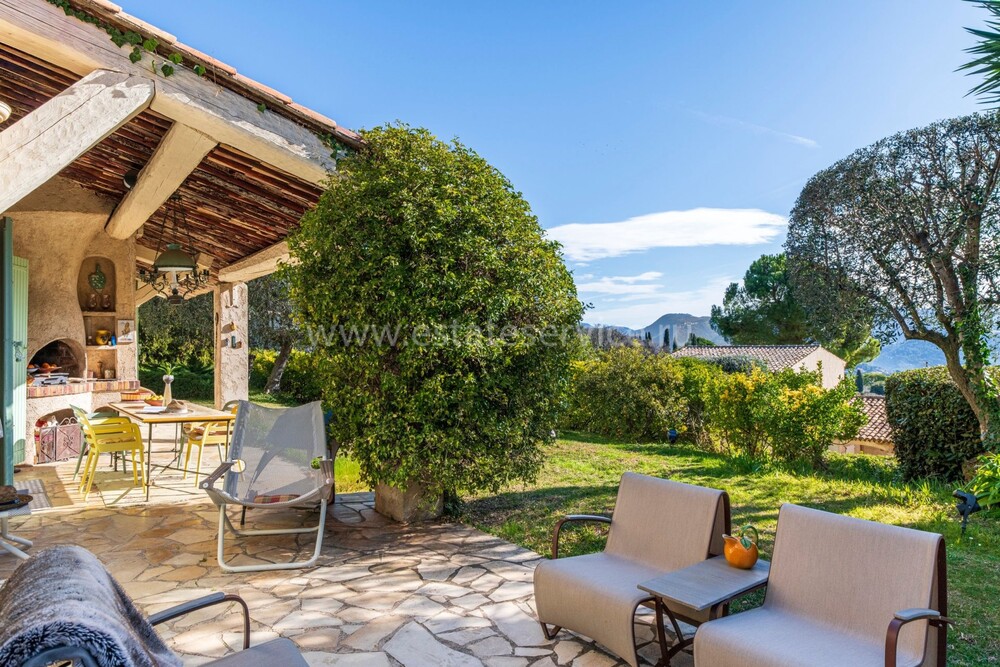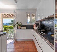 Провансальская вилла с доминирующим расположением и морским видом в закрытом поместье на 6 домов. Жилая площадь 230 m², на ровном участке 2.500 m² много (средиземноморские, оливковые и лимонные деревья) зелени, бассейн 11.5 x 5 m с морской водой и подогревом, площадка для петанка, гараж 30 m² и большая парковка. На первом уровне прихожая, уютная гостиная 55 m² с камином, выходящая на большую террасу, современная отдельная кухня 22 m² и главная спальня 26 m² с ванной комнатой. Наверху - ещё три спальни, одна с душевой и общая ванная комната. Годовой налог на имущество 4.855 €.