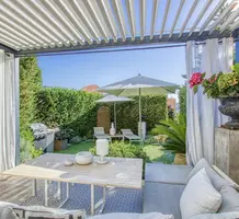 Очаровательная вилла с тихим расположением в закрытом кондоминиуме с видеонаблюдением в нескольких шагах от пляжа, сектор Figuièra. Общая площадь 85 m² (жилая 65 m²) - светлая гостиная-столовая с открытой кухней, две уютные спальни (одна со своей ванной), душевая комната с туалетом и терраса. Отличное состояние, есть частная парковка. Коммунальные платежи 296 €.