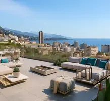 Квартира на верхнем этаже новостройки (заключительные этапы работ) с лифтом и видеонаблюдением всего на 23 апартамента. Общая площадь 346 m² (жилая 138 m²) - прихожая, большая гостиная с открытой кухней и общей террасой 43 m², три спальни, главная со своей душевой комнатой, туалетом и гардеробной, общая ванная комната, отдельный туалет, кладовая, а также шикарная терраса на крыше 159 m² с видом на море, Монако и Рокебрюн-Кап-Мартен. Качественные материалы, сниженные нотариальные сборы, десятилетняя гарантия от застройщика, включены кладовая и гараж 38 m² на два автомобиля.