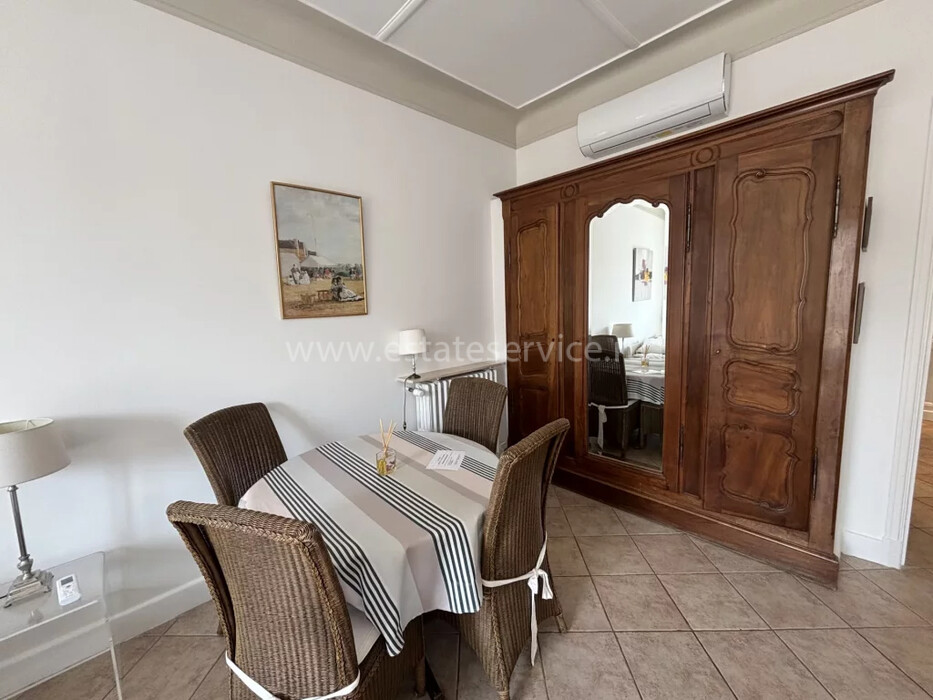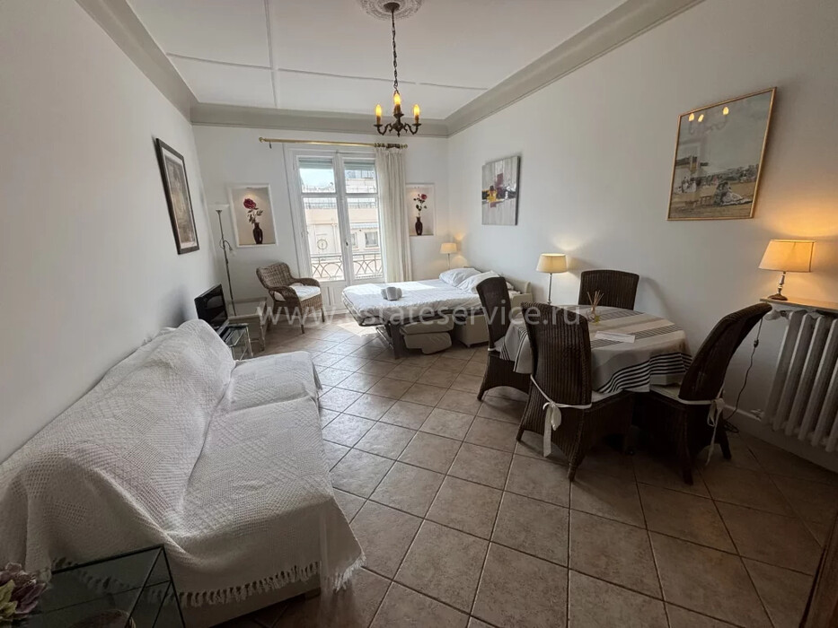 Большая студия в знаменитой резиденции с консьержем и видеонаблюдением в 30-ти метрах от пляжа - Palais Miramar. Жилая площадь 34.8 m² - прихожая с гардеробной, гостиная с балконом - боковой вид на море, отдельная кухня и душевая с туалетом. Одно из самых престижных и узнаваемых зданий, прилагается кладовая. Коммунальные платежи 170 €, годовой налог 1.138 €.
