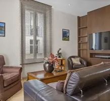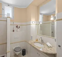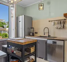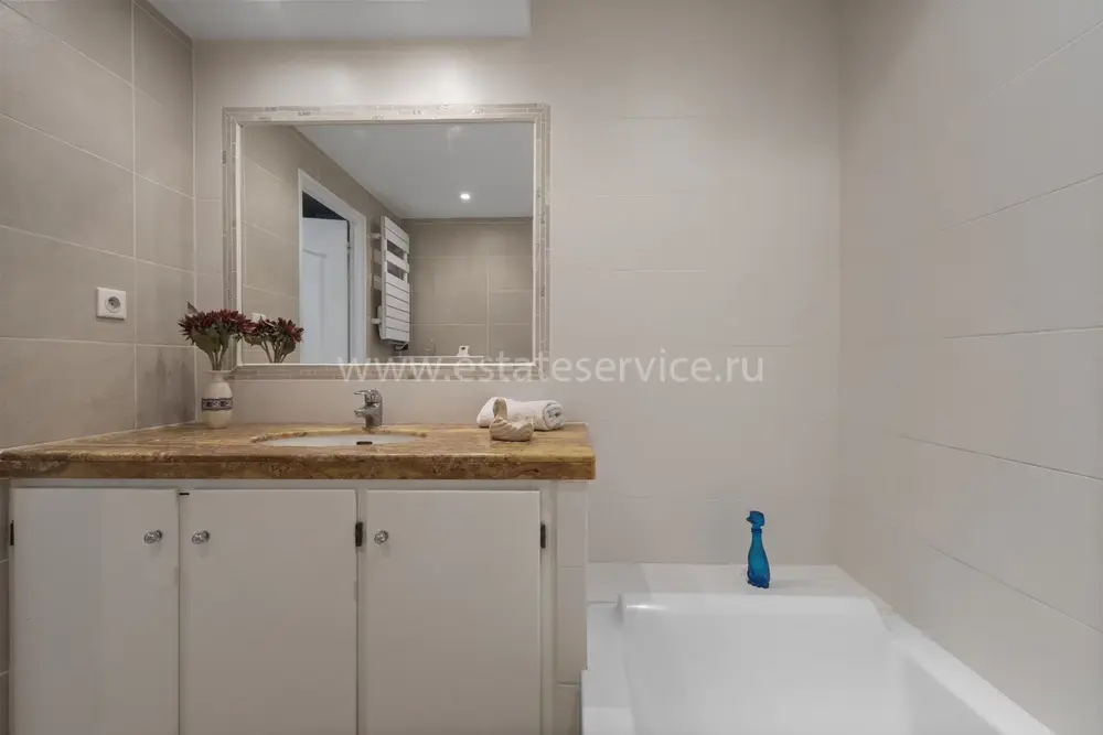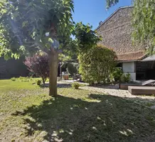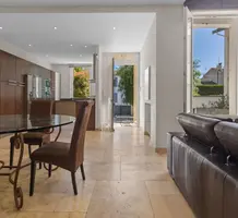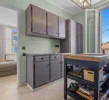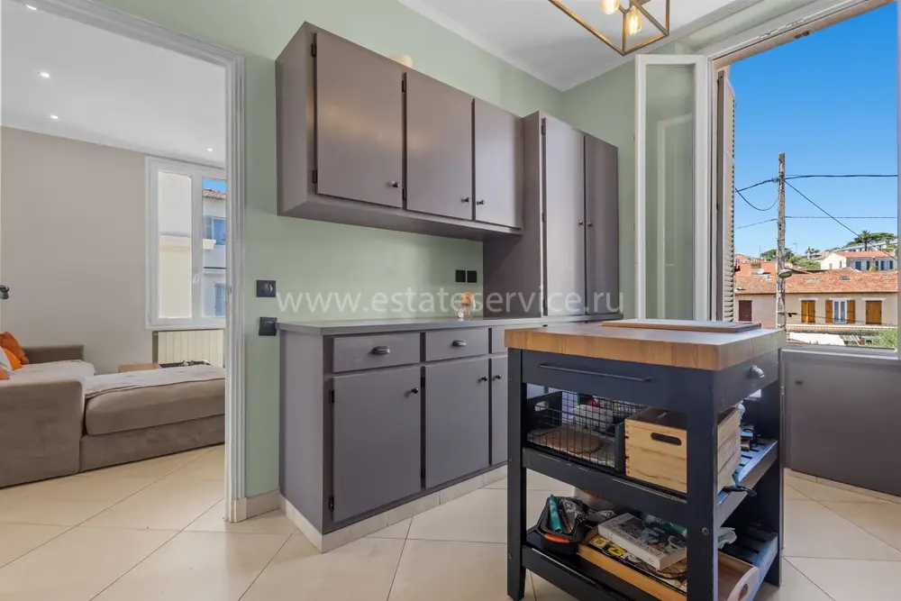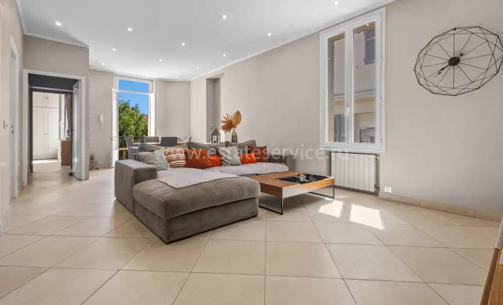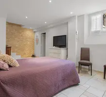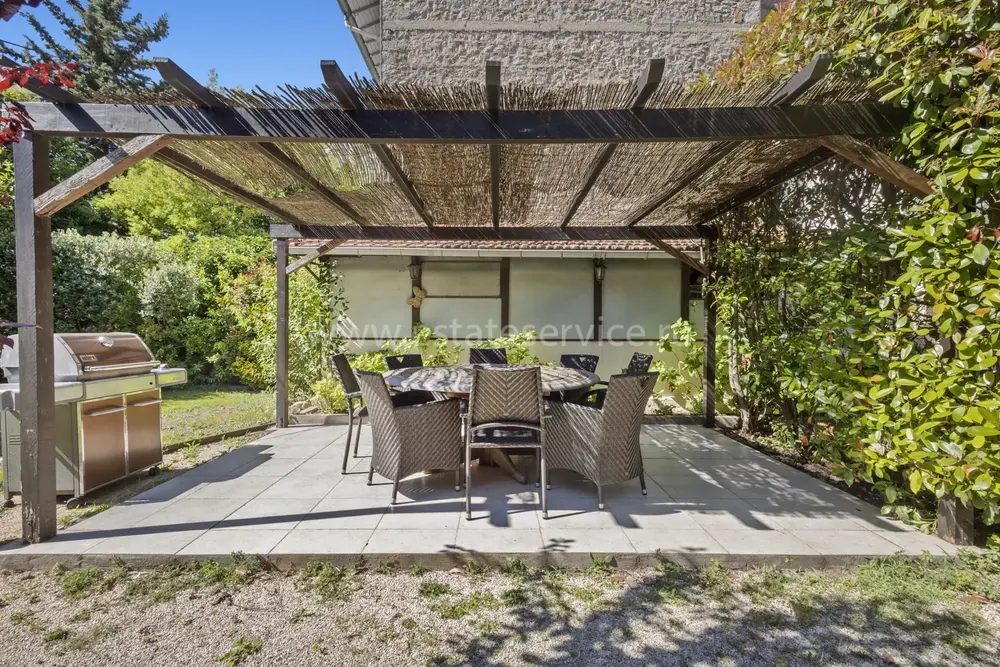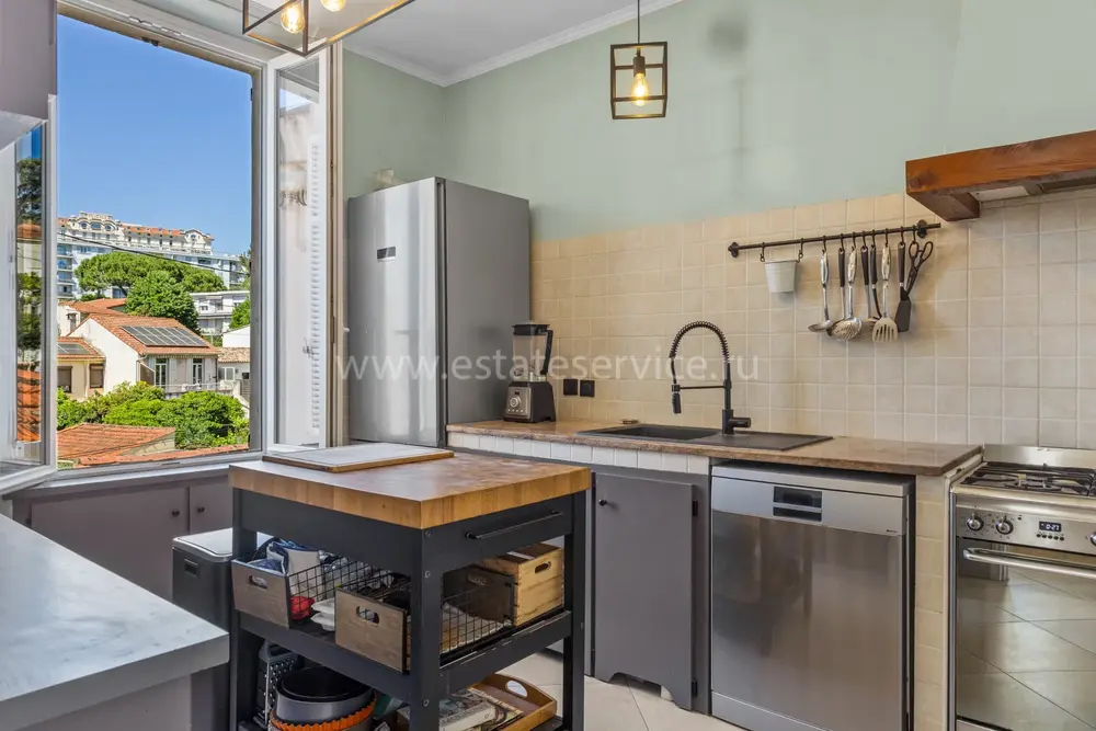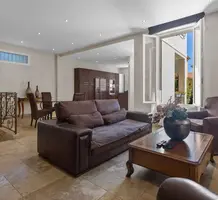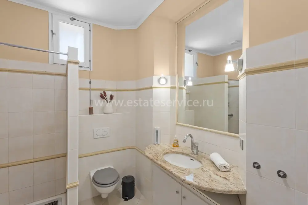 Элегантная вилла в пешей доступности от центра Канн. Общая площадь 230 m² (жилая 205 m²) разделена на две отдельные части, на ровном участке 888 m² аккуратный сад, есть место под бассейн, большой навес для автомобиля, пристройка 25 m² с подсобкой/котельной в задней части дома. Первая квартира (около 125 m², занимает первый этаж и мезонин) - гостиная 43.3 m² с открытой кухней, три спальни 14, 15.2 и 16 m², ванная, душевая и комната 26 m² под спорт-зал или гардеробную. Вторая часть 77 m² разместилась наверху - двойная гостиная-столовая 30.7 m², отдельная кухня 10.4 m², спальня 7.5 m², кабинет 20 m² и душевая с туалетом. Годовой налог на имущество 2.500 €.