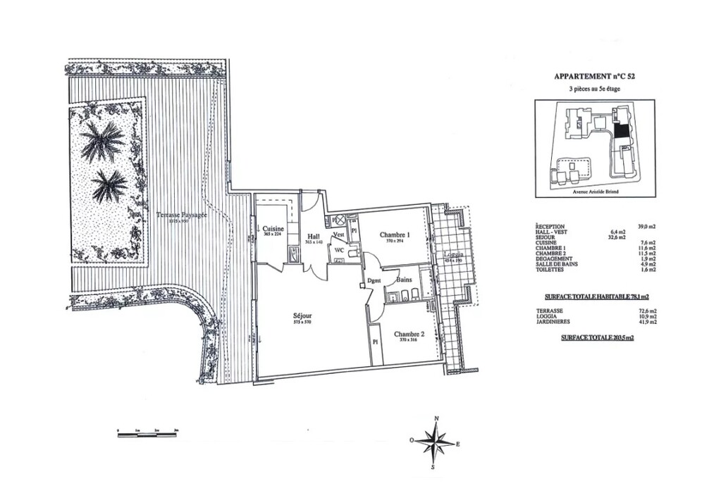 Квартира на верхнем этаже современной резиденции с консьержем, садиком, бассейном, спа-салоном, видеонаблюдением и спорт-залом на первой линии моря. Общая площадь 207.3 m² (жилая 77.7 m²) - прихожая 6.4 m² с гардеробной, гостиная-столовая 32.5 m² с примыкающей кухней 7.2 m² выходят на большую террасу 118 m² с садиком 40 m², две спальни 11.4 и 11.6 m² с балконом 10.8 m² - также с видом на море, общая ванная комната с туалетом и отдельный санузел. Отличное состояние, центральный кондиционер, включены кладовая и двойной крытый паркинг. Коммунальные платежи 587 €, годовой налог 2.833 €.