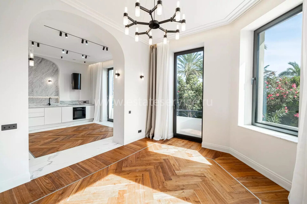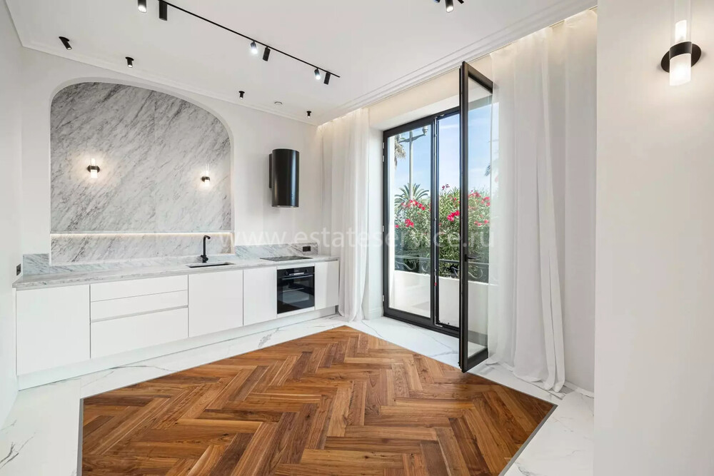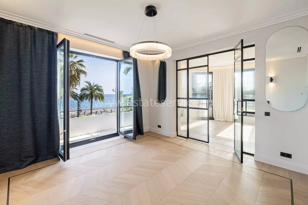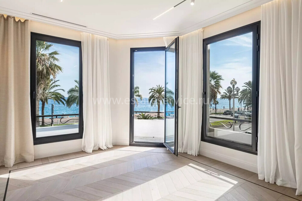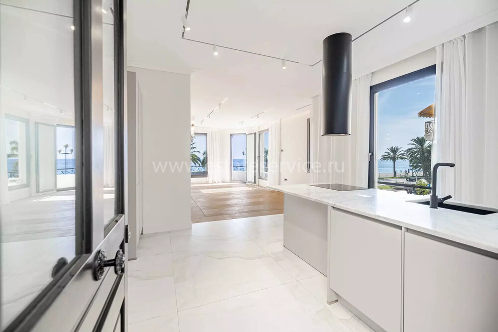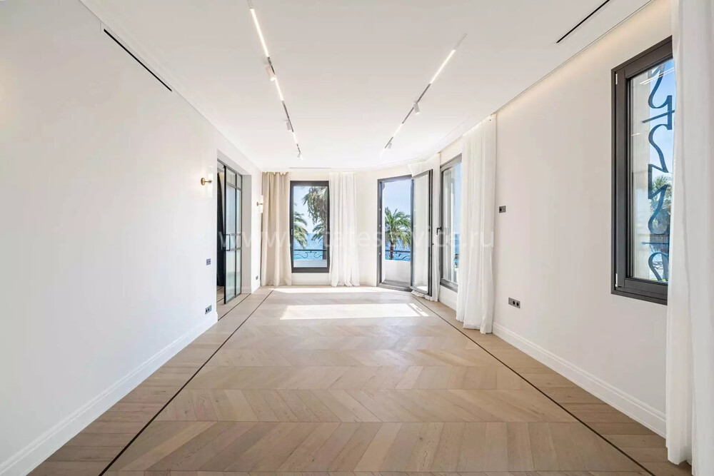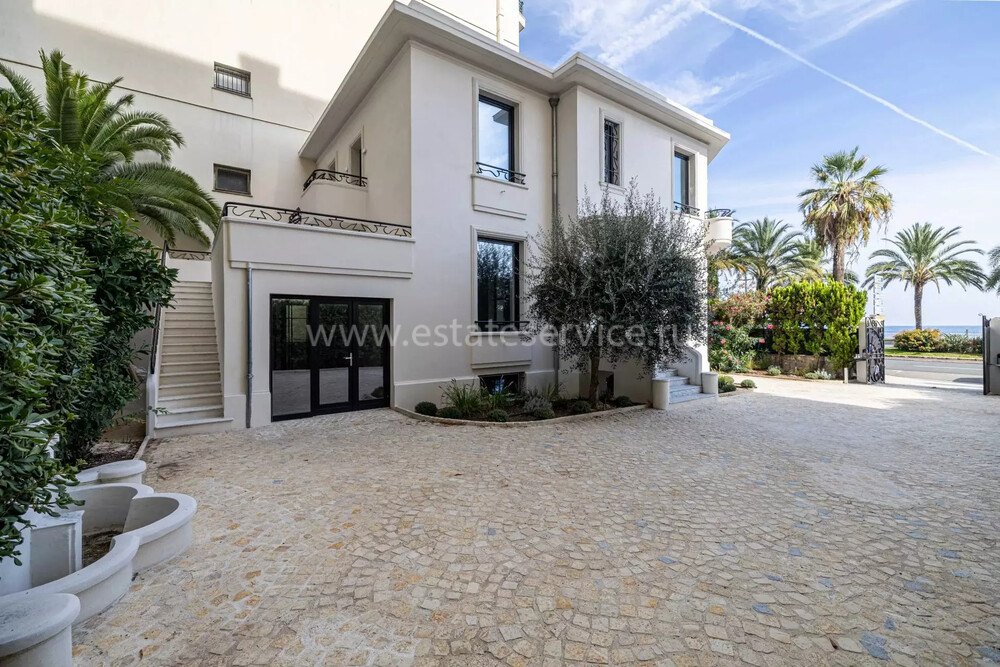 Полностью отремонтированная вилла с прямым видом на Promenade des Anglais и залив Ангелов. Жилая площадь 238 m² включает три уровня, каждый из которых представляет собой отдельные апартаменты со своим входом. На первом этаже - гостиная 43 m² с кухней, две спальни 11.8 и 17.3 m², две душевые с туалетами. На втором - двойная гостиная-столовая 24.9 m² с островной кухней и террасой, две спальни 9.4 и 11.5 m², душевая комната с туалетом, прачечная 11.5 m² и коридор. Приземный уровень - прихожая 9.4 m², гостиная 16.9 m², столовая-кухня 14.8 m², две спальни 12.2 и 12.7 m² и две душевые с туалетами. Качественная отделка и материалы, собственный внутренний двор, вмещающий до четырёх автомобилей, охраняемая парковка на улице. Годовой налог на имущество 2.577 €.