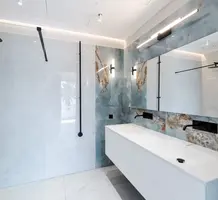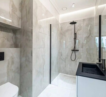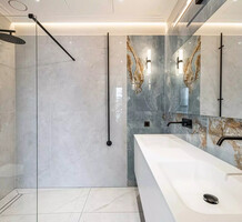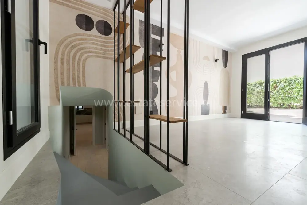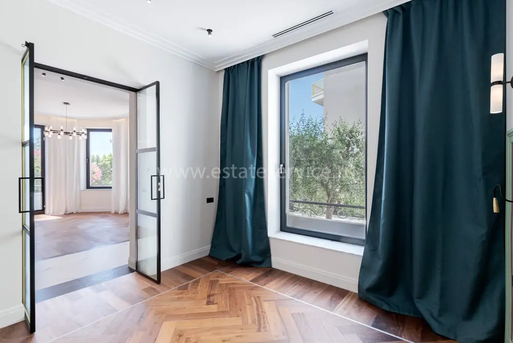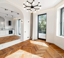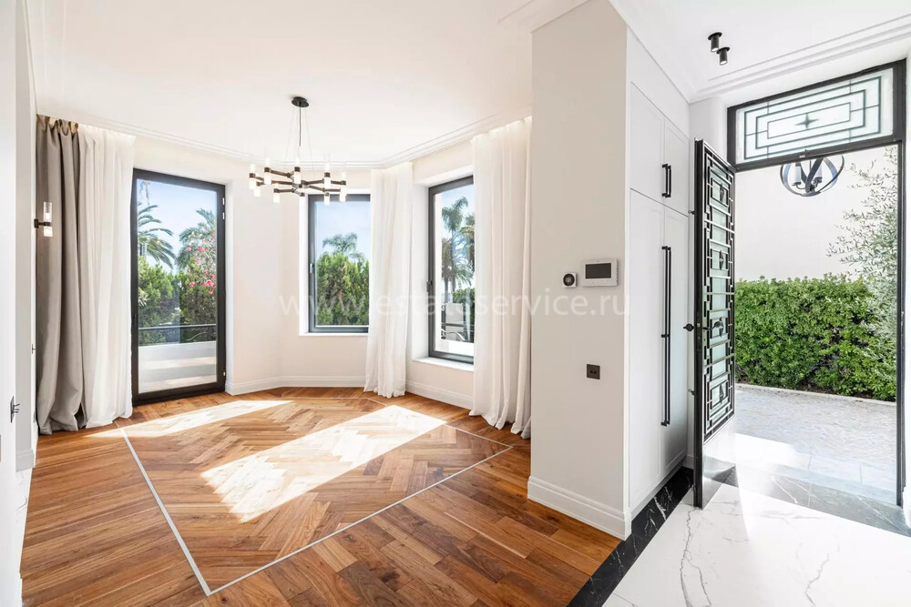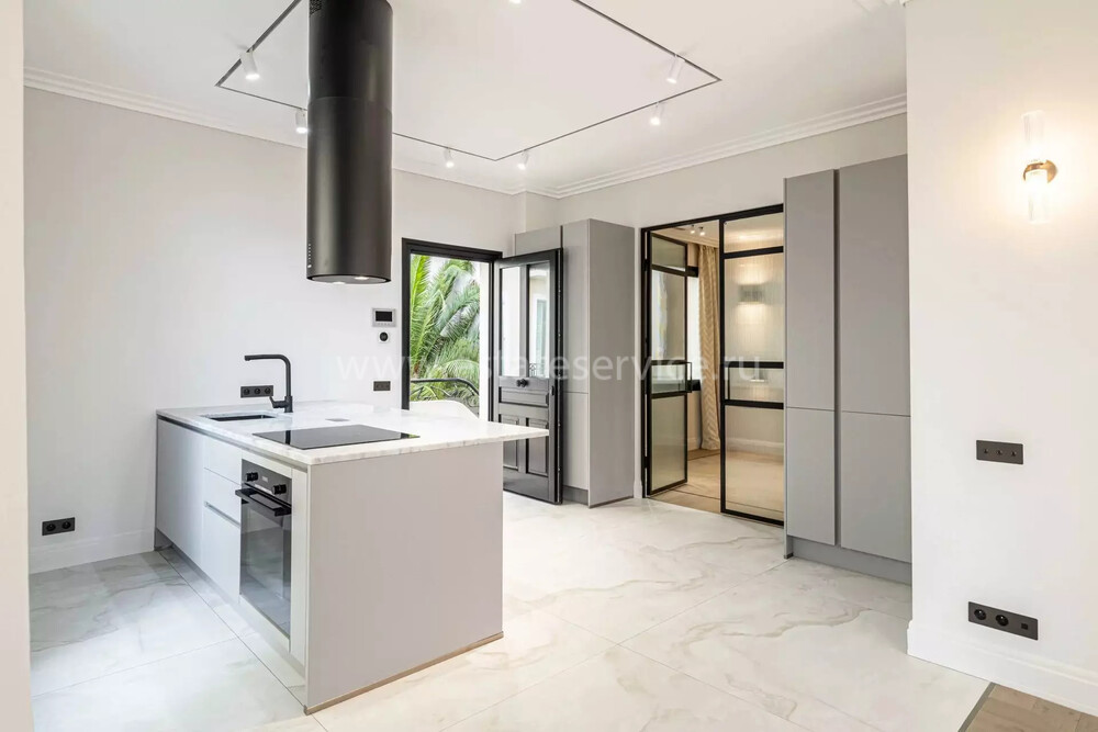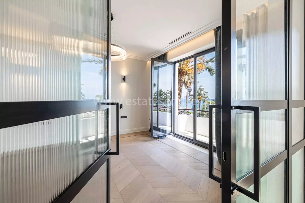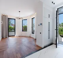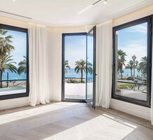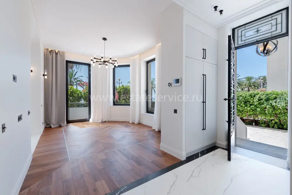 Полностью отремонтированная вилла с прямым видом на Promenade des Anglais и залив Ангелов. Жилая площадь 238 m² включает три уровня, каждый из которых представляет собой отдельные апартаменты со своим входом. На первом этаже - гостиная 43 m² с кухней, две спальни 11.8 и 17.3 m², две душевые с туалетами. На втором - двойная гостиная-столовая 24.9 m² с островной кухней и террасой, две спальни 9.4 и 11.5 m², душевая комната с туалетом, прачечная 11.5 m² и коридор. Приземный уровень - прихожая 9.4 m², гостиная 16.9 m², столовая-кухня 14.8 m², две спальни 12.2 и 12.7 m² и две душевые с туалетами. Качественная отделка и материалы, собственный внутренний двор, вмещающий до четырёх автомобилей, охраняемая парковка на улице. Годовой налог на имущество 2.577 €.