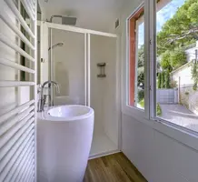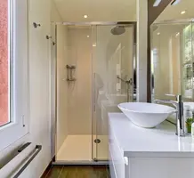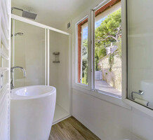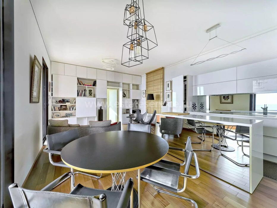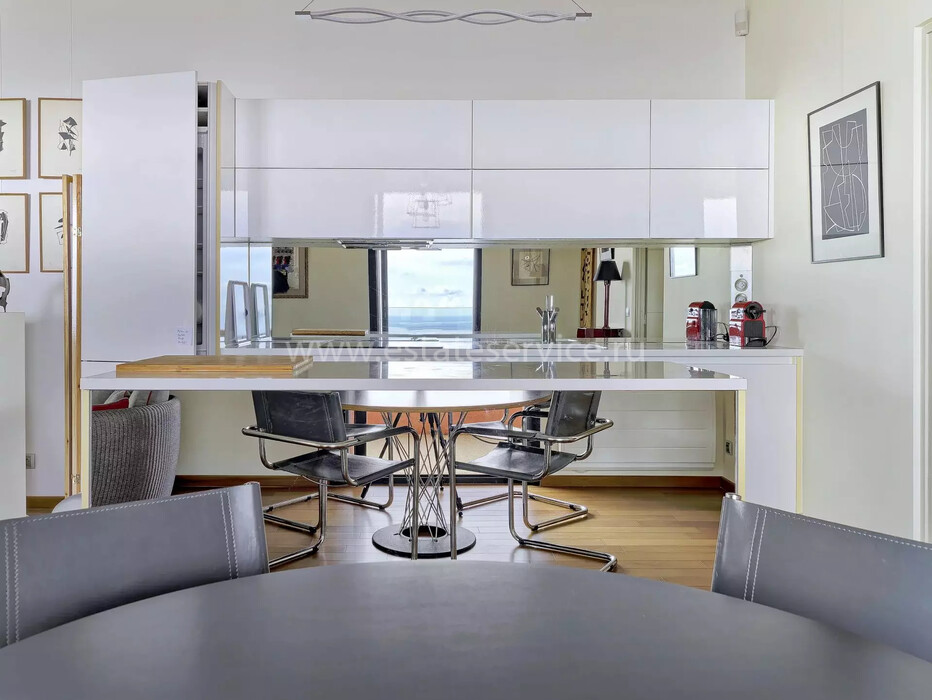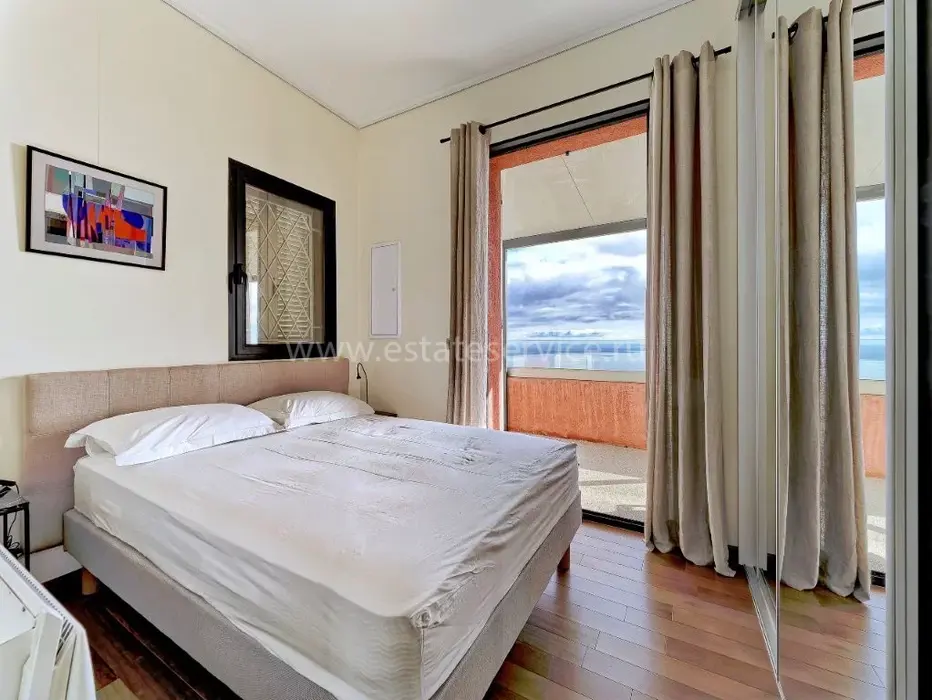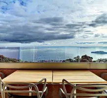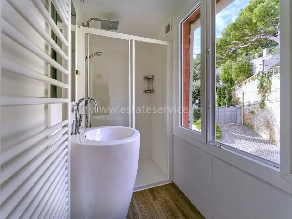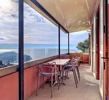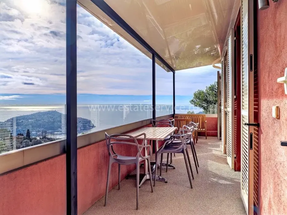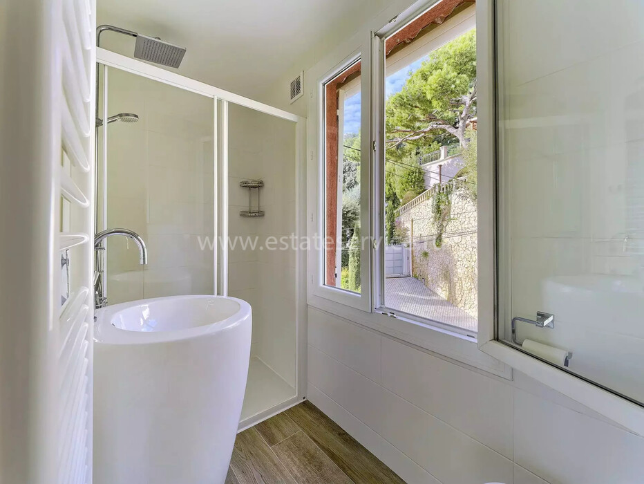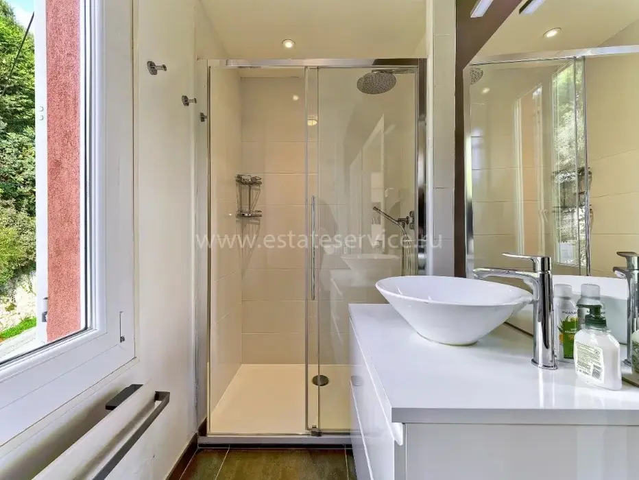 Светлая квартира с отдельным входом занимающая верхний этаж недавно отремонтированной виллы. Общая площадь 85 m² (жилая 59.1 m²) - прихожая, двойная гостиная-столовая с островной кухней, две спальни, каждая с собственной душевой комнатой и встроенными шкафами, а также крытая терраса 25 m² с видом на Кап-Ферра, Больё и порт Вильфранша. Хорошее состояние, включено парковочное место - редкое сочетание всех преимуществ дома по цене квартиры!