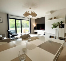 Современный таунхаус в закрытом безопасном кондоминиуме с бассейном в 1.5-х километрах от моря и порта. Общая площадь дома 106.9 m² (жилая 93.7 m² + гараж 13.2 m²) , на участке 281 m² ухоженный сад с газоном, есть место под бассейн. В доме - просторная гостиная 40.8 m² с кухней открытой планировки и выходом на южную террасу и сад, наверху разместились три спальни, ванная комната и душевая. Идеальное состояние, центральный кондиционер, солнечные панели, два парковочных места перед домом - гараж можно переделать в четвертую спальню (также будет выходить в сад) на первом этаже. Коммунальные платежи за квартал 225 €, годовой налог 1.511 €.