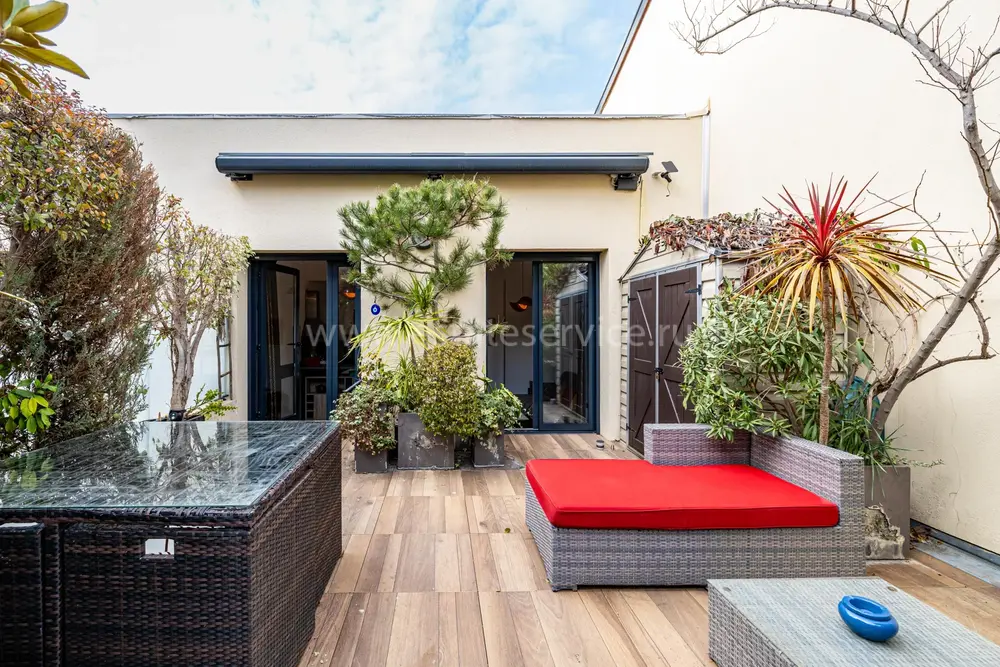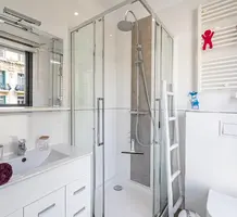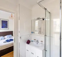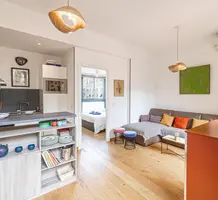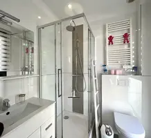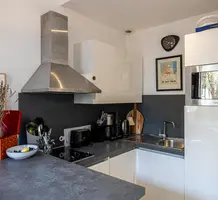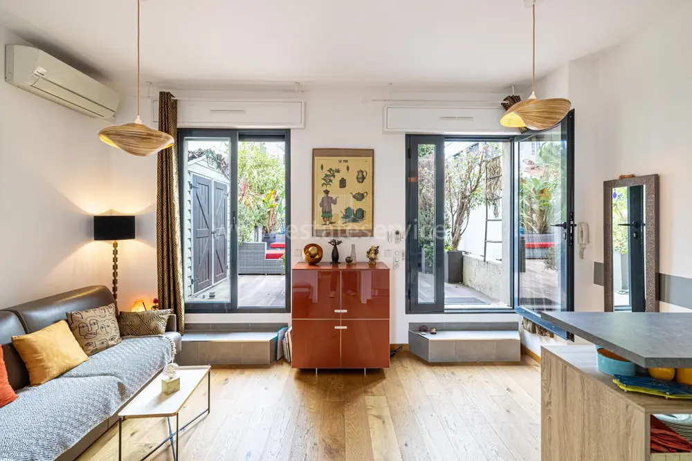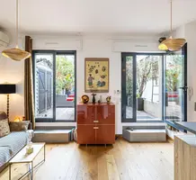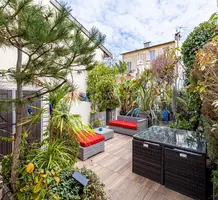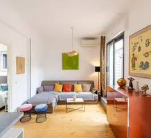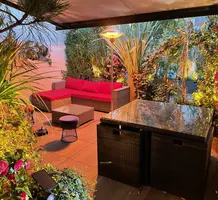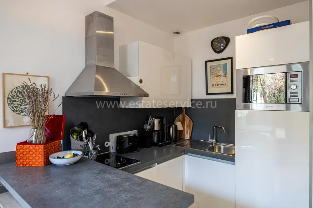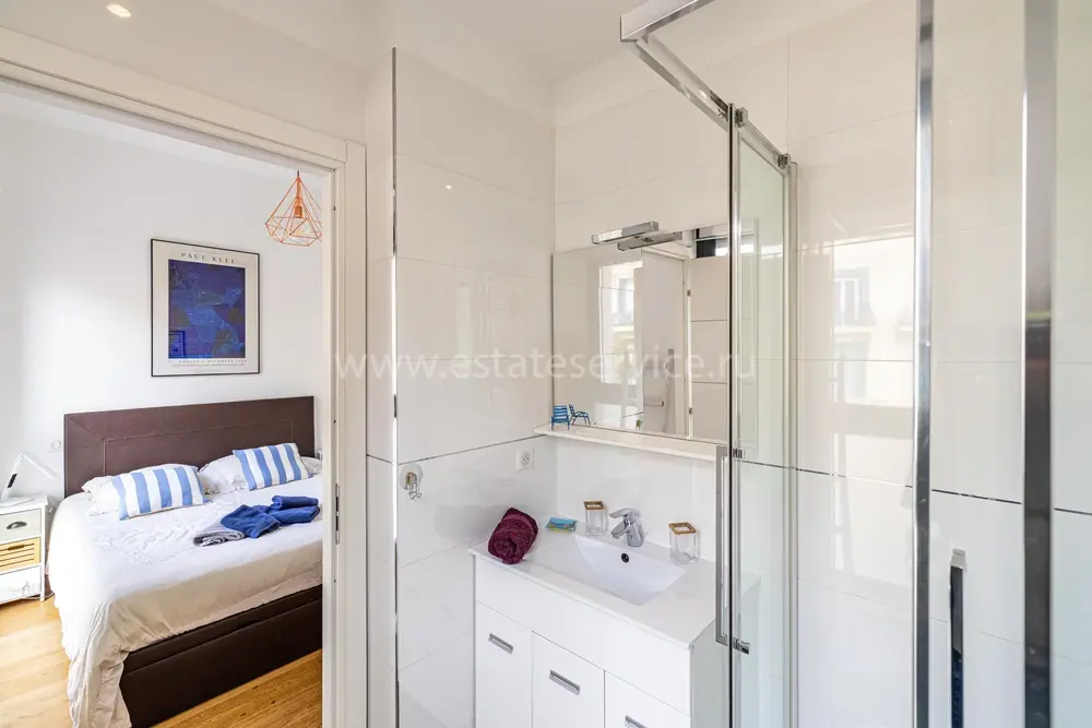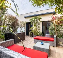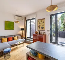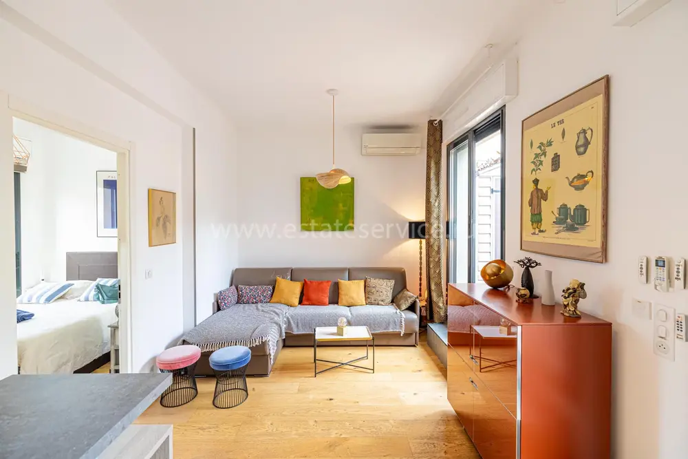 Квартира на верхнем (пятом) этаже резиденции 2016 года постройки в центра Ниццы. Общая площадь 75 m² (жилая 30 m²) - светлая гостиная 17 m² с открытой кухней, спальня 9 m² с прилегающей душевой/туалетом и шикарная уютная терраса с зелёной зоной. Отличное состояние, близость школы и магазинов, установлен кондиционер, возможна продажа с мебелью, кладовая. Коммунальные платежи 115 €, годовой налог 889 €.