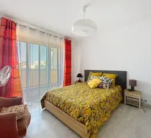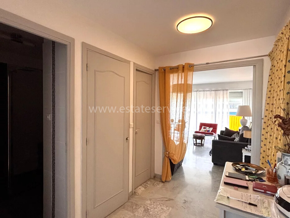 Квартира на шестом (предпоследнем) этаже ухоженного здания поблизости от школы, магазинов, моря и центра. Жилая площадь 51.7 m² - прихожая, гостиная 21 m² с террасой, отдельная кухня 8.5 m² и спальня 12 m² выходят на вторую террасу с открытым видом, стильная душевая комната и отдельный туалет. Приличное состояние, установлен кондиционер, включён гараж, можно купить с мебелью, разрешена сдача в аренду. Коммунальные платежи 190 €, годовой налог 1.045 €.