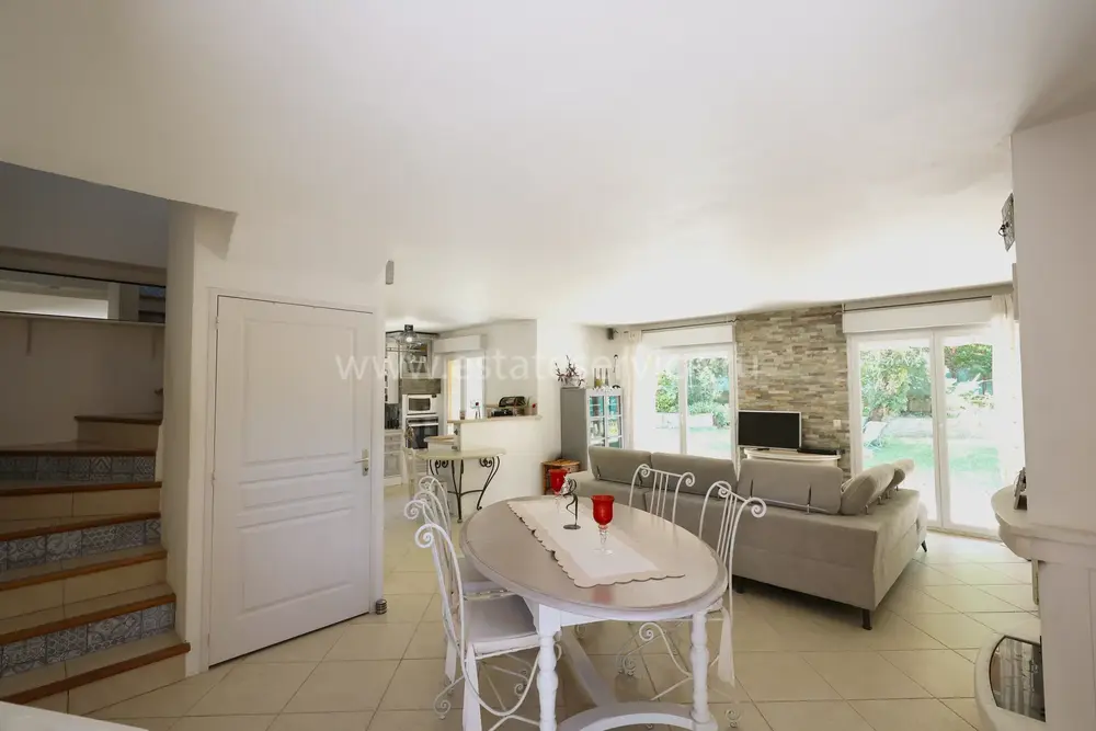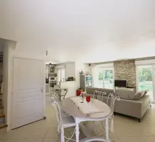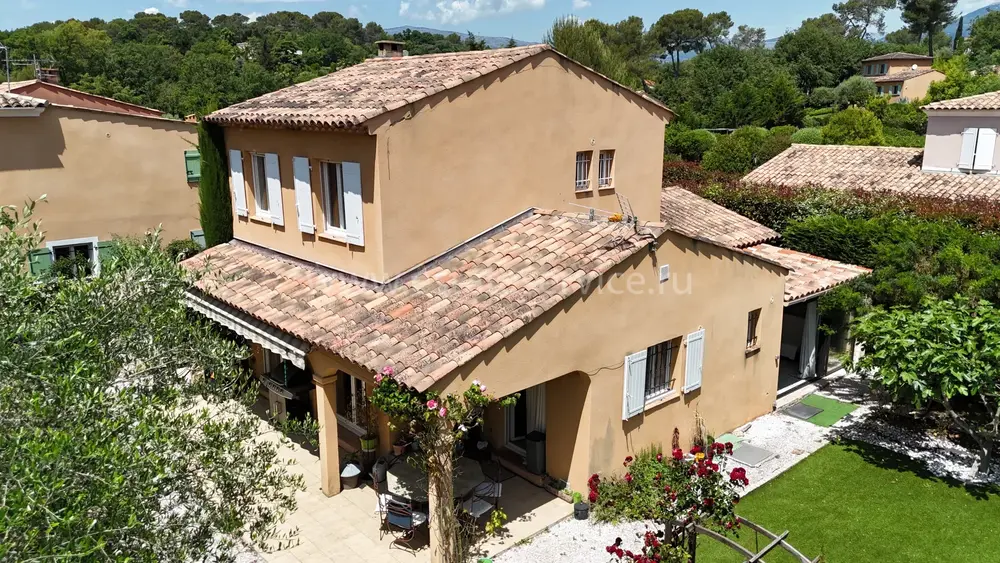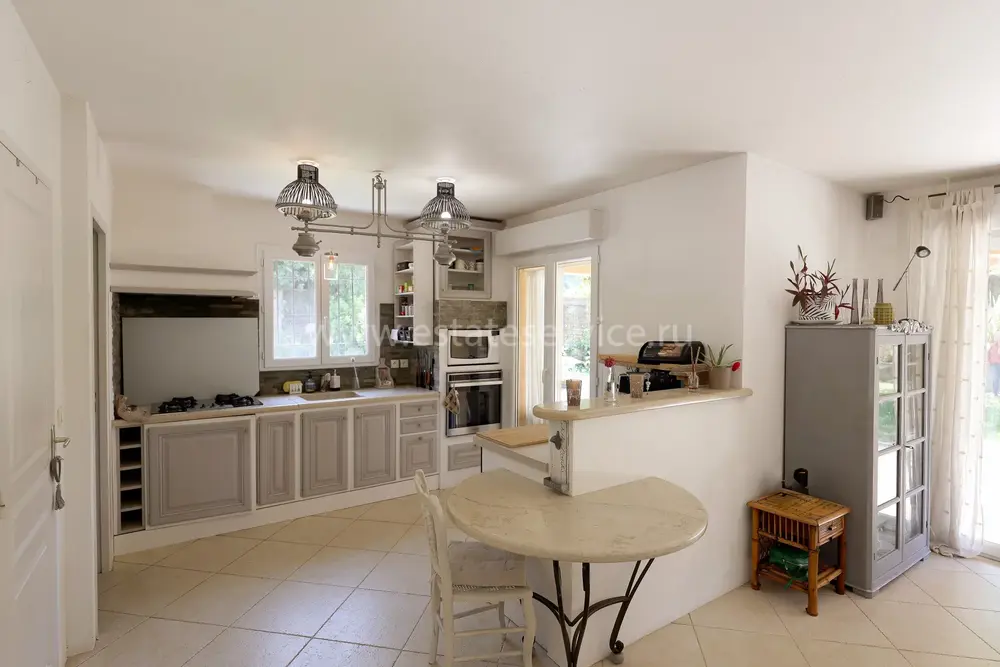 Отдельная вилла в центре частного закрытого поместья в пешей доступности от лицея Lycée Simone Veil, колледжа Collège Niki de Saint-Phalle, магазинов и общественного транспорта. Общая площадь 110 m² (жилая 93 m²), на ровном участке 600 m², красивый сад с газоном и деревьями, сарай, гараж и парковка на несколько автомобилей. В доме - светлая гостиная 35 m² с камином, примыкающей кухней 9.4 m² и выходом на большую террасу 25.5 m², веранда 10.7 m², три спальни 9.7, 10.8 и 11 m², кабинет 3.9 m², ванная и душевая комнаты, санузел и большая гардеробная. Хорошее состояние, подогрев полов, двойные стеклопакеты, 20 минут от моря. Коммунальные платежи 58 €, годовой налог 840 €.