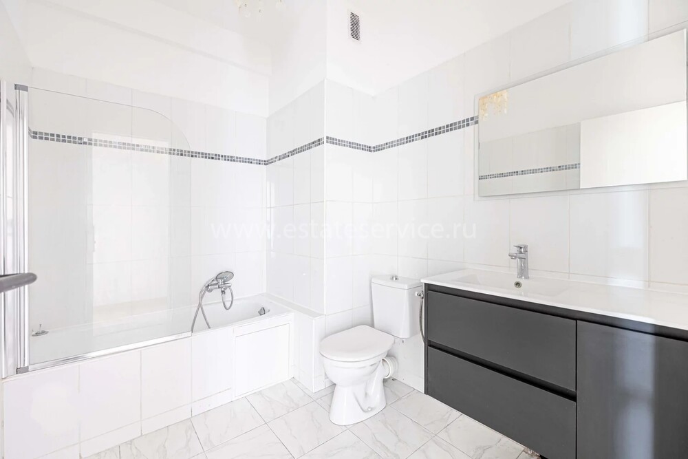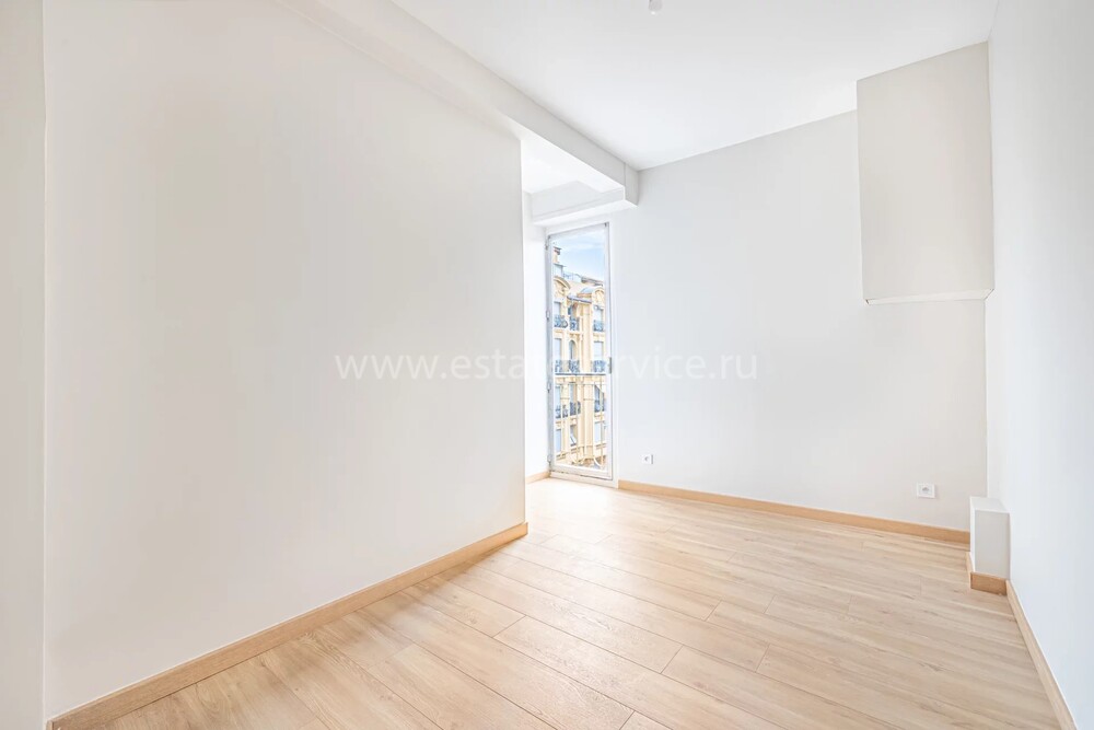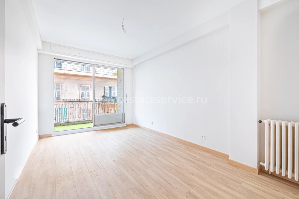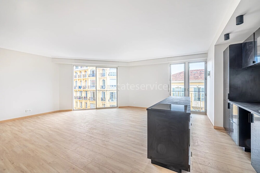 Светлые и просторные апартаменты с ремонтом на пятом (5/7) этаже закрытой резиденции в центре Ниццы. Жилая площадь квартиры 110.8 m² - прихожая, большой холл, эркерная гостиная 37 m² с островной кухней и балконом, три спальни с террасой, ванная комната с туалетом и отдельный санузел с умывальником. Коммунальные платежи 220 €, годовой налог 2.490 €.