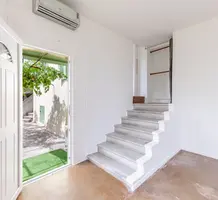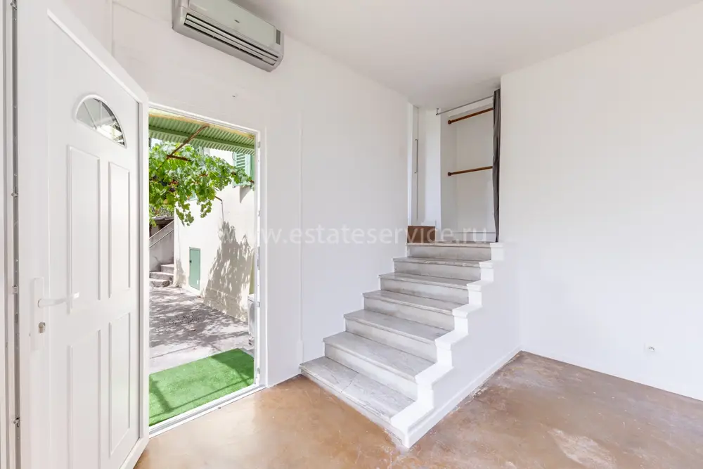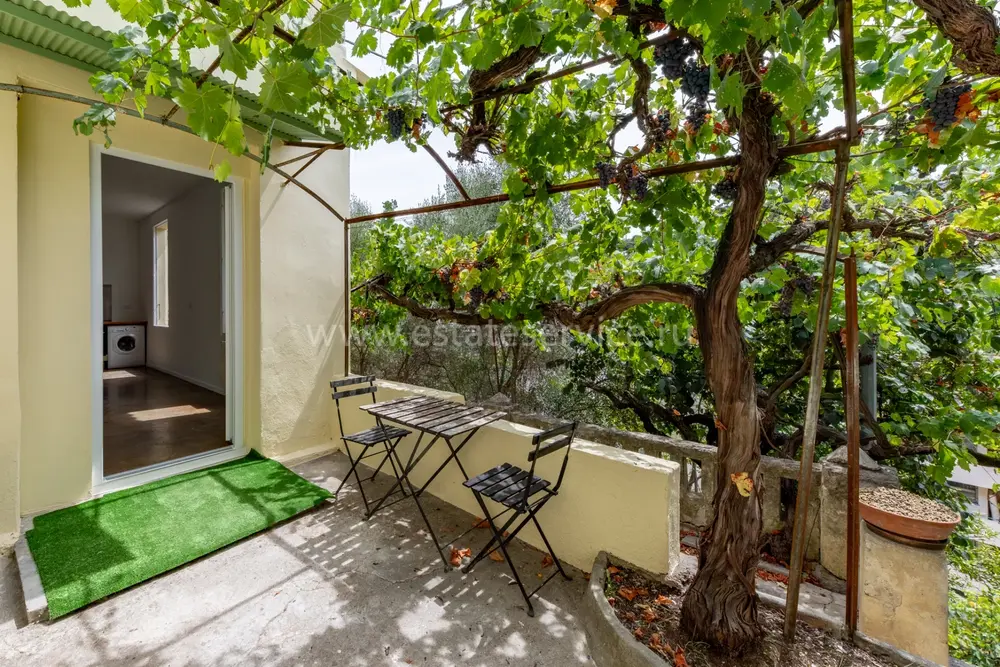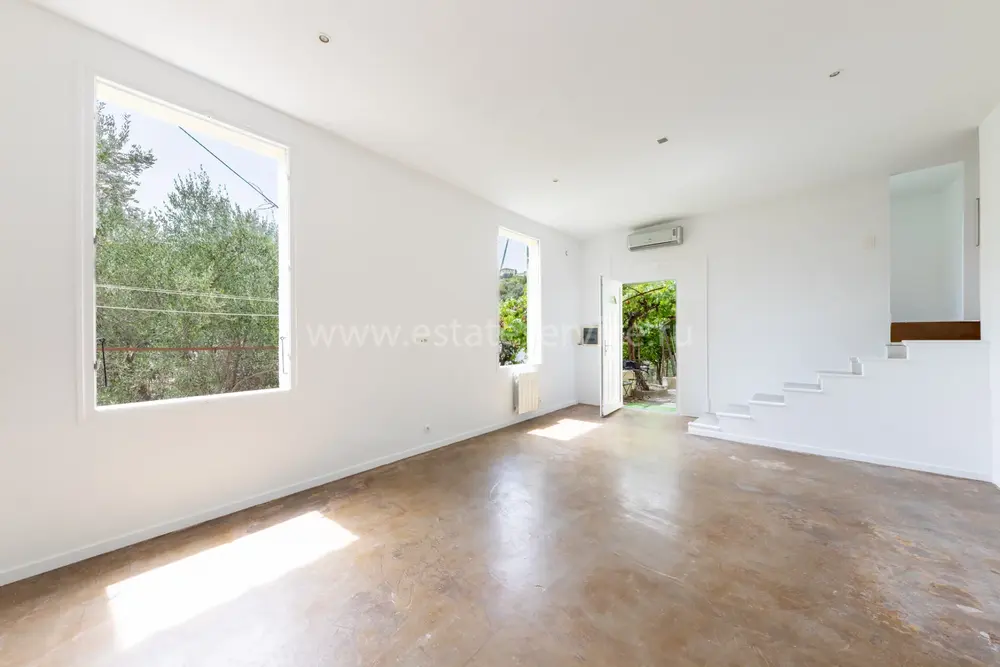 Небольшая обновлённая вилла на возвышенности в секторе Маньян. Жилая площадь 45 m² + подвал и террасы, на пологом участке 435 m² несколько деревьев, можно разбить огород. В доме - просторная гостиная-столовая 31 m² с кухней, спальня с примыкающей душевой и туалетом. Пешая доступность магазинов и основной инфраструктуры, с участка есть небольшой проблеск моря. Годовой налог на имущество 190 €.