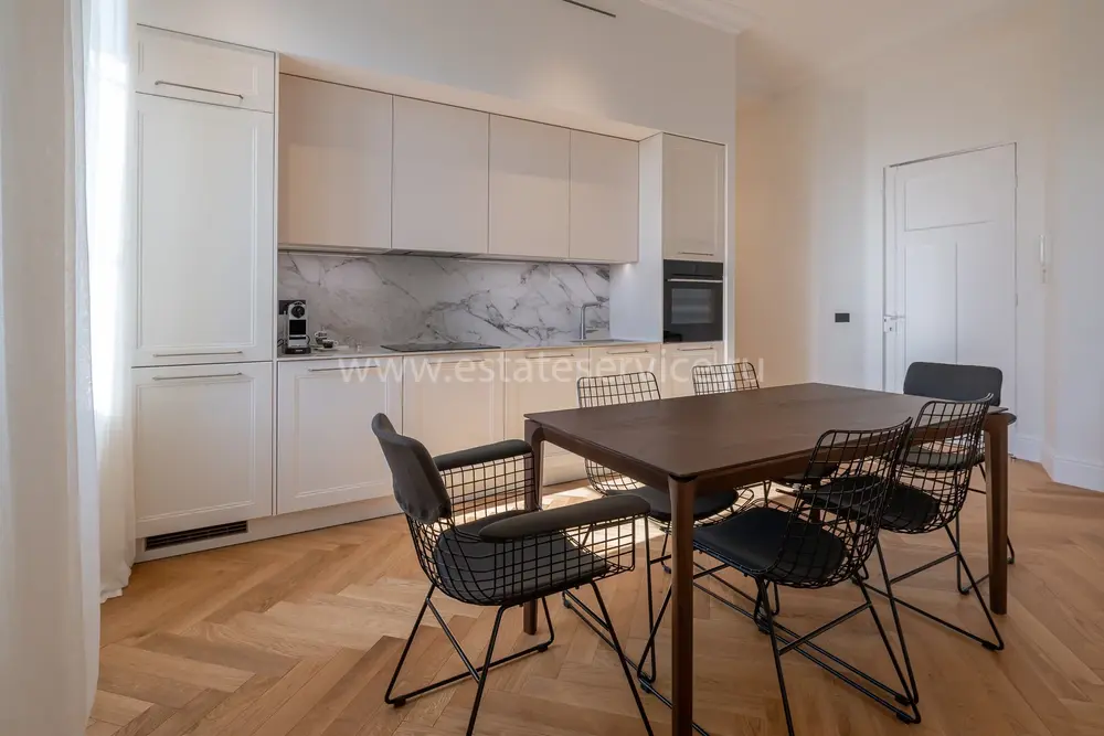 Только отремонтированная, полностью меблированная квартира в самом центре Болье-сюр-Мер. Жилая площадь 69 m² - двойная гостиная-столовая с открытой кухней, две спальни с встроенными шкафами и душевыми. Первый этаж тихого буржуазного здания, высокие потолки, роскошная отделка и материалы, реверсивный кондиционер, кладовая. Продаётся с мебелью, готова к заселению или сдаче в аренду. Коммунальные платежи 240 €.