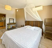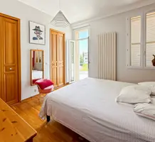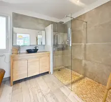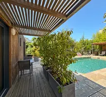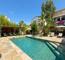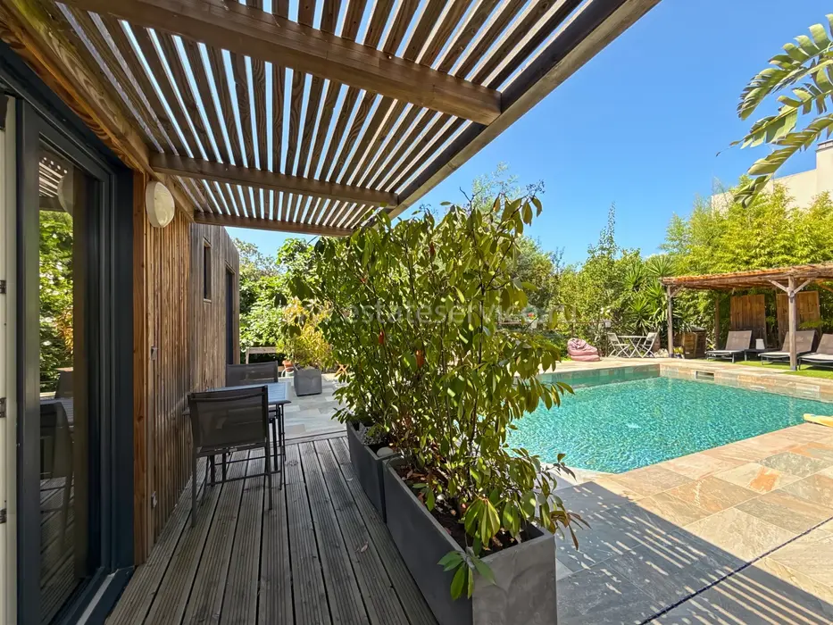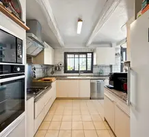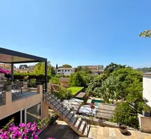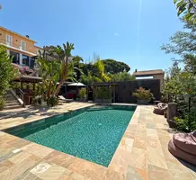 Ухоженная вилла с гостевыми апартаментами и тихим расположением недалеко от центра и моря. Жилая площадь 240 m², в главном доме - холл, светлая гостиная с камином и большими окнами, отдельная кухня с кладовкой, прачечной и выходом на крытую террасу, две спальни с гардеробными и общей террасой наверху, главная - с большой гардеробной и душевой комнатой. На участке 1.437 m² разбит красивый сад, несколько террас, зона отдыха с баром, бассейном и летней кухней, есть также студия, отдельные апартаменты (две спальни), гараж и несколько парковочных мест.