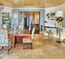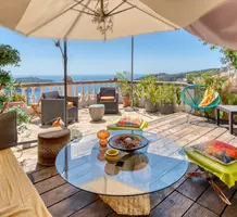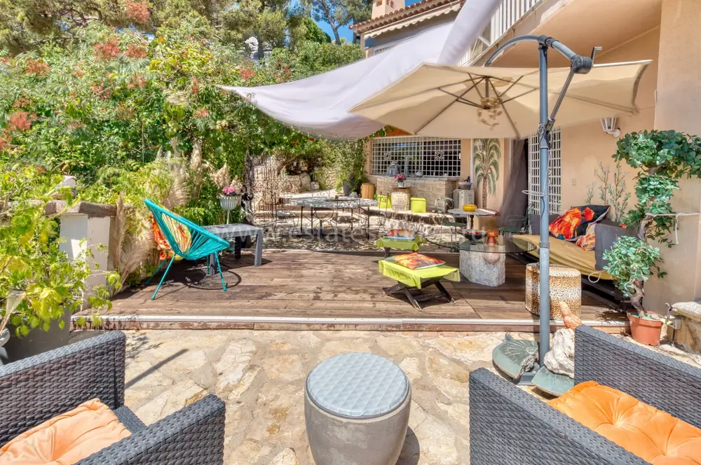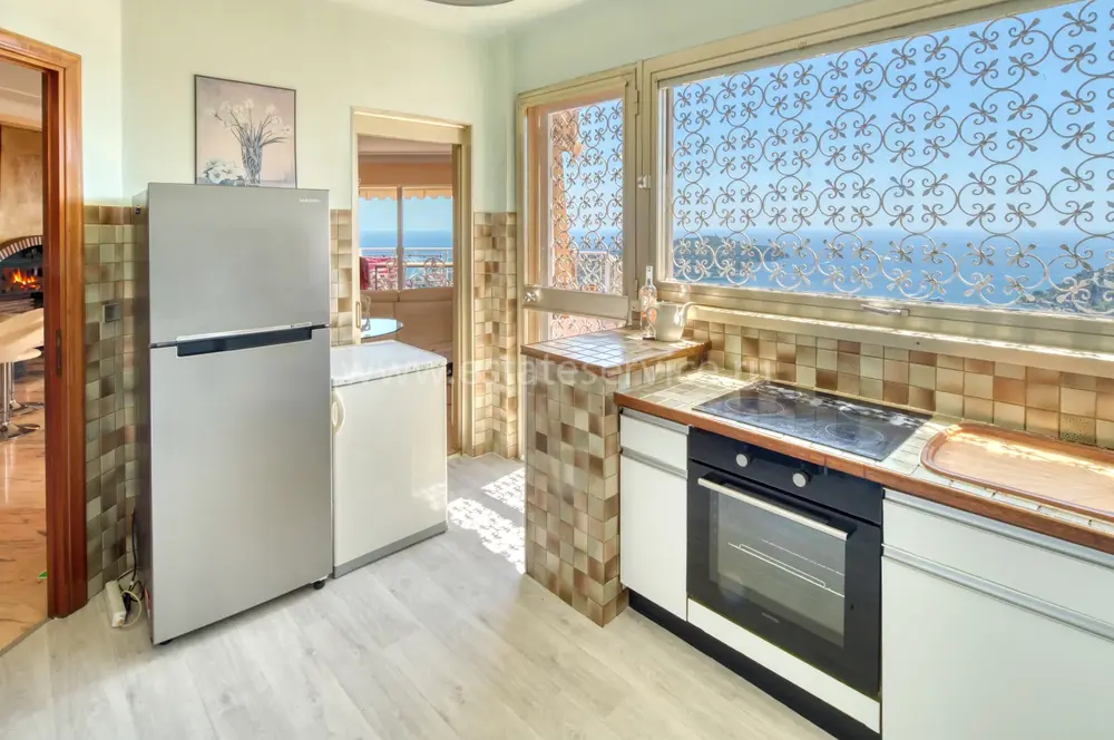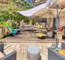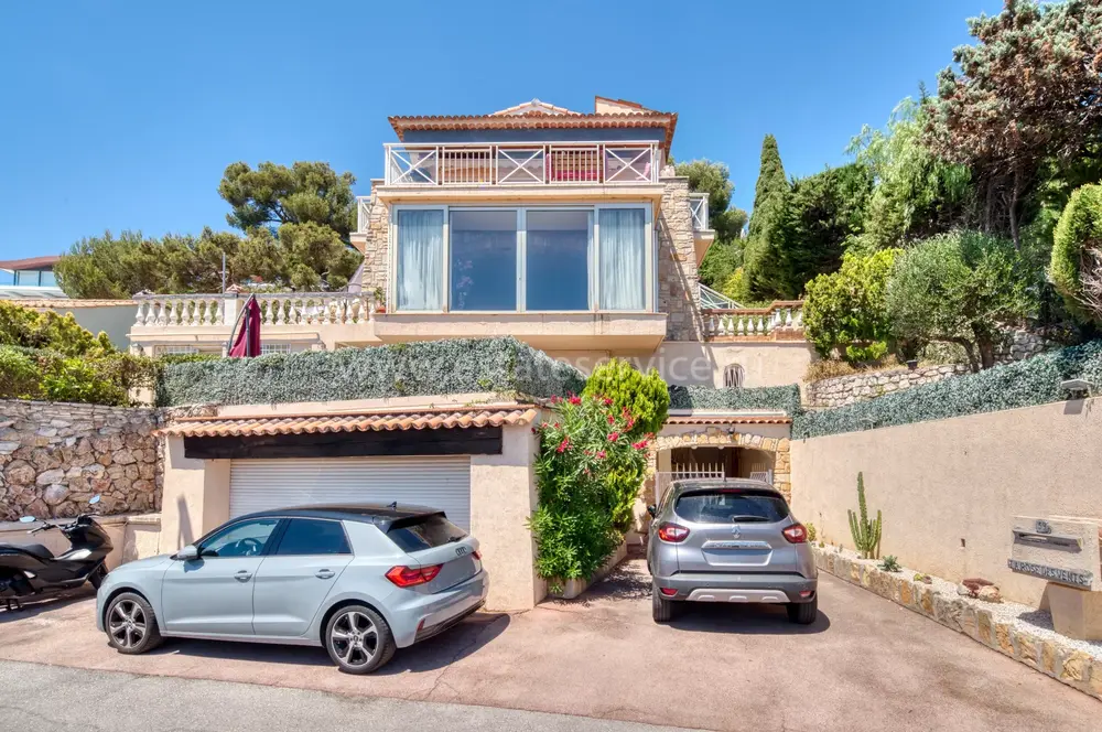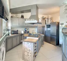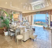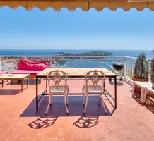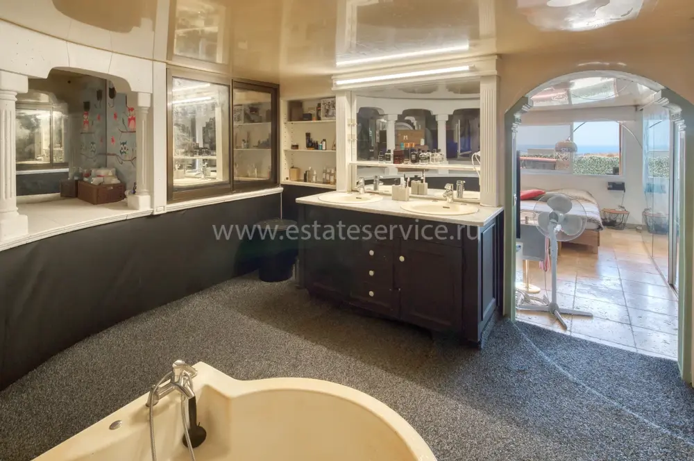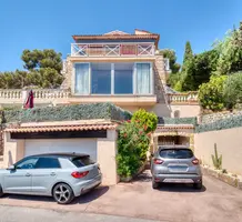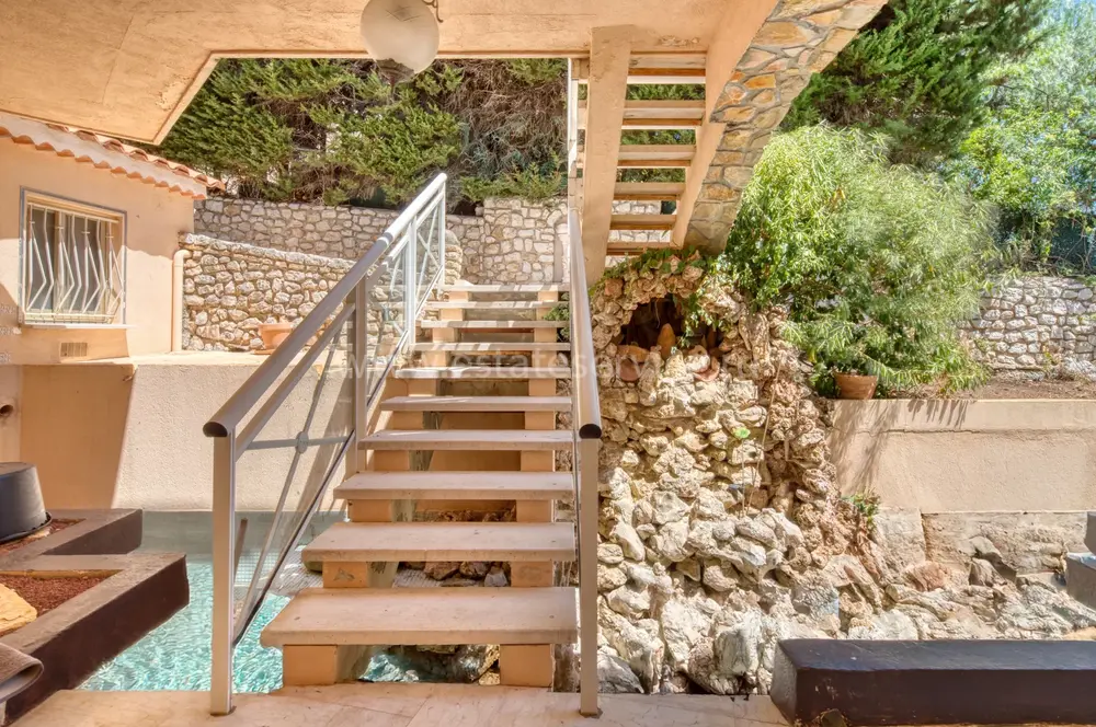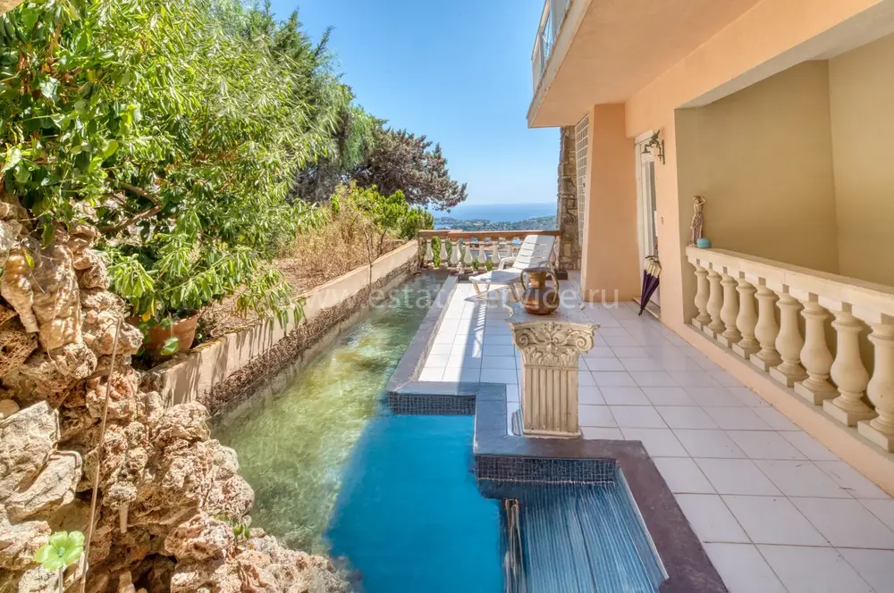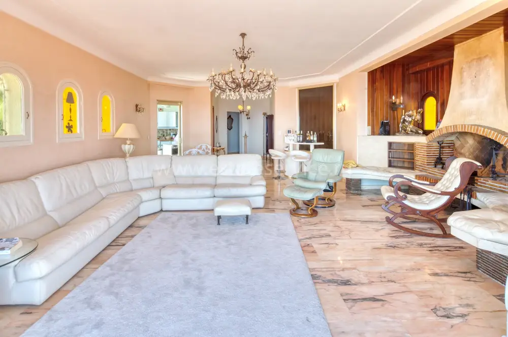 Просторная вилла с доминирующим расположением в тихом престижном секторе. Площадь дома 347 m² разделена на три отдельных апартамента на каждом из этажей: на уровне сада - гостевая студия 57 m² со своей кухней и ванной комнатой/туалетом. Далее разместились апартаменты 151 m² - прихожая, гостиная, отдельная кухня, две спальни, ванная комната, туалет и террасы. Наверху 139 m² - прихожая, просторная гостиная, кухня, три спальни, ванная комната, туалет и панорамная 180°-я терраса. Потребуется некоторое обновление (лифт), есть гараж на две машины, открытые парковочные места, декоративный прудик, джакузи. Годовой налог 2.700 €.