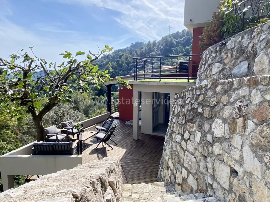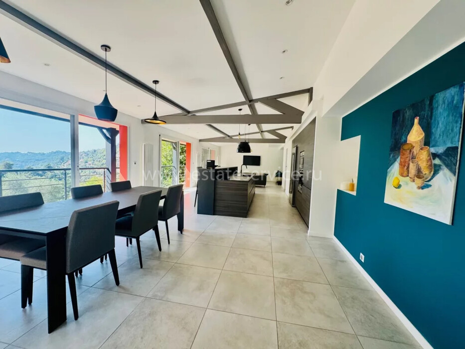 Стильная вилла 2015 года постройки в нескольких минутах от Ментона и выезда на автомагистраль в Монако и Италию. Площадь дома 185 m², прилегающий участок 1.439 m². На первом уровне просторная гостиная-столовая 60 m² с открытой островной кухней, выходом на террасу и балкон с проблеском моря, наверху разместились четыре спальни 10, 11, 14 и 16 m², две с ванными комнатами, а также отдельные апартаменты площадью 45 m²: гостиная с кухней, спальня и ванная комната/туалет. Отличное состояние, терраса с летней кухней, где легко оборудовать бассейн, кладовая, гараж 15 m² и два частных парковочных места