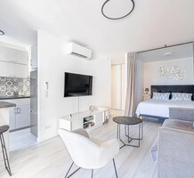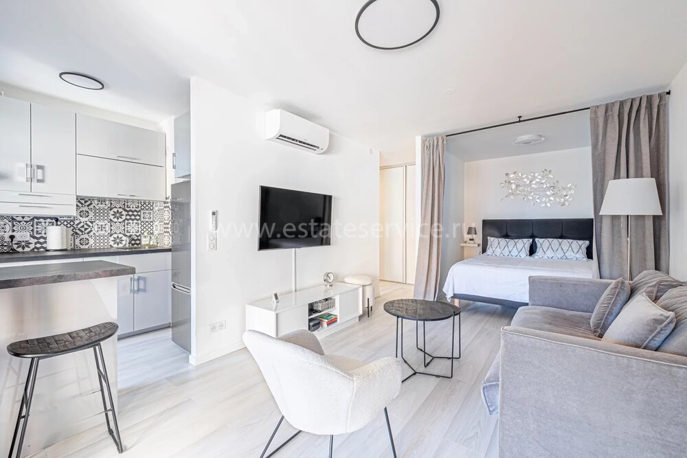 Апартаменты на 4-м этаже недавно отремонтированной закрытой резиденции с лифтом в 150-ти метрах от Английской набережной и моря. Общая площадь 39.6 m² (жилая 32.6 m²) - прихожая 6.3 m², гостиная 13.7 m² с балконом 5 m², открытая кухня 3.7 m² со своим балкончиком 2 m², спальная зона 5.4 m² и душевая комната 3.3 m² с подвесным туалетом. Отличное состояние, близость всех удобств, кладовая. Коммунальные платежи 75 €, годовой налог 1.015 €.