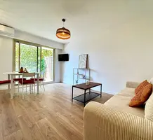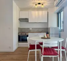 Ухоженная квартира на пятом (5/8) этаже отремонтированного здания недалеко от моря и центра города. Общая площадь 30.2 m² (жилая 23.6 m²) - прихожая 2.8 m², гостиная-столовая 17.6 m² с кухней и балконом 6.6 m², ванная комната с туалетом. Отличное состояние, реверсивный кондиционер, продаётся с мебелью - готова к заселению или сдаче в аренду. Коммунальные платежи 72 €, годовой налог 520 €.
