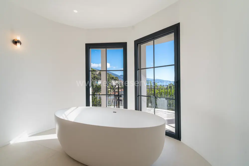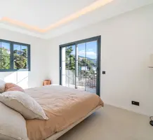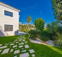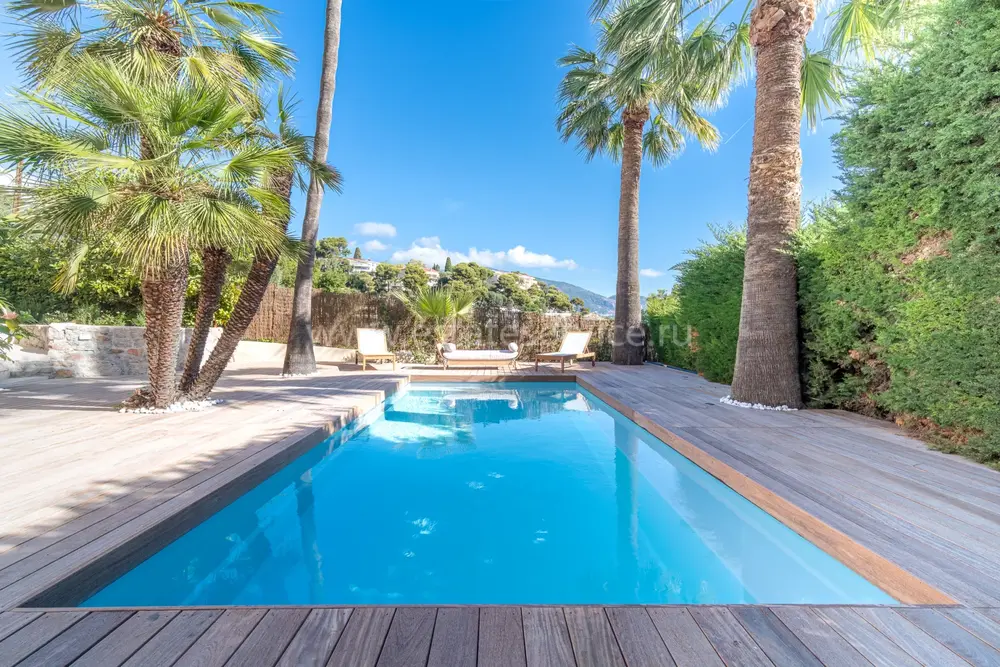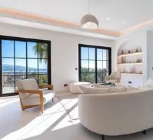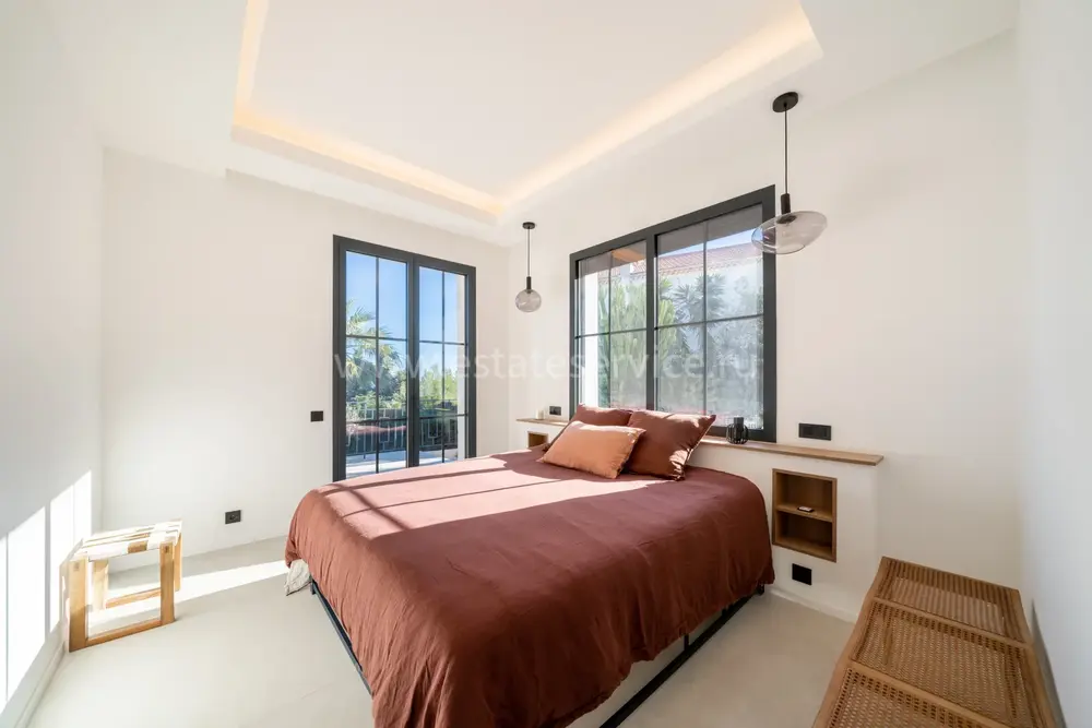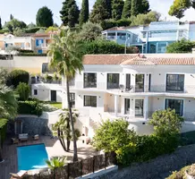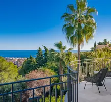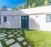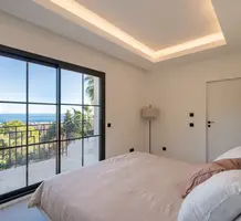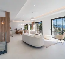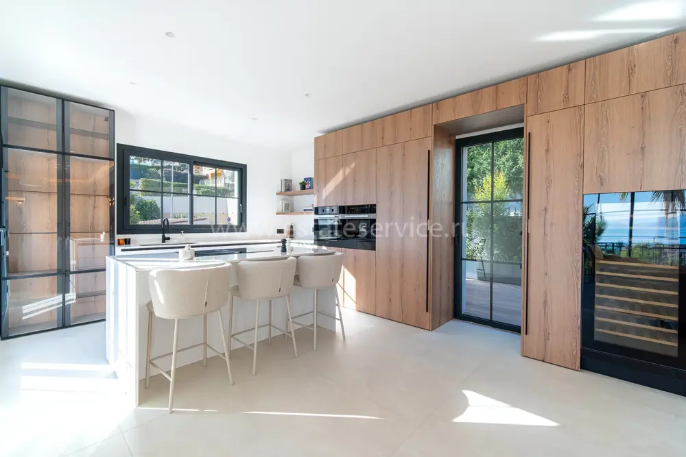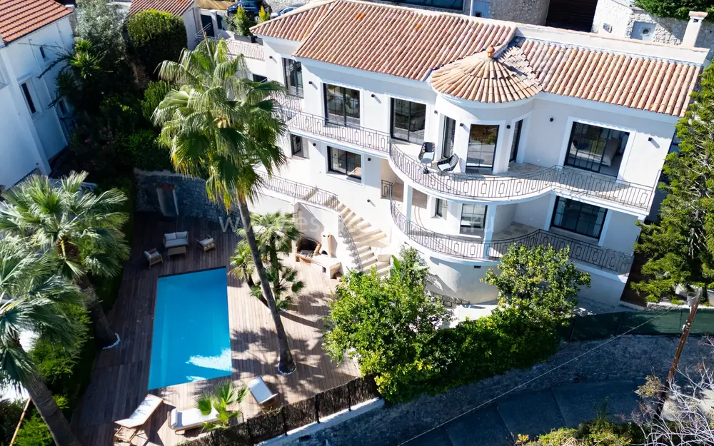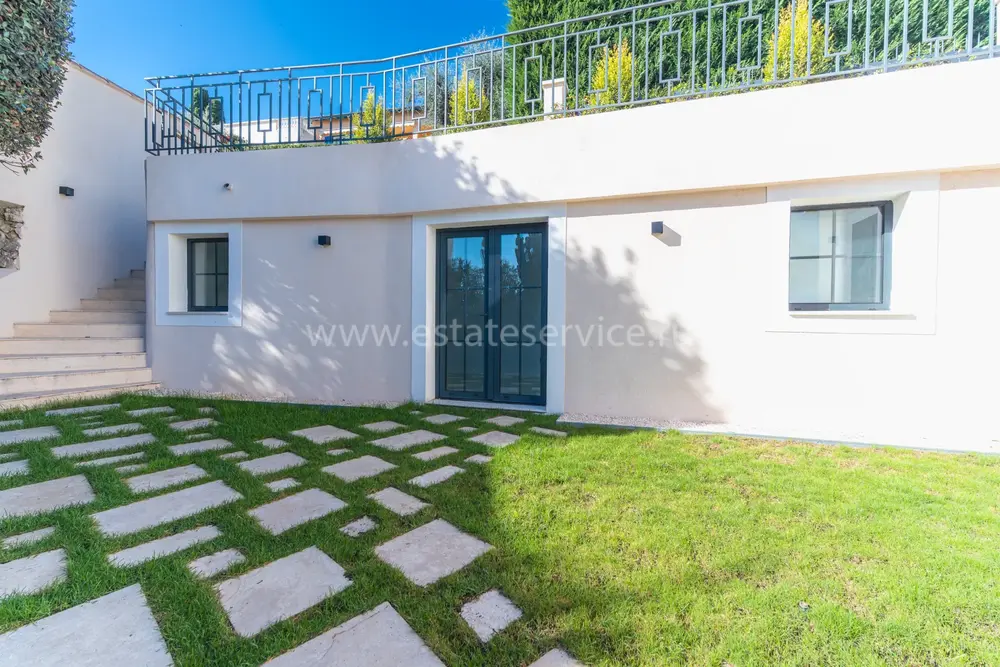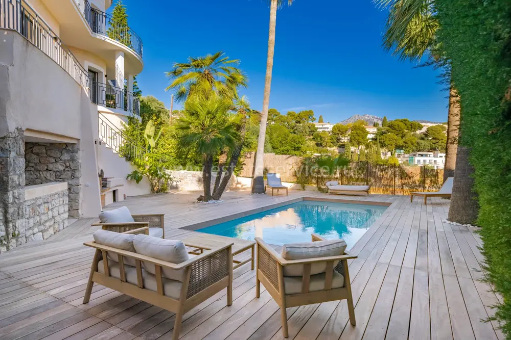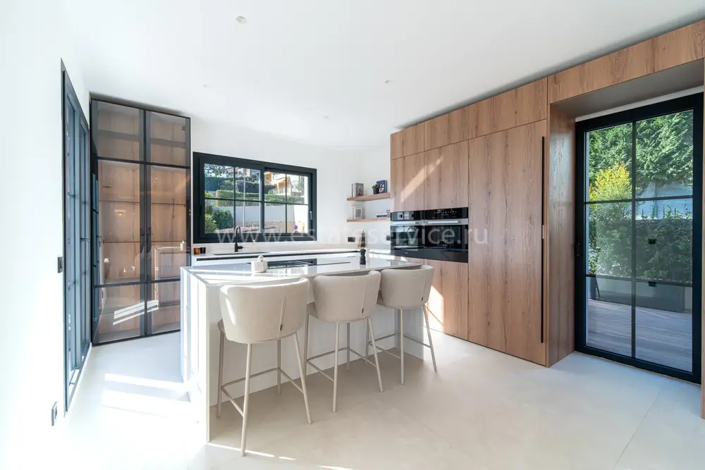 Стильная вилла с качественной изысканной отделкой и панорамным видом на море, горы и окрестности - престижный сектор Hameau. Площадь дома 238 m² - светлая и просторная гостиная-столовая с примыкающей кухней, четыре спальни с ванными/душевыми комнатами, отдельная гостевая студия, просторный гараж и террасы. На участке 803 m² ухоженный сад, много экзотических насаждений, домик у бассейна, летняя кухня и душевая. Годовой налог на имущество 1.800 €.