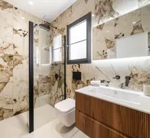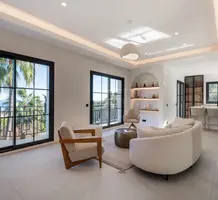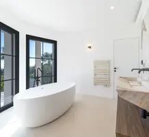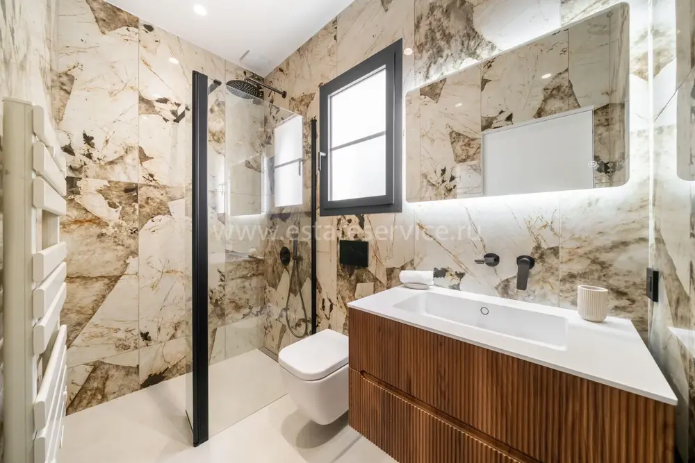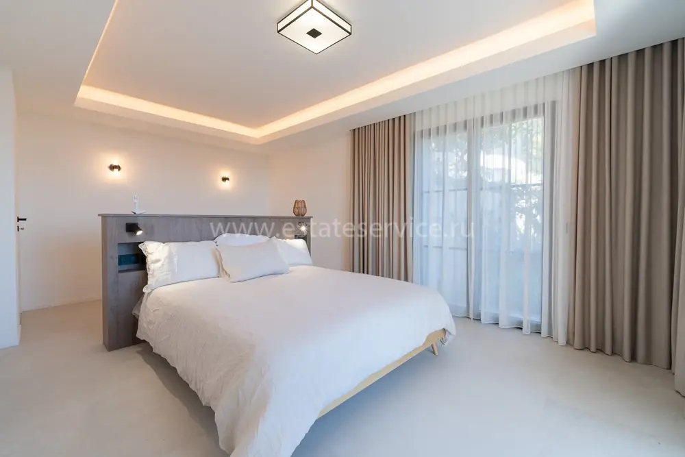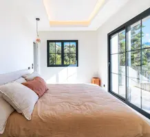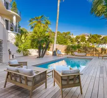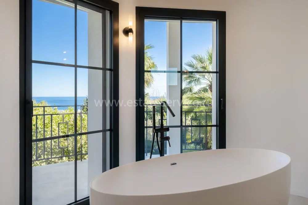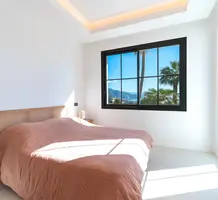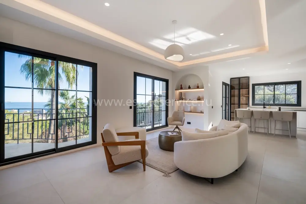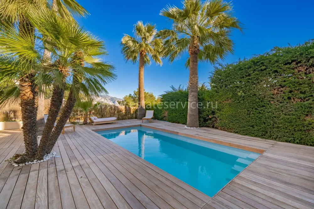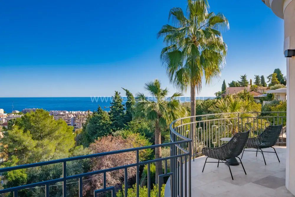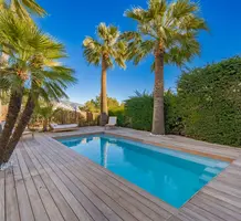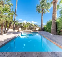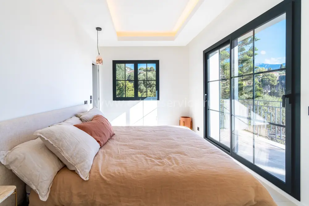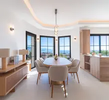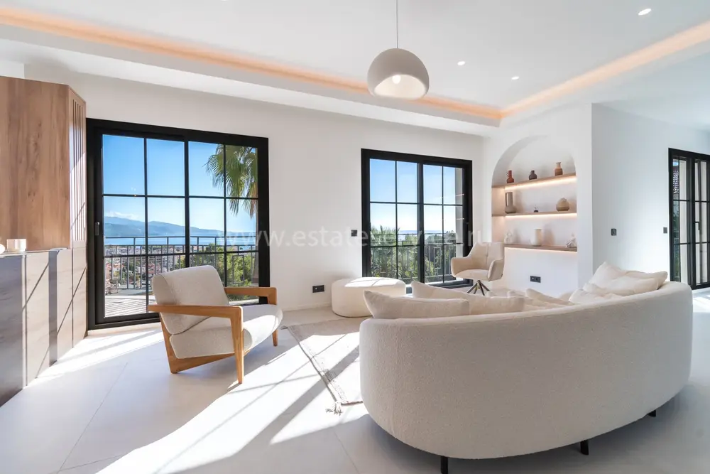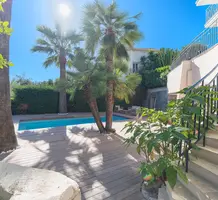 Стильная вилла с качественной изысканной отделкой и панорамным видом на море, горы и окрестности - престижный сектор Hameau. Площадь дома 238 m² - светлая и просторная гостиная-столовая с примыкающей кухней, четыре спальни с ванными/душевыми комнатами, отдельная гостевая студия, просторный гараж и террасы. На участке 803 m² ухоженный сад, много экзотических насаждений, домик у бассейна, летняя кухня и душевая. Годовой налог на имущество 1.800 €.