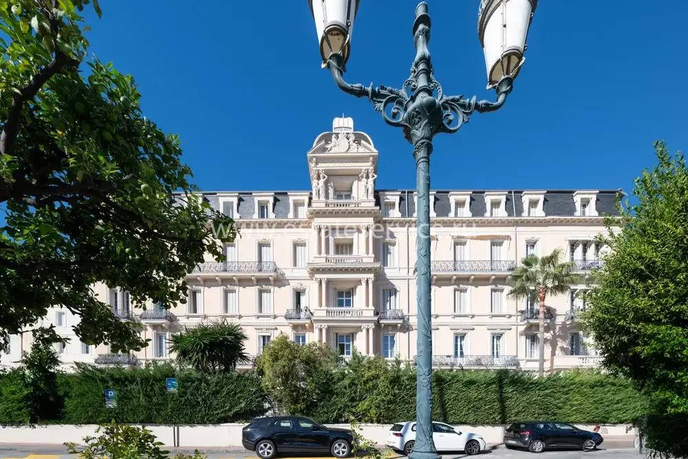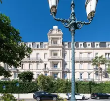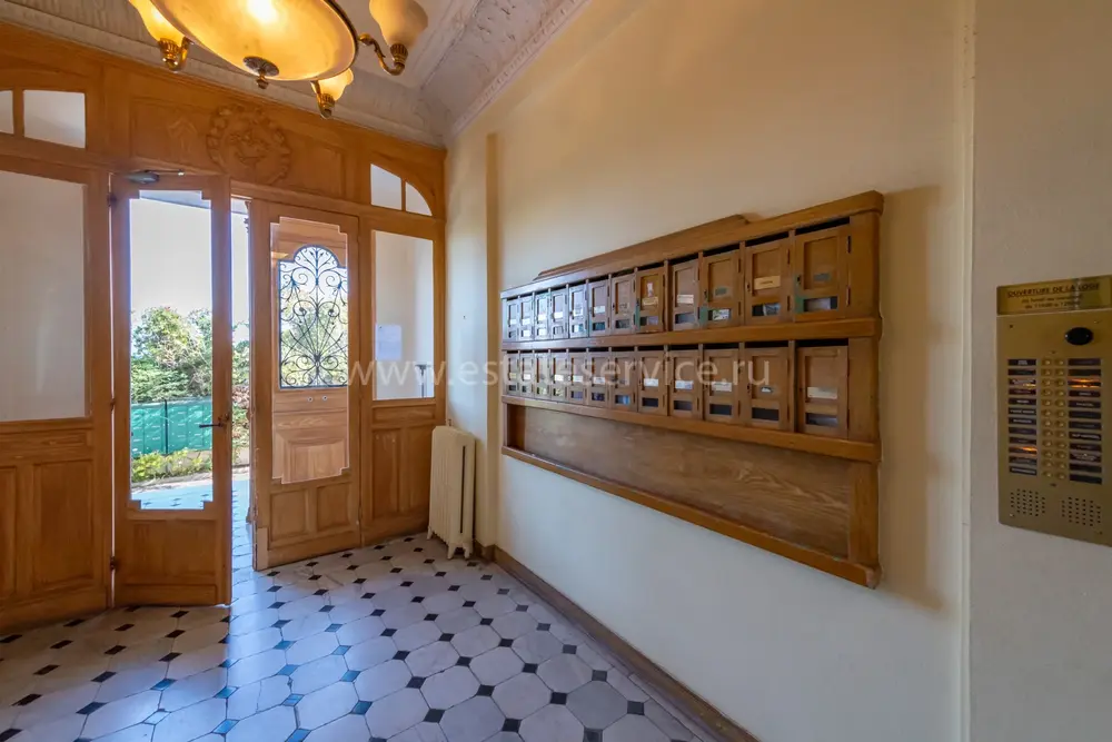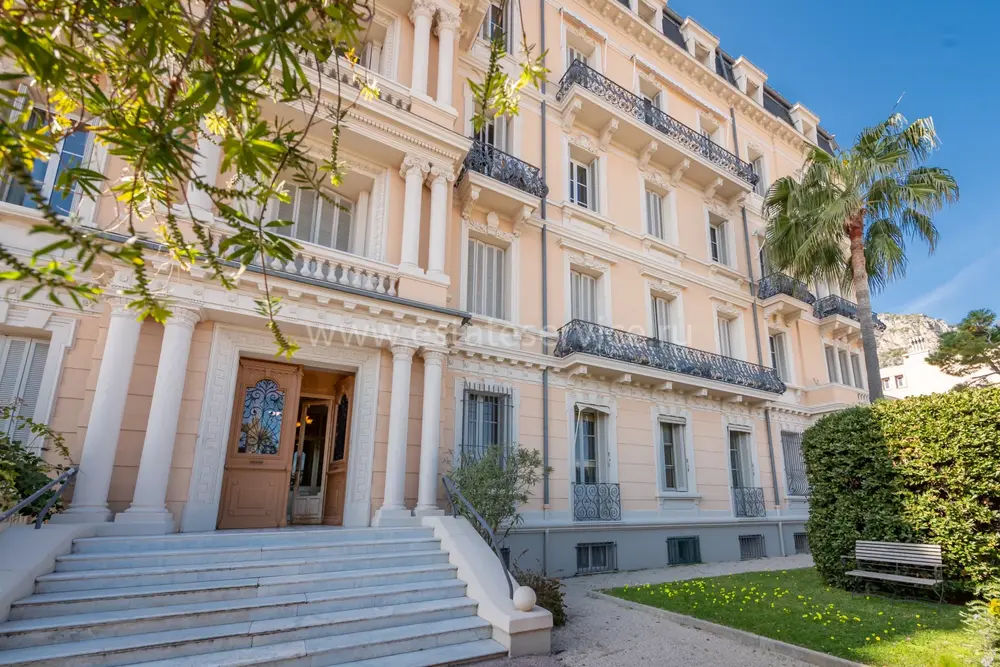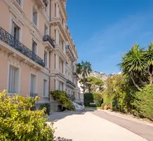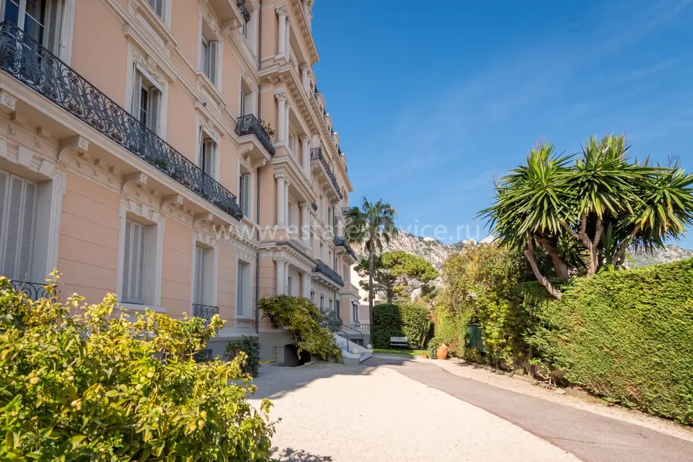 Квартира на верхнем этаже престижного особняка Belle Époque с небольшой парковой зоной в центре Болье-сюр-Мер. Жилая площадь 66 m² - двойная гостиная и спальня с прямым видом на море и Кап-Ферра, вторая спальня на внутренний двор, ванная и душевая комнаты с туалетами. Удобное расположение, всё пешком, есть кладовая и гараж в соседнем кондоминиуме. Коммунальные платежи 274 €, годовой налог 1.540 €.