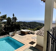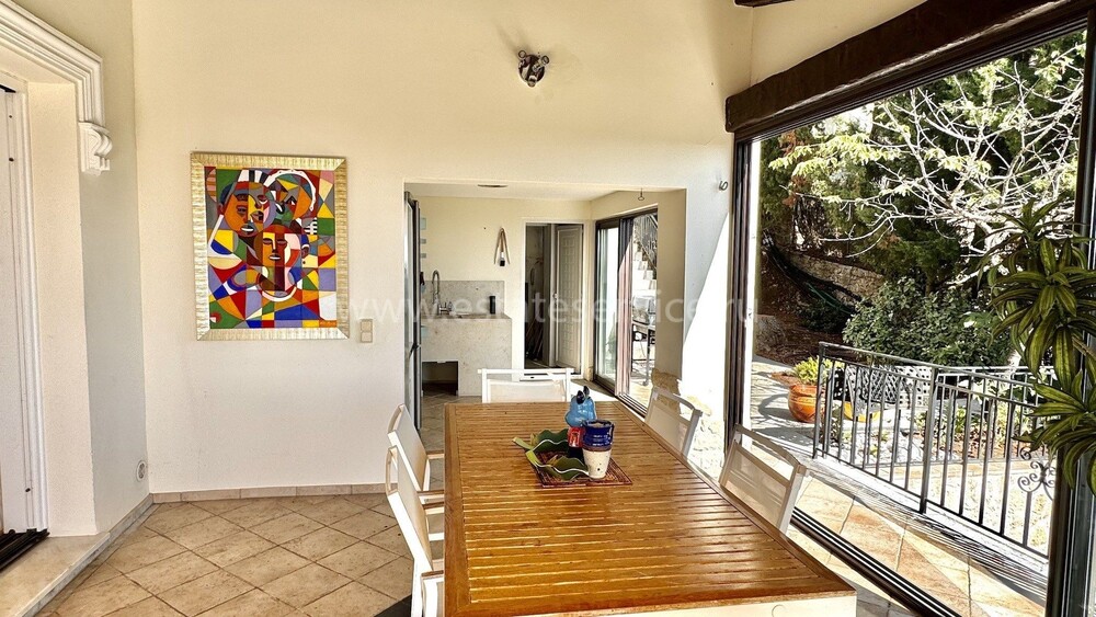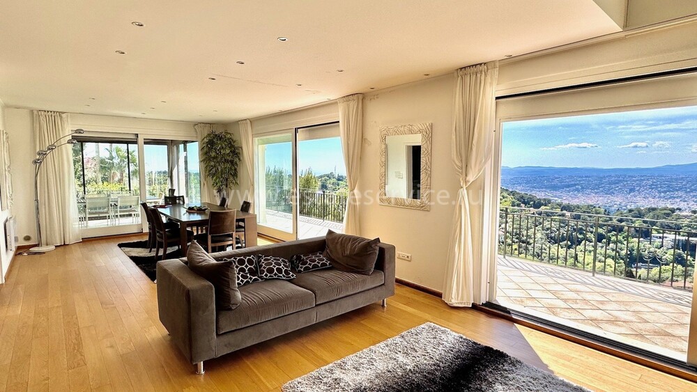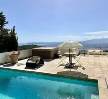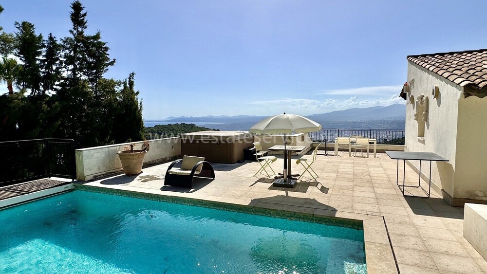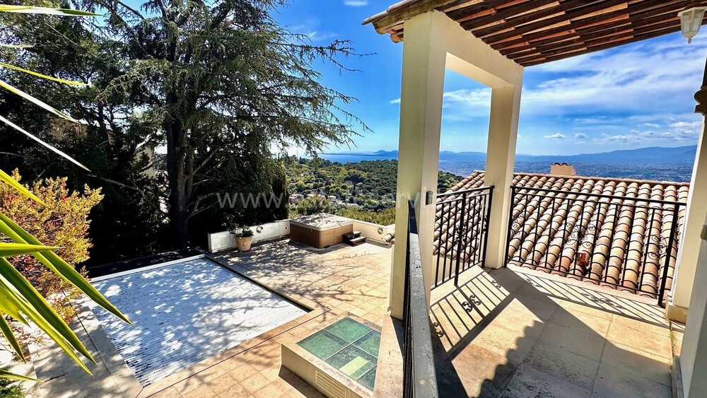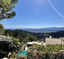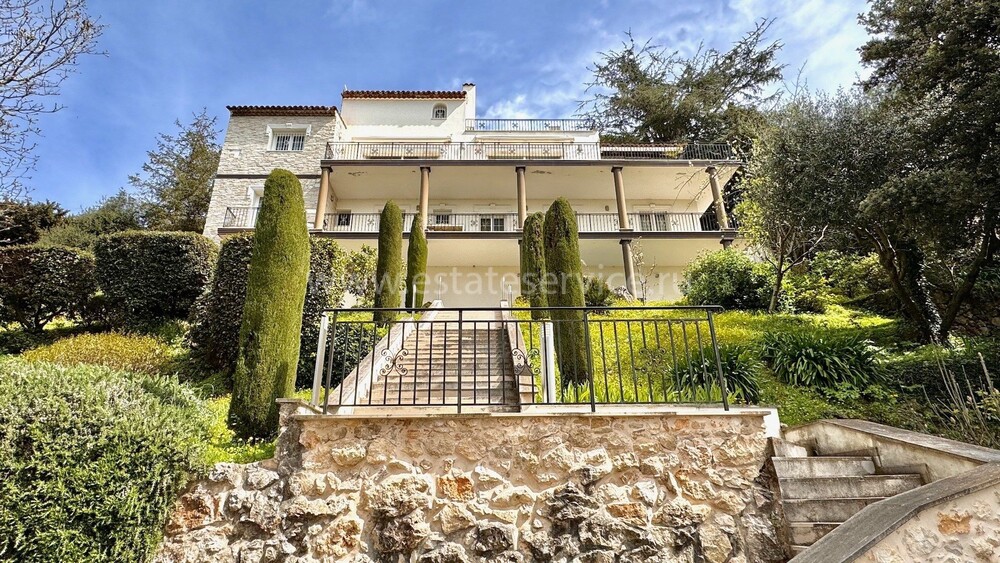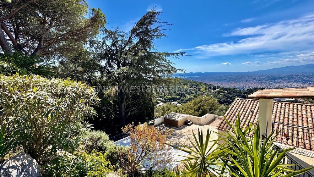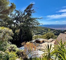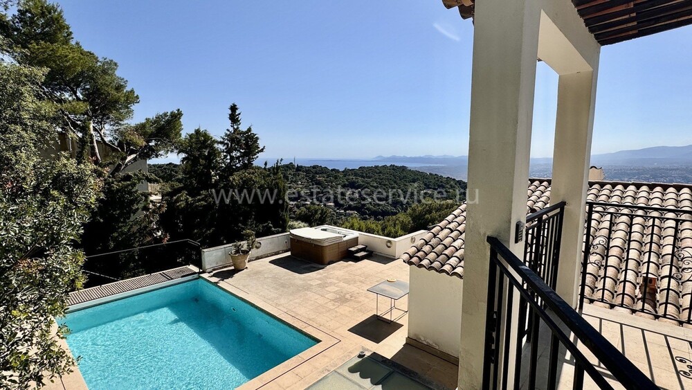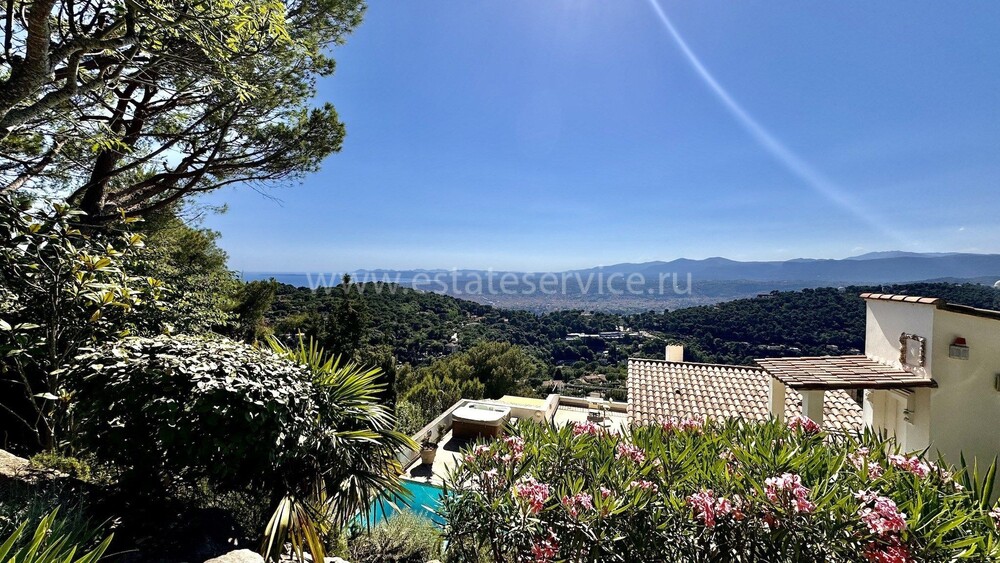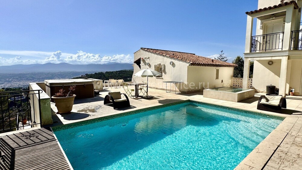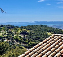 Светлая вилла провансальской стилистики с захватывающей панорамой на залив Ангелов. Жилая площадь 308 m² + гараж и террасы, на пологом участке 2.550 m² много зелени, зона отдыха с домиком у бассейна, площадка для игры в петанк, несколько парковочных мест. Дом включает 8 комнат - просторная двойная гостиная с камином, столовая выходящей на полностью отдельная кухня с примыкающей столовой, четыре спальни с ванными/душевыми комнатами и отдельная студия для гостей или персонала. Все уровни объединены лифтом, домашняя автоматизация, приличное состояние и удачное расположение - быстрый доступ к магазинам, пляжам и всем удобствам.