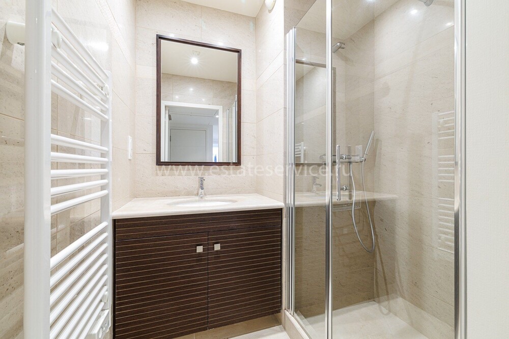 Апартаменты в закрытом кондоминиуме с видеонаблюдением, круглосуточным консьержем, ухоженной территорией и бассейном между Ниццей и Вильфраншем - 15 минут от центра каждого города. Общая площадь квартиры 174 m² (жилая 83 m²) - прихожая, гостиная с островной кухней и главная спальня (с душевой) выходят на террасу 80 m² - впечатляющий вид на Бухту Ангелов, ещё две спальни с террасой 11 m², общая ванная комната и отдельный санузел. Отменное состояние, включены кладовая в подвале, два гаража, есть помещение для хранения велосипедов. Коммунальные платежи 450 €.