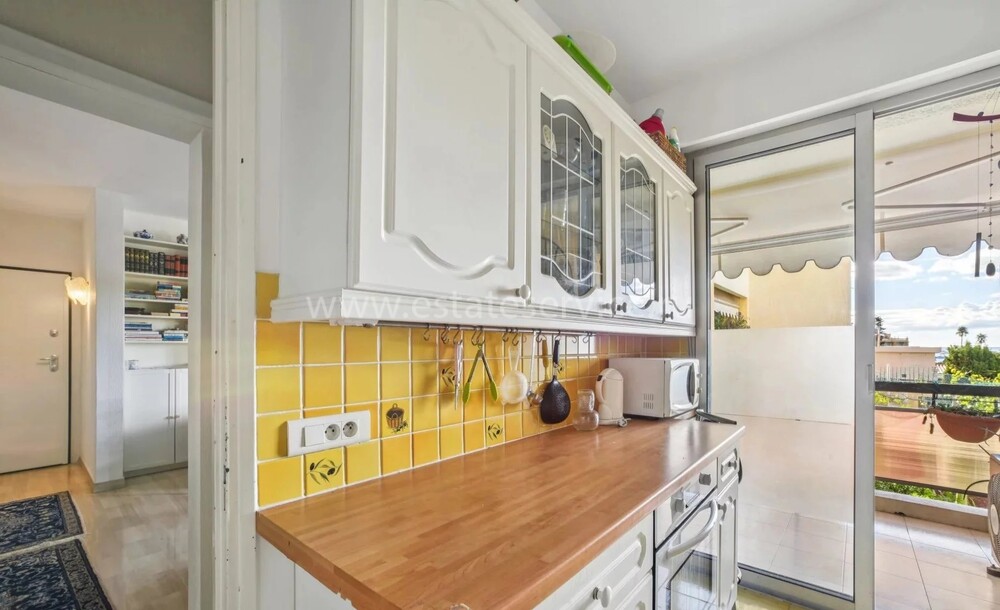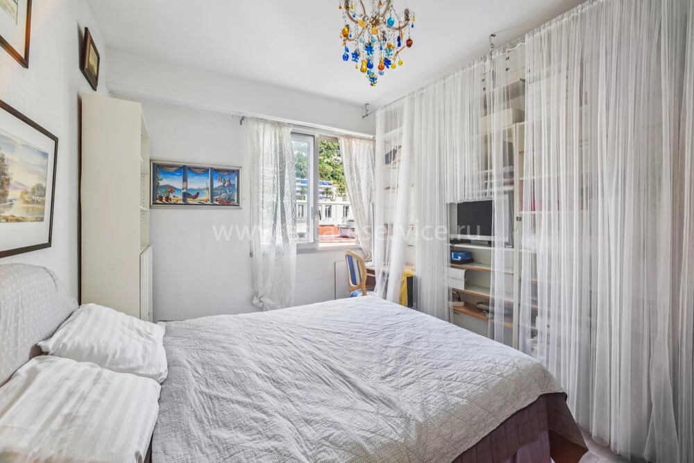 Квартира в безопасной резиденции с бассейном и небольшим садиком в центре города. Общая площадь 72.8 m² (жилая 68 m²) - гостиная с зоной столовой, примыкающая кухня с выходом на террасу 4.8 m² - вид на бассейн, с проблеском моря и Сен-Жан-Кап-Ферра, две спальни, одна из которых с застеклённой лоджией, душевая комната и отдельный туалет. Потребуется некоторое обновление, включена кладовая, можно купить закрытый гараж. Коммунальные платежи 263 €.