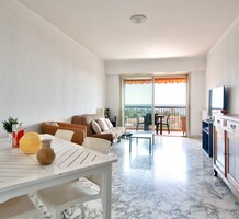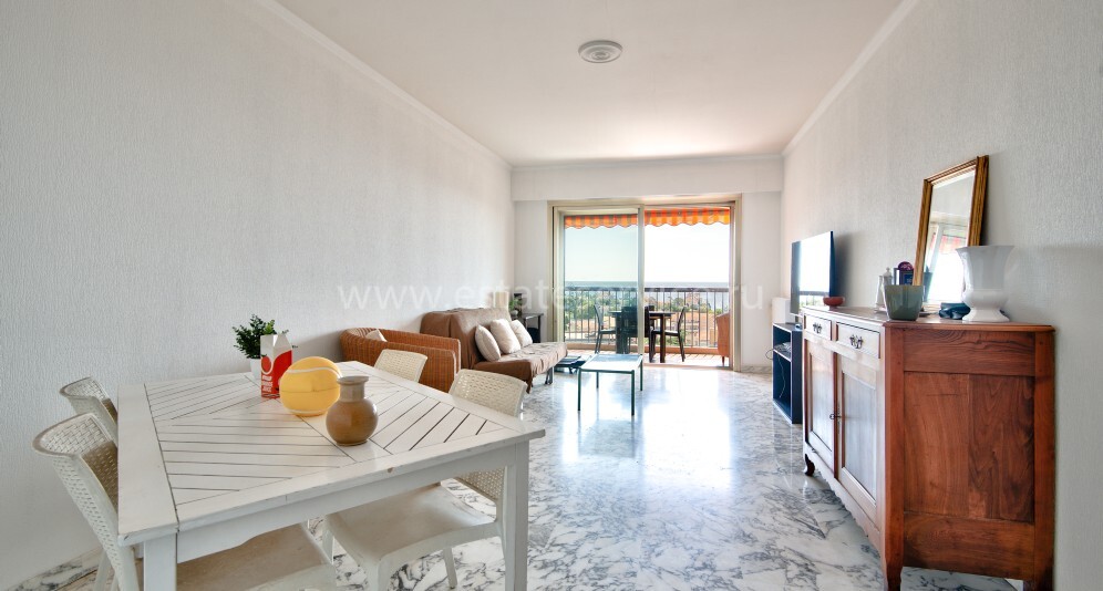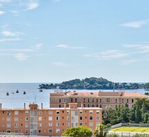 Апартаменты на пятом (предпоследнем) этаже резиденции с лифтом в центре Болье. Площадь квартиры 57.9 m² - прихожая, светлая гостиная 23 m² с панорамной террасой, спальня, отдельная кухня с балконом 3.1 m² - можно переделать во вторую спальню, ванная комната и отдельный санузел. Состояние среднее, есть помещение для хранения велосипедов, можно купить гараж. Коммунальные платежи 206 €, годовой налог 1.159 €.