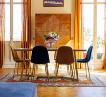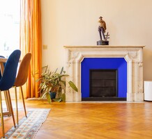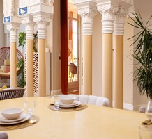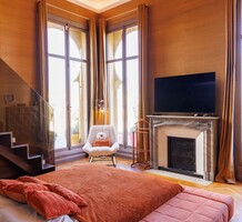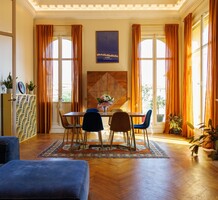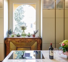 Квартира с изысканной отделкой на третьем (3/4) этаже престижного здания неомавританской стилистики, признанного историческим памятником XX века. Общая площадь 284 m² (жилая 213 m²) - прихожая, светлая и просторная столовая-патио с высокими арками и колоннами, кабинет-библиотека с домашним кинотеатром, светлая гостиная с декоративным камином и большими окнами, современная кухня островного типа, две просторные спальни, одна смежная с ванной, гардеробной (изготовлена на заказ от Guzzini & Fontana) и мезонином - используется под кабинет, душевая и ванная с японским унитазом. Шикарная отделка и материалы, включены закрытый гараж и кладовая. Коммунальные платежи 350 €, годовой налог 3.536 €.
