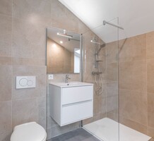 Апартаменты на втором этаже здания в 4-х минутах от моря. Жилая площадь 102 m², на первом уровне светлая гостиная 40 m² с тремя большими окнами, две спальни, одна с балконом 7 m², две душевые (одна с туалетом) и отдельный санузел. Наверху разместились ещё две спальни 6 и 10 m², общая душевая с туалетом и лестничная площадка с мансардными окнами - можно использовать под игровую зону или кабинет. Качественная отделка, кухня не установлена - можно оформить на свой вкус, возможно изготовление по индивидуальному заказу), дополнительно можно приобрести - две кладовые по 5.000 € каждая, частный сад 70.000 € и паркинг в соседнем здании - 35.000 €. Обращаем внимание - рядом проходят ж/д пути!