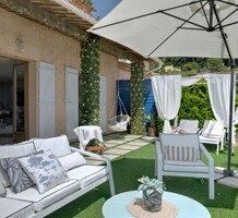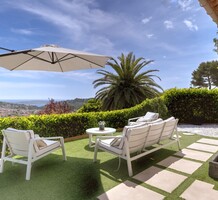 Вилла с ремонтом на территории тихого закрытого домена в нескольких минутах от пляжей, центра Канн и в 25-ти минутах от аэропорта Ниццы. Жилая площадь 134 m² + гараж, в доме - просторная гостиная 72 m² с камином, островной кухней и выходом на залитую солнцем террасу 60 m² с видом на залив Антиб, наверху - две тихие спальни с морской панорамой, главная со своей гардеробной, ванная комната и отдельный туалет. Отличное состояние, примыкающий гараж позволяет оборудовать третью спальню или кабинет, есть два парковочных места, пышный сад позади дома добавляют ощущение спокойствия и уединения.