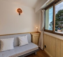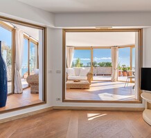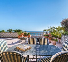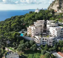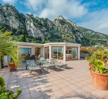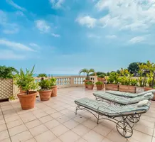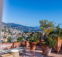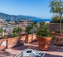 Квартира с двумя отдельными входами на верхнем этаже резиденции в пешей доступности (15 мин) от пляжа и Монако. Общая площадь 170 m² (жилая 148 m² + 25 m² веранда) - прихожая, светлая гостиная 26 m², отдельная кухня, пять спален со своими ванными/душевыми, одна также с мини-кухней и террасой, прачечная, а также терраса 140 m² с впечатляющим видом. Качественная отделка, можно купить три гаража с кладовыми. Здание 2002 года постройки, с бассейном, консьержем и видеонаблюдением. Коммунальные платежи 450 €.