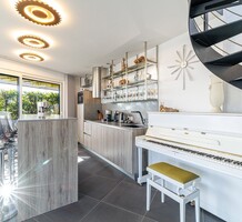 Апартаменты с шикарной отделкой в стильной резиденции 2020 года постройки в 1.5 километрах от моря. Общая площадь 177 m² (жилая 98 m²) - светлая гостиная 45 m² с островной кухней выходит на большую угловую террасу 79.5 m² по периметру квартиры, две спальни с гардеробными, ванная комната, душевая и отдельный санузел. Отменное состояние, доступ для людей с ограниченными возможностями, можно купить подземный паркинг. Коммунальные платежи 450 €.