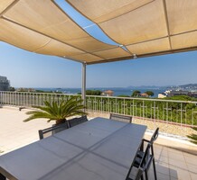 Квартира на верхнем этаже элитной резиденции в нескольких шагах от песчаных пляжей, магазинов и ресторанов. Общая площадь 247 m² (жилая 98 m²) - прихожая, двойная гостиная 41 m² с зоной столовой и выходом на террасу, современная кухня, две спальни с встроенными шкафами, две ванные комнаты, а также частная терраса на крыше 100 m² с захватывающей панорамой - можно оборудовать подвесной сад, обеденную/зону отдыха или небольшой бассейн-джакузи. Шикарная отделка, включён большой гараж. Коммунальные платежи 386 €.
