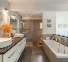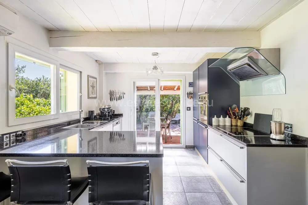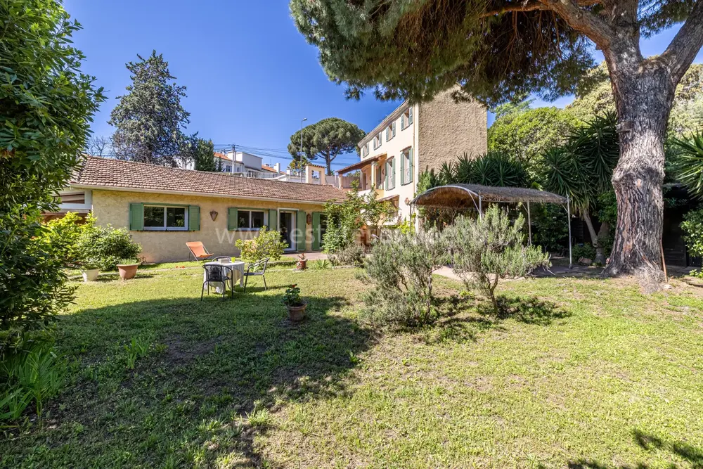Редкое владение из двух домов с большим потенциалом и пешей доступностью от моря (10 минут) и центра Канн. Общая площадь 170 m² + 20 m² гараж, на ровном участке 1.030 m² много зелени, зона барбекю, есть место под бассейн. Трёхуровневая вилла (требует ремонта) площадью 95 m² - отдельная спальня 15 m², гостиная-столовая, кухня, две спальни с проблеском моря, душевая с туалетом и терраса. Второй дом 70 m² полностью отремонтирован - большая гостиная 37 m² с открытой кухней, главная спальня с двойной раковиной, душем и ванной, крытая терраса 30 m², а также пристройка 42 m² - прачечная, две кладовые и резервуар (более 20.000 литров) для сбора дождевой воды - подходит для полива или наполнения будущего бассейна.
