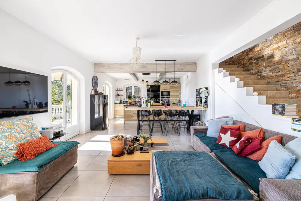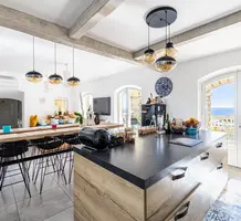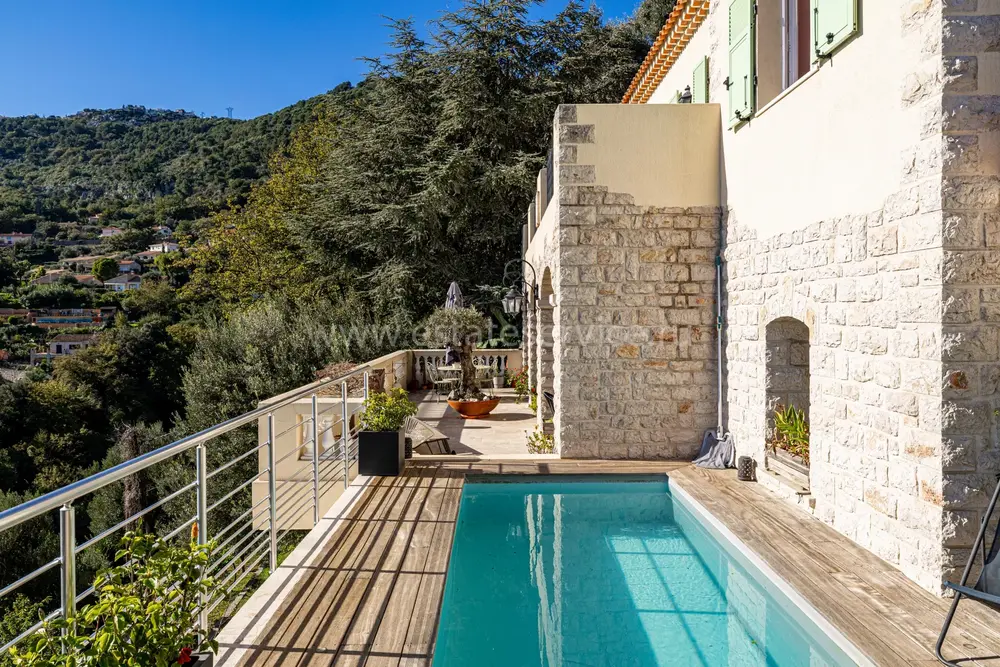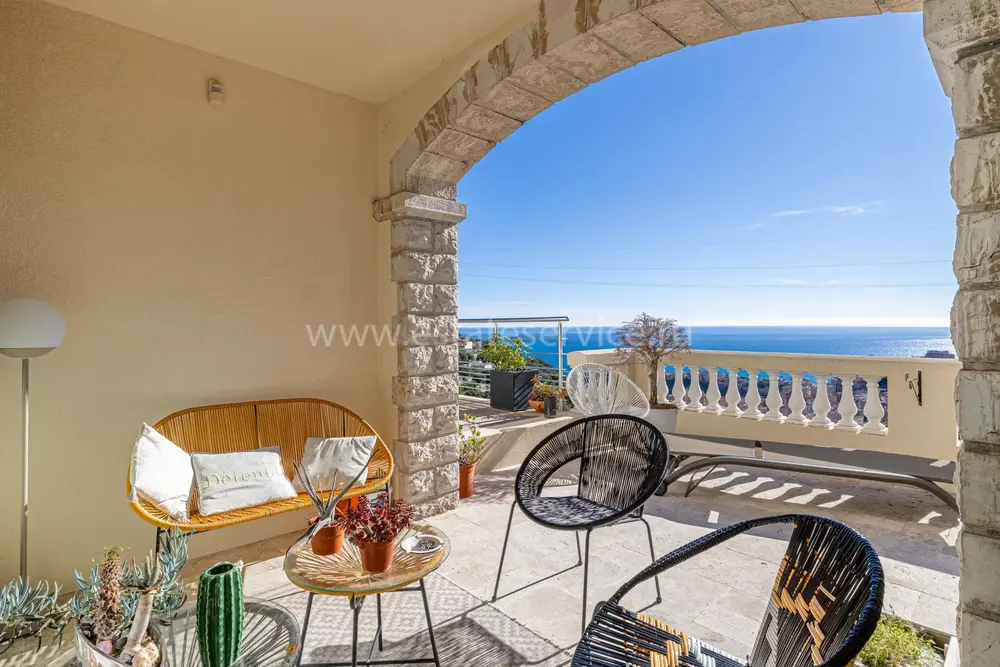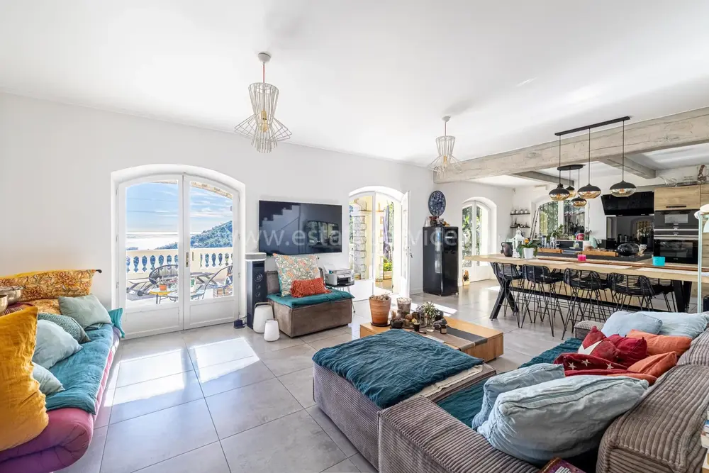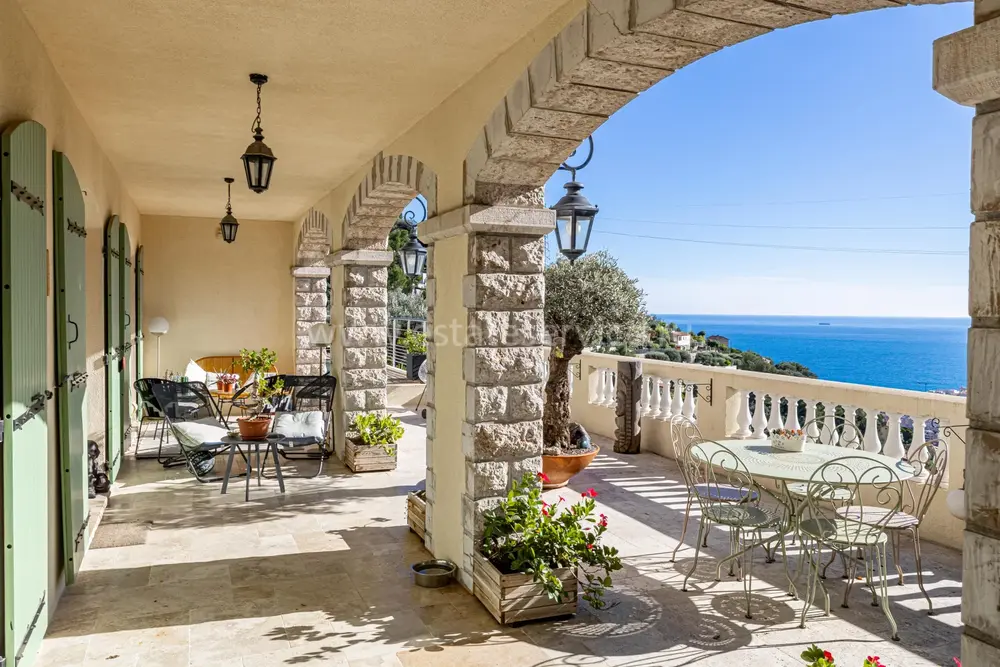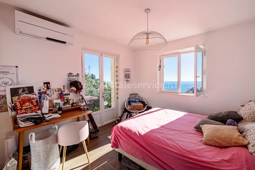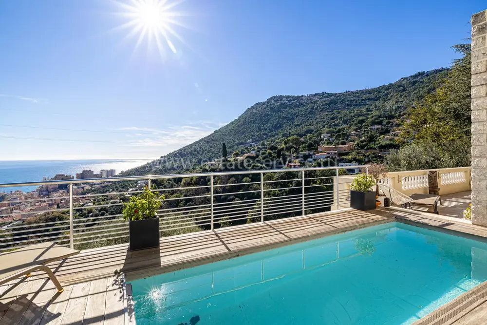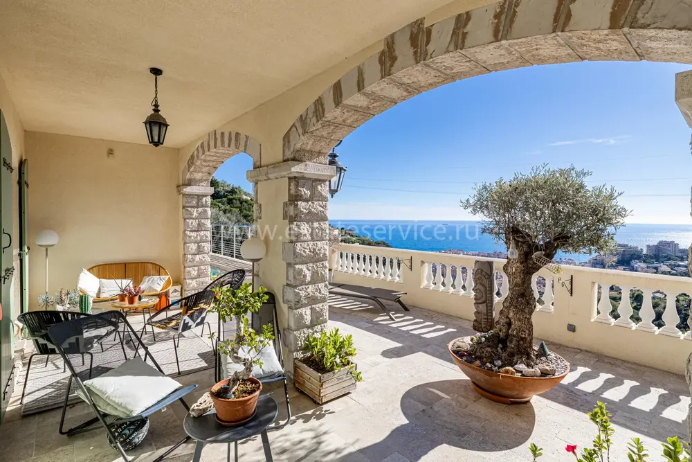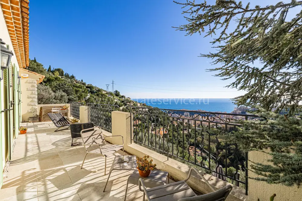 Ухоженная вилла в 5-ти минутах езды от Монако и 25-30 минутах от Ниццы и аэропорта. Общая площадь 250 m² (жилая 130 m²), участок земли 1.500 m². На первом уровне - двойная гостиная-столовая 60 m² с островной кухней выходят на частично крытую террасу 120 m² с бассейном, отдельный санузел. Наверху - главная спальня с гардеробной и душевой/туалетом, ещё две спальни (все с видом на море), две душевые/туалеты, а также помещение 17 m² где можно оборудовать кабинет или спорт-зал. Отменное состояние, реверсивный кондиционер, зона барбекю с дровяной печью, большой гараж и парковочные места. Годовой налог 1.840 €.