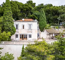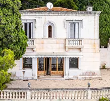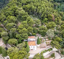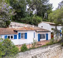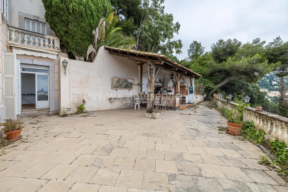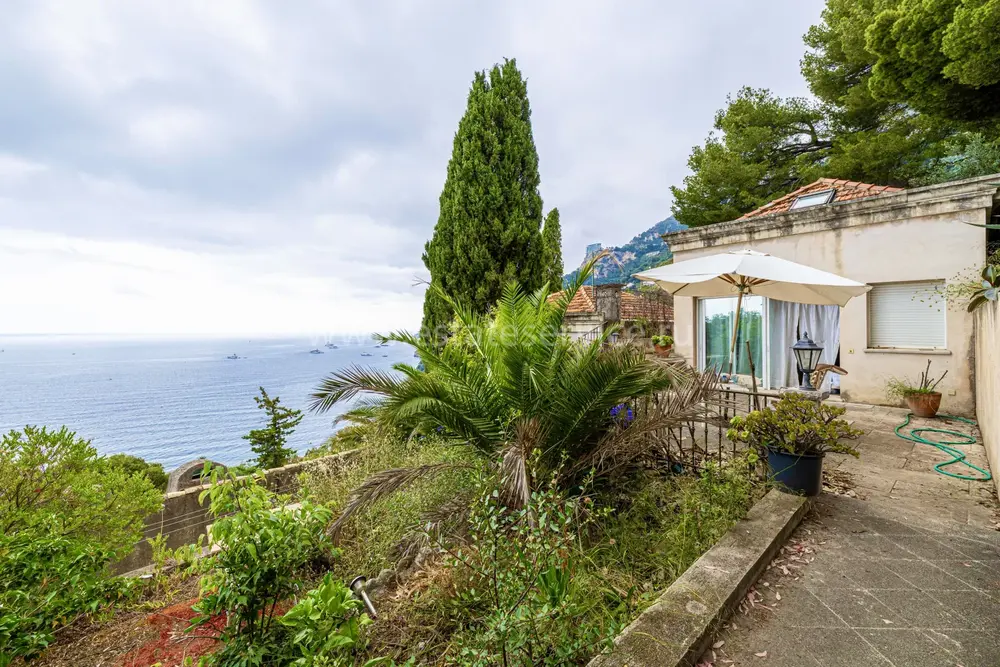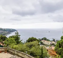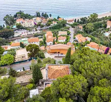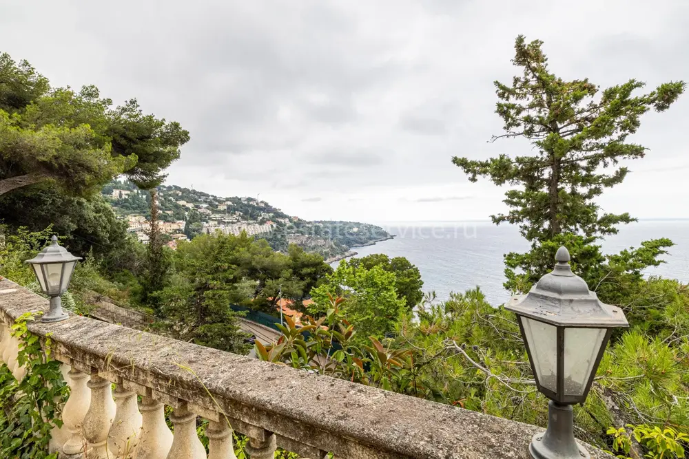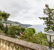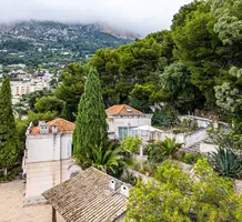 Солидное имение в центре частного поместья 13.000 m² с панорамным видом на море и Княжество. Жилая площадь 330 m², в главном доме 165 m² на первом уровне прихожая, гостиная с выходом на террасу, отдельная кухня, прачечная, гардеробная, туалет и кладовая. Наверху по лестнице - холл, три спальни, ванная комната, душевая туалет и гардеробная. Гостевой дом 94 m² - прихожая, гостиная, отдельная кухня, две спальни, ванная комната со шкафом и туалет. Наверху - третья спальня, душевая, гардеробная, чердак/мансарда и открытый гараж. Есть также домик для смотрителя/персонала 50 m² с антресолью и мансардой: гостиная, кухня, спальня, душевая, туалет и пристройка/сарай.