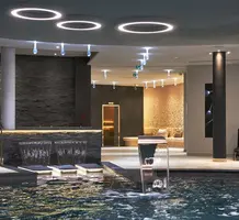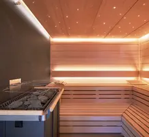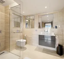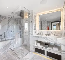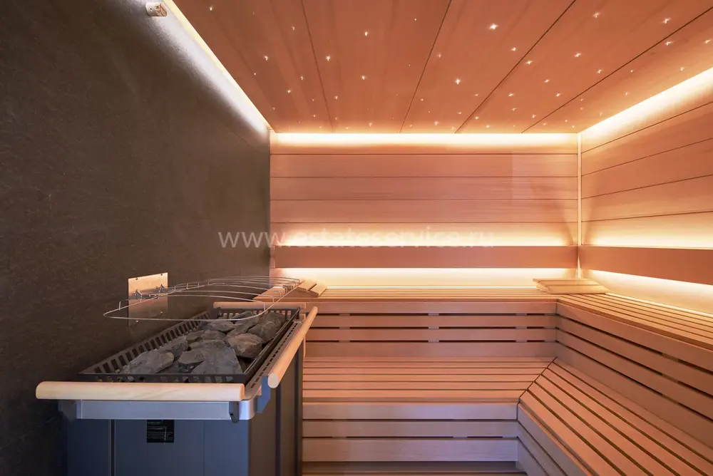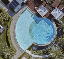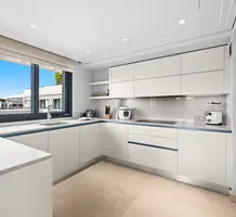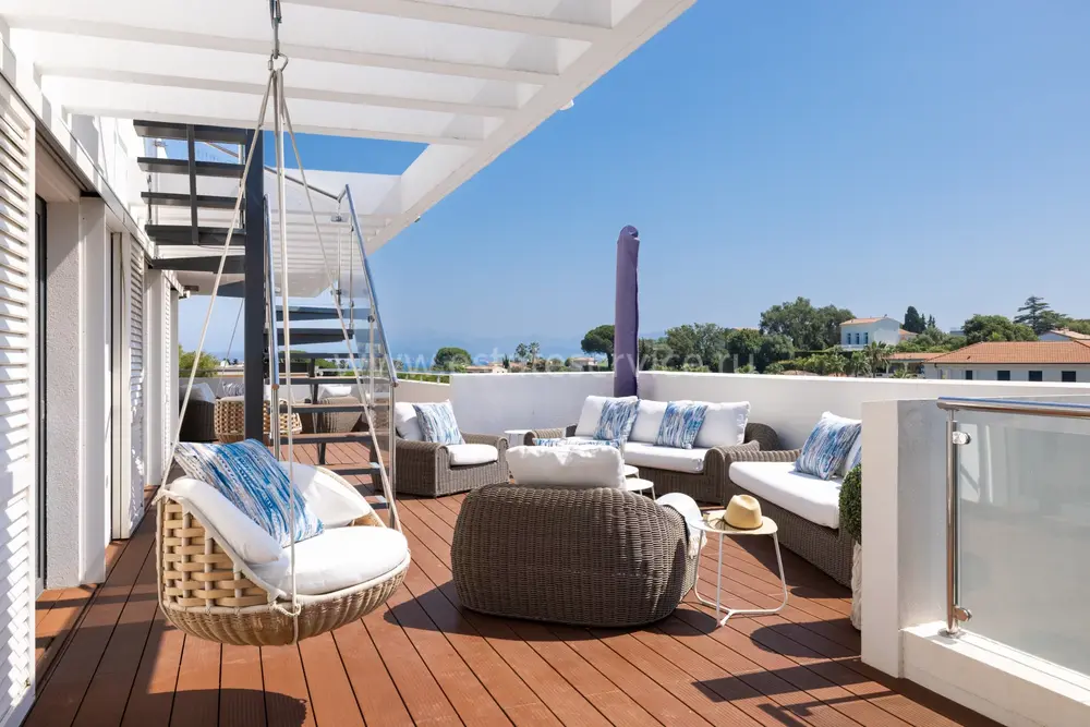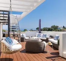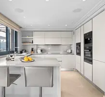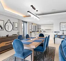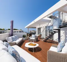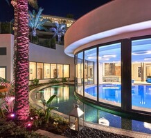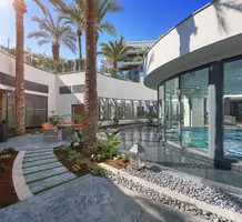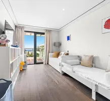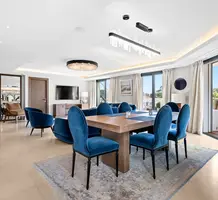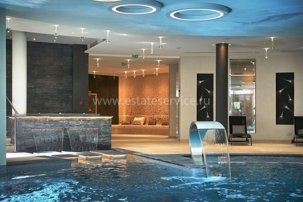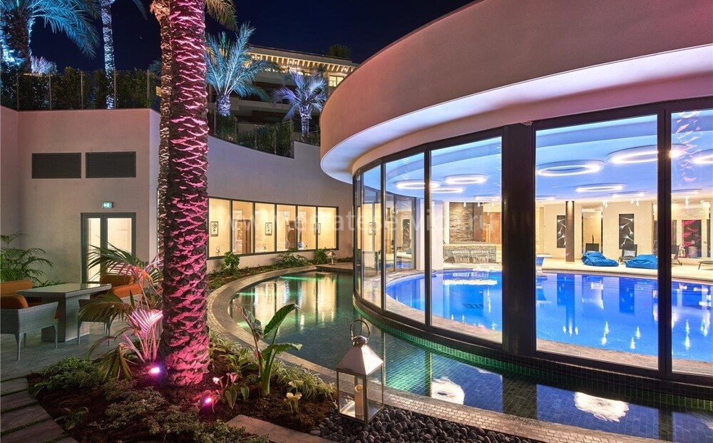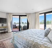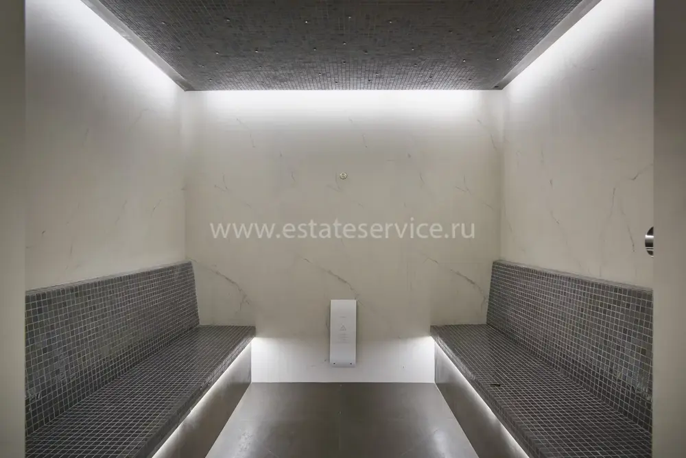 Квартира на верхнем этаже современной закрытой резиденции с бассейнами, СПА зоной, тренажерным залом, теннисным кортом и ландшафтным садом в 300-х метрах от моря. Жилая площадь 182 m² - прихожая с гостевым туалетом, гостиная 52 m² с примыкающей кухней 11.4 m², четыре спальни 11.7, 15, 18 и 20 m² со своими ванными/душевыми и туалетами, а также просторные террасы 162 и 173 m² с частным бассейном на крыше. Коммунальные платежи 8.400 € за квартал.
