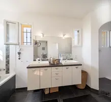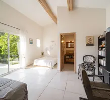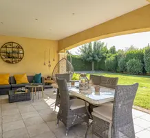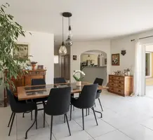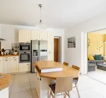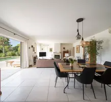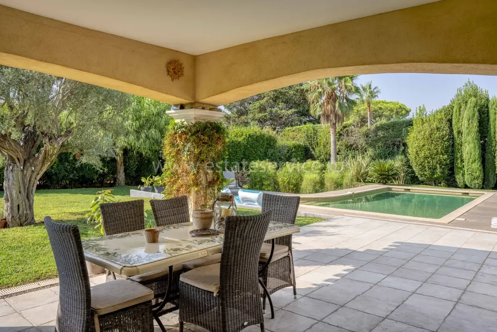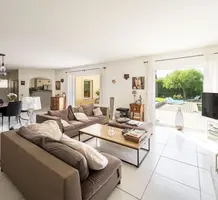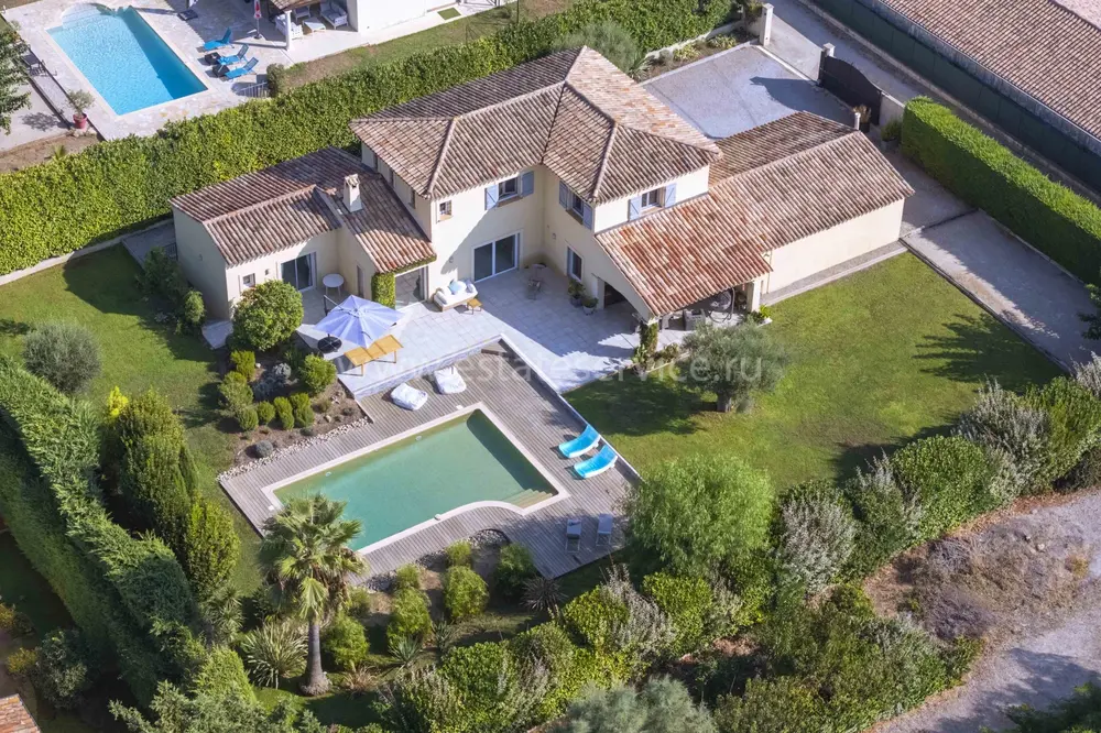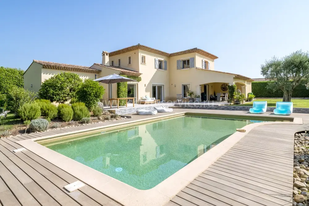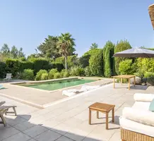Светлая вилла с тихим и удобным расположением в 2.5 километрах от побережья. Общая площадь дома 225 m² (жилая 190 m²), на ровном участке 2.000 m² ухоженный сад с газоном, бассейн, паркинг и большой гараж на две машины. На первом этаже просторная гостиная с открытой кухней планировки, спальня с ванной комнатой, гардеробной и душевой (можно сделать отдельной) комнатой, а также отдельный туалет. На втором уровне - три спальни, главная с гардеробной и ванной комнатой, а также общая душевая с туалетом.