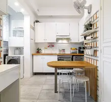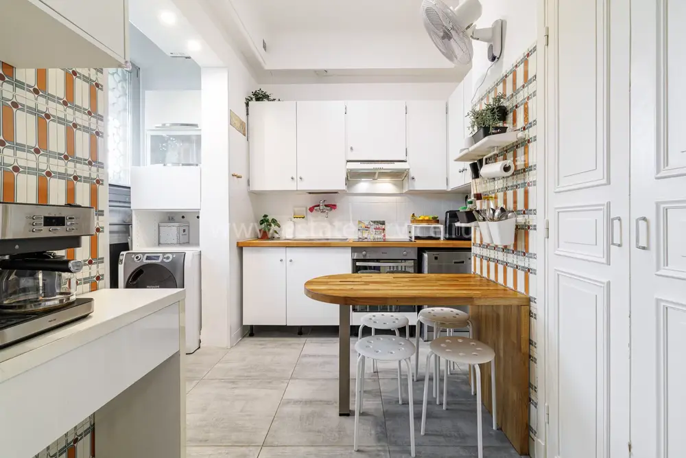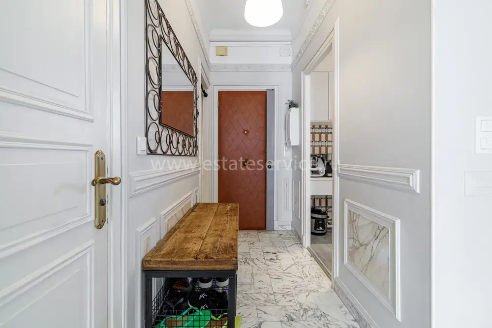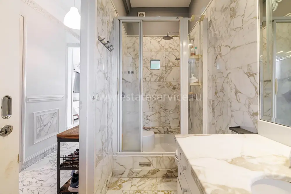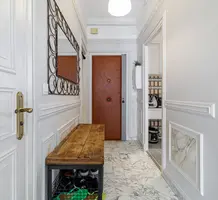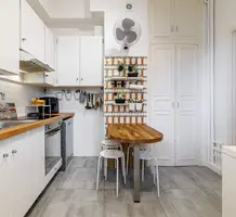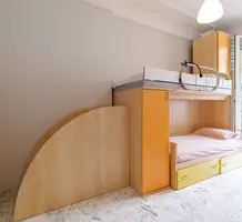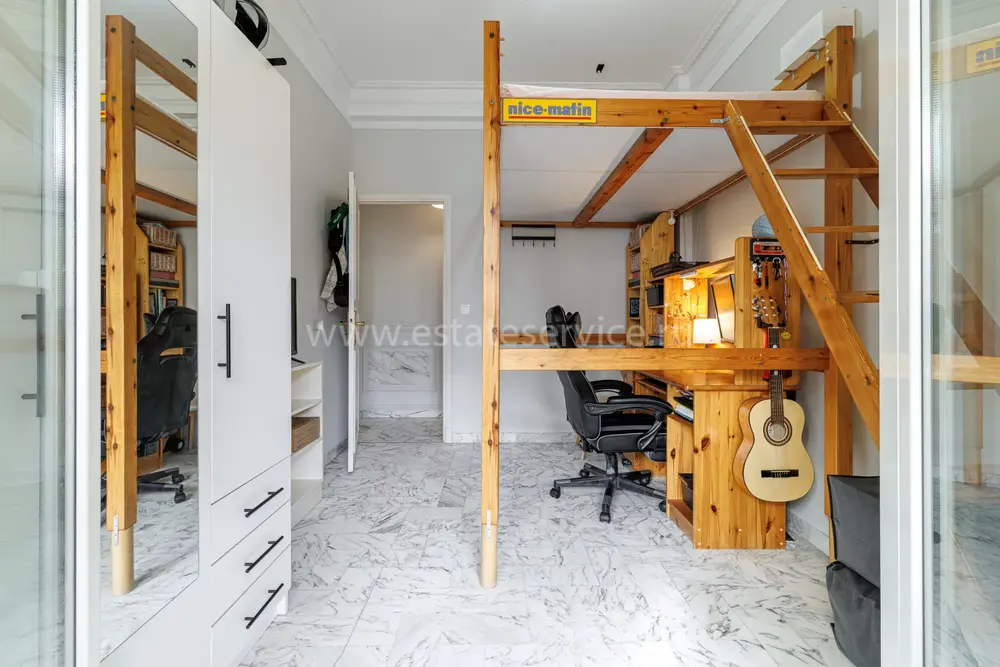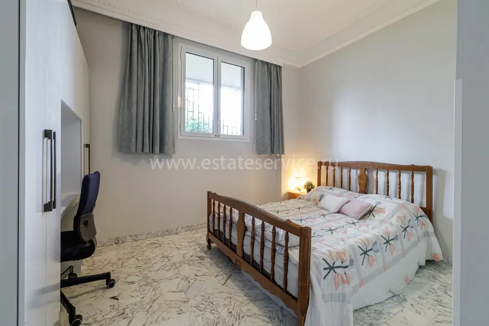 Квартира на первом приподнятом этаже здания недалеко от трамвайной линии 1. Общая площадь 87 m² (жилая 72 m²) - прихожая, гостиная с выходом на террасу 15 m², три спальни 10, 11.4 и 12.4 m², душевая и отдельный туалет. Хорошее состояние, высокие потолки, есть кладовая. Коммунальные платежи 200 €, годовой налог 1.159 €.