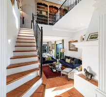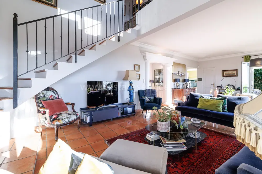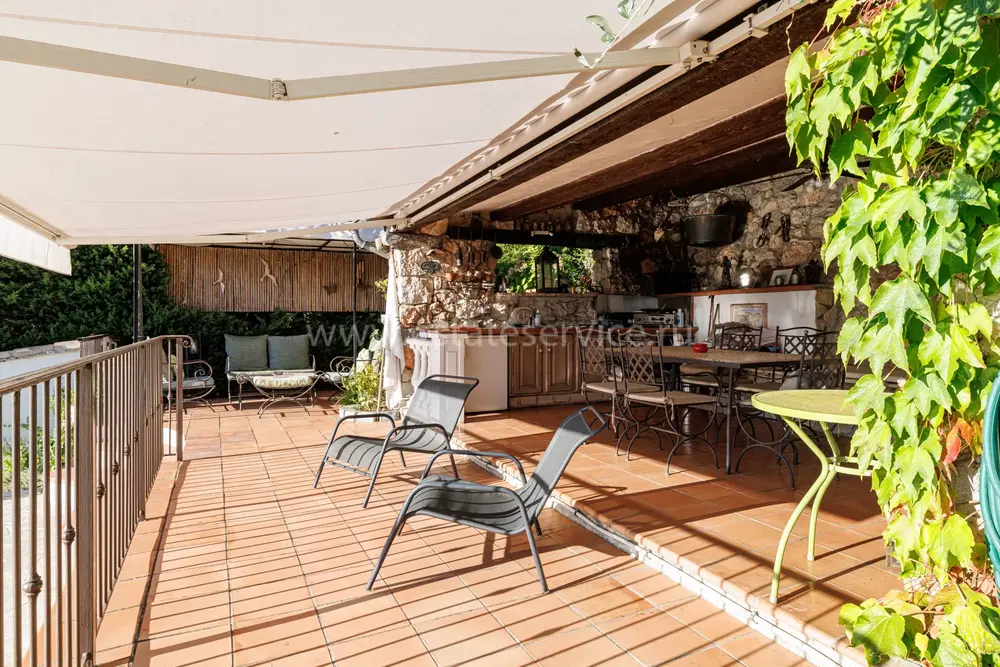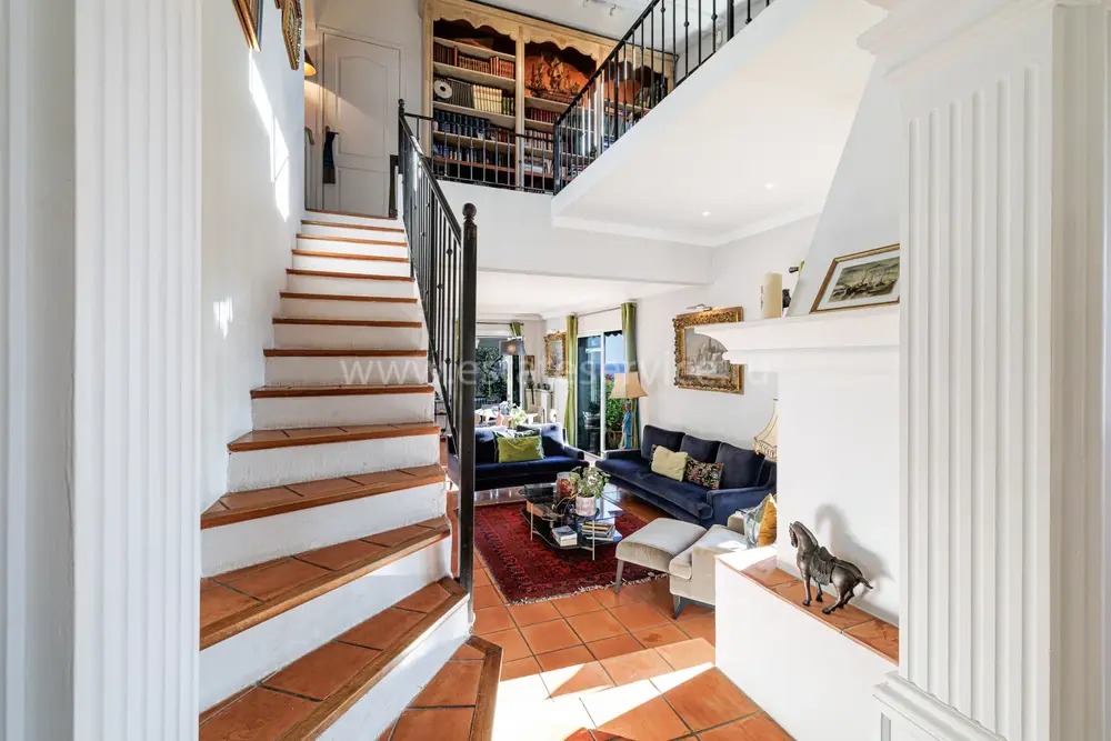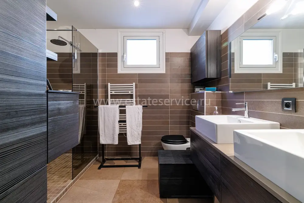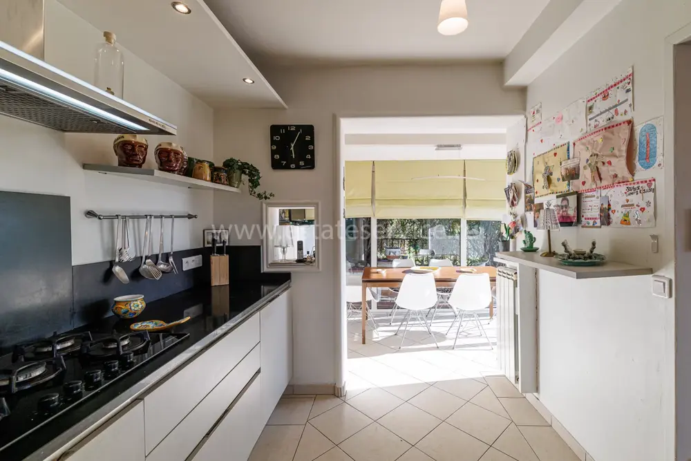 Трёхуровневая вилла на тупиковой улице безопасного домена рядом с Международной школой ABC School. Жилая площадь 163 m², на участке 600 m² ухоженный сад, зона отдыха с бассейном, есть два парковочных места. На основном уровне двойная гостиная-столовая 37.5 m² с выходом на веранду 8.3 m² и панорамную террасу 8 m², отдельная кухня 9.4 m², спальня 12 m² с ванной комнатой, душевой комнатой и туалетом. Наверху разместились открытый кабинет 11.3 m², две спальни 8 и 23.5 m², одна со своей ванной комнатой и гардеробной. Приземный этаж - отдельная спальня 15.4 m² с ванной и душевой комнатой - удачный вариант для приёма гостей или сдачи в аренду. Годовой налог 2.233 €.