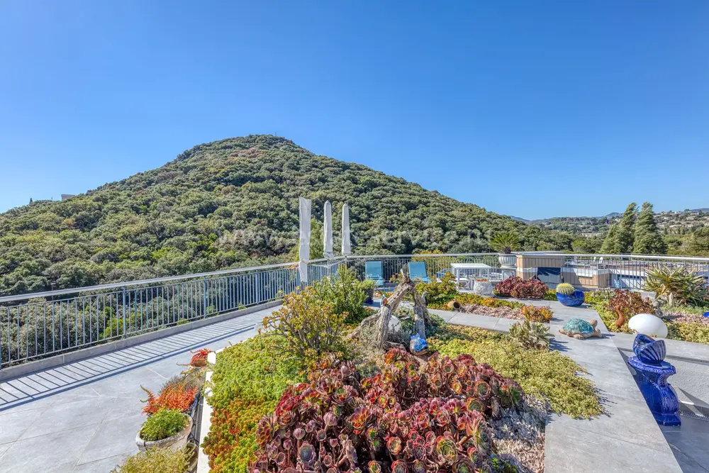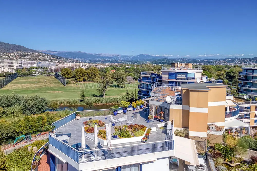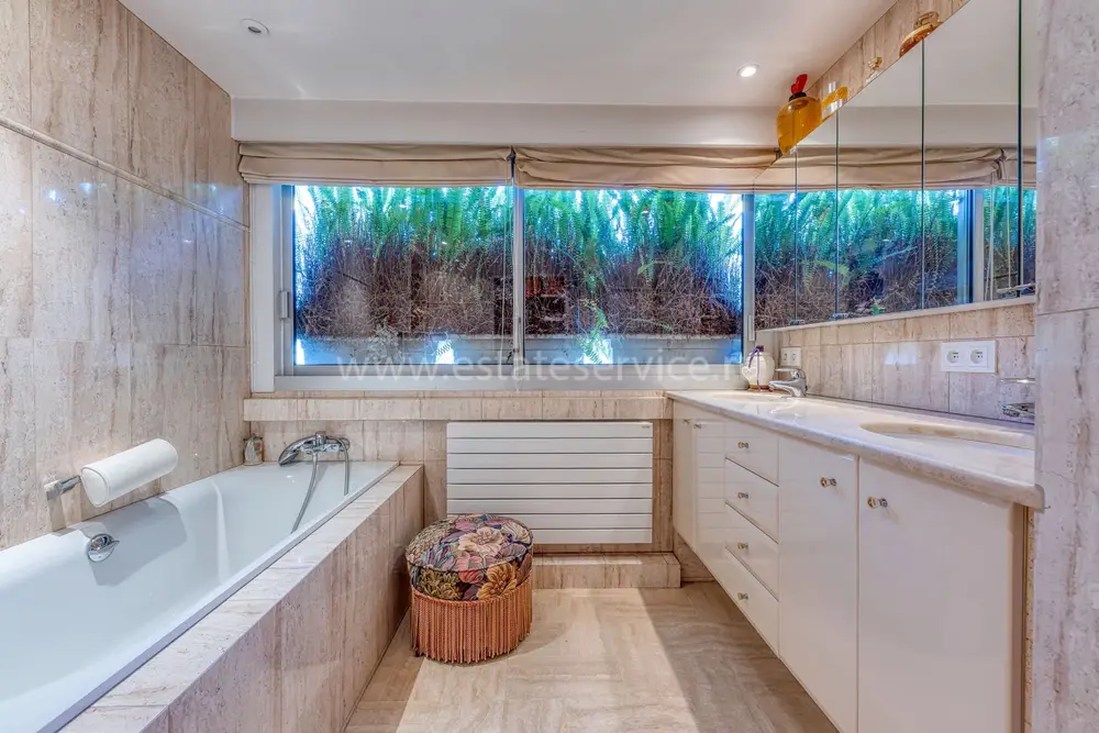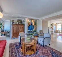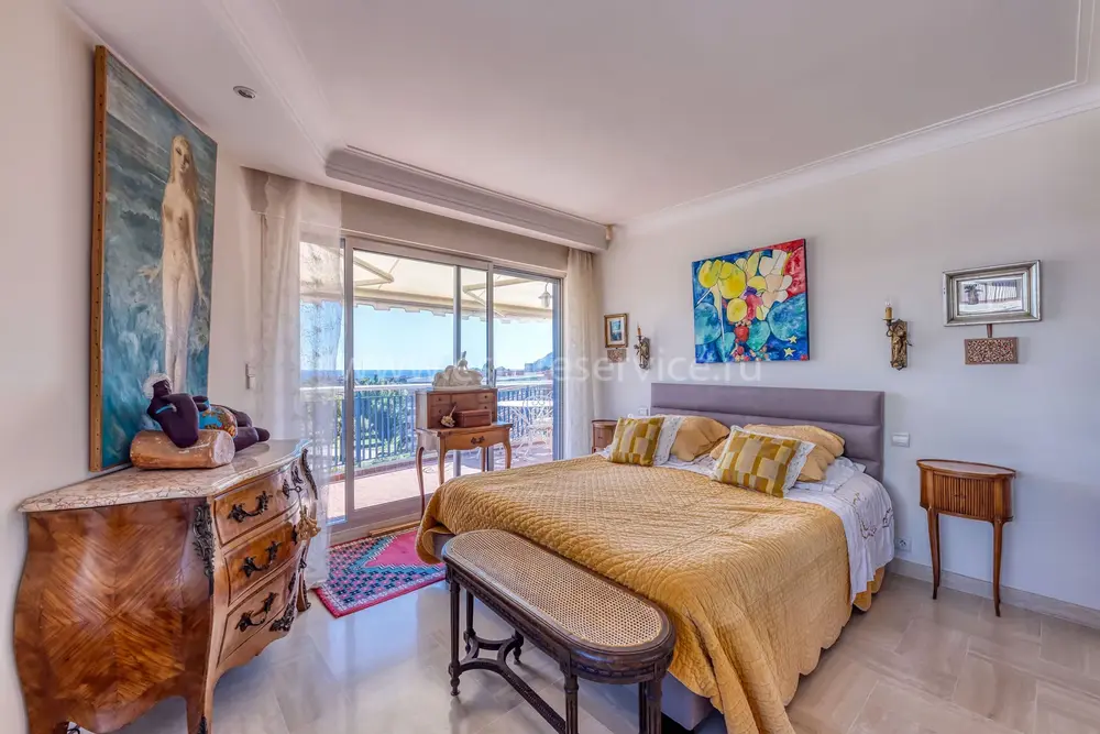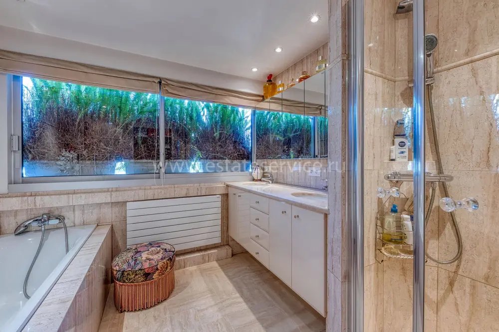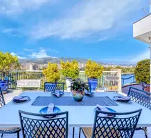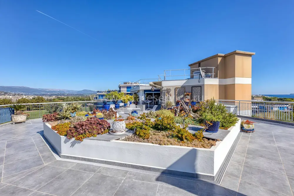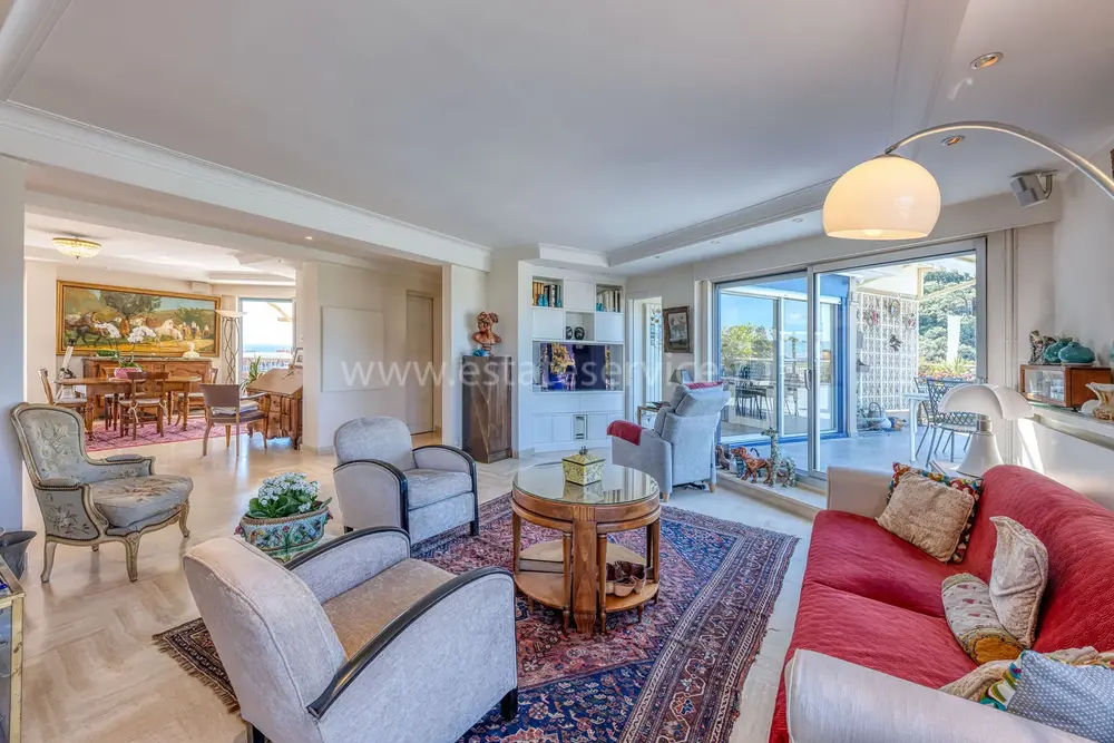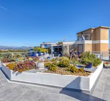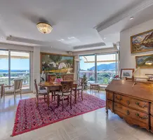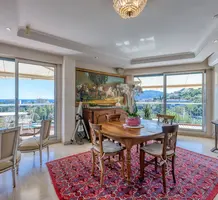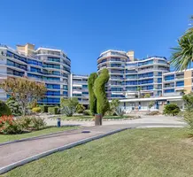 Квартира на верхнем этаже элитного комплекса с парком, бассейном, консьержем и видеонаблюдением в 500-х метрах от моря. Общая площадь 345 m² (жилая 122 m²) - прихожая, гостиная 30 m², столовая 21 m², кухня 9 m², две спальни 12.6 и 19 m², главная с гардеробной и ванной комнатой, кабинет 5.5 m² - все комнаты выходят на балкон 61 m² или панорамную террасу 162 m², общая душевая, прачечная и отдельный туалет. Отличное состояние, можно установить джакузи, оборудовать ещё две спальни, включены кладовая 4.6 m² и паркинг 11.8 m², можно докупить гараж и причал для лодки. Коммунальные платежи 700 €, годовой налог 1.791 €.