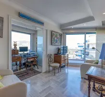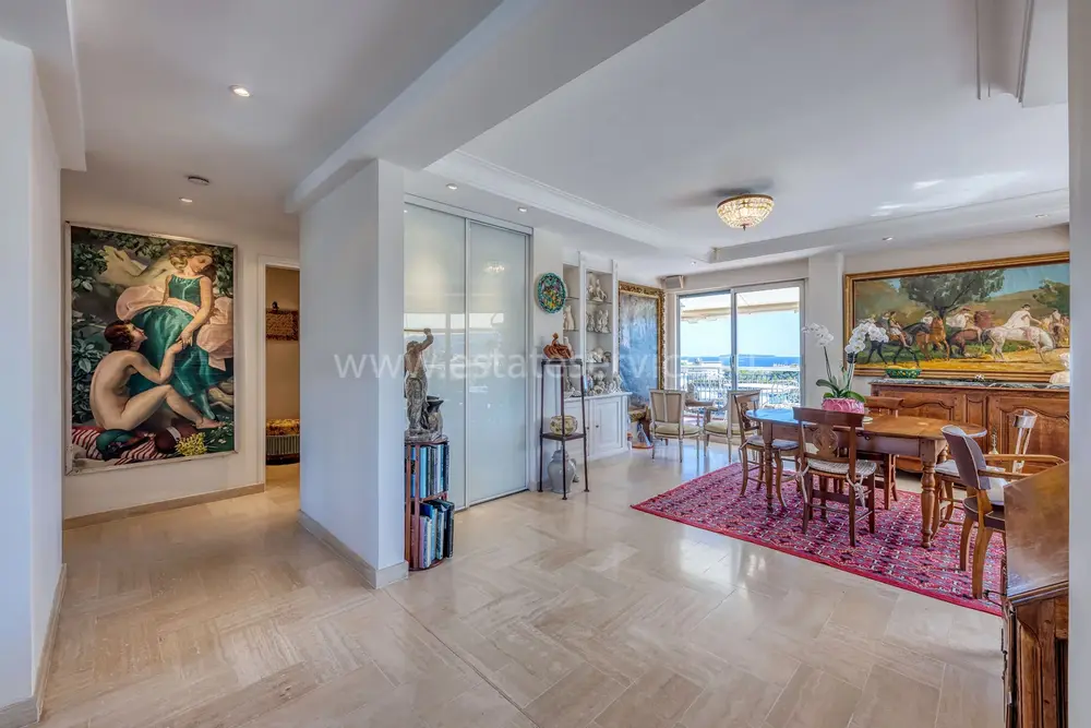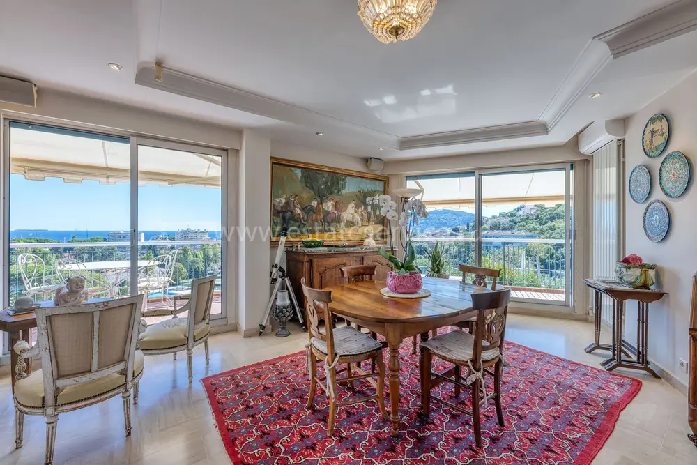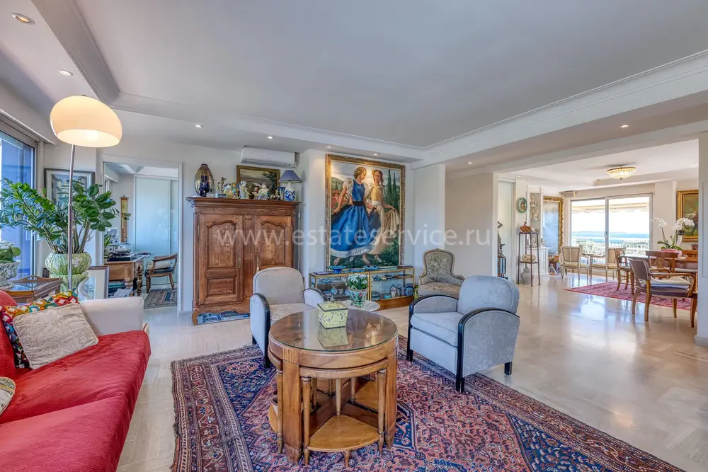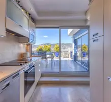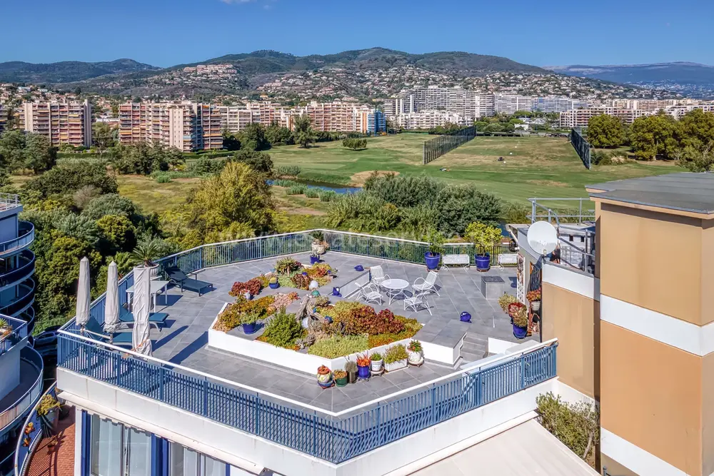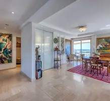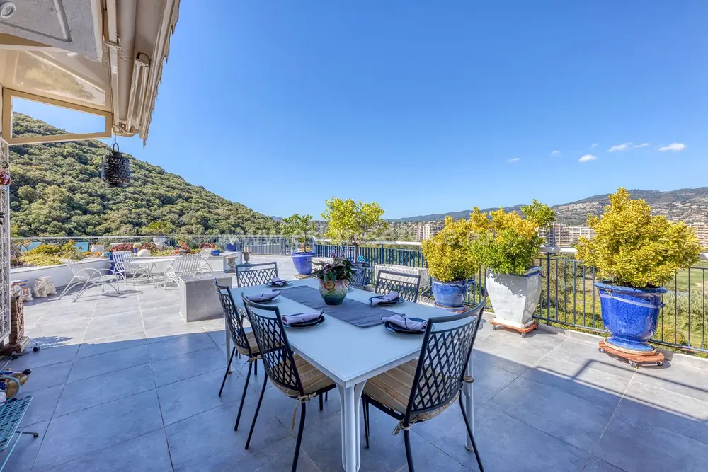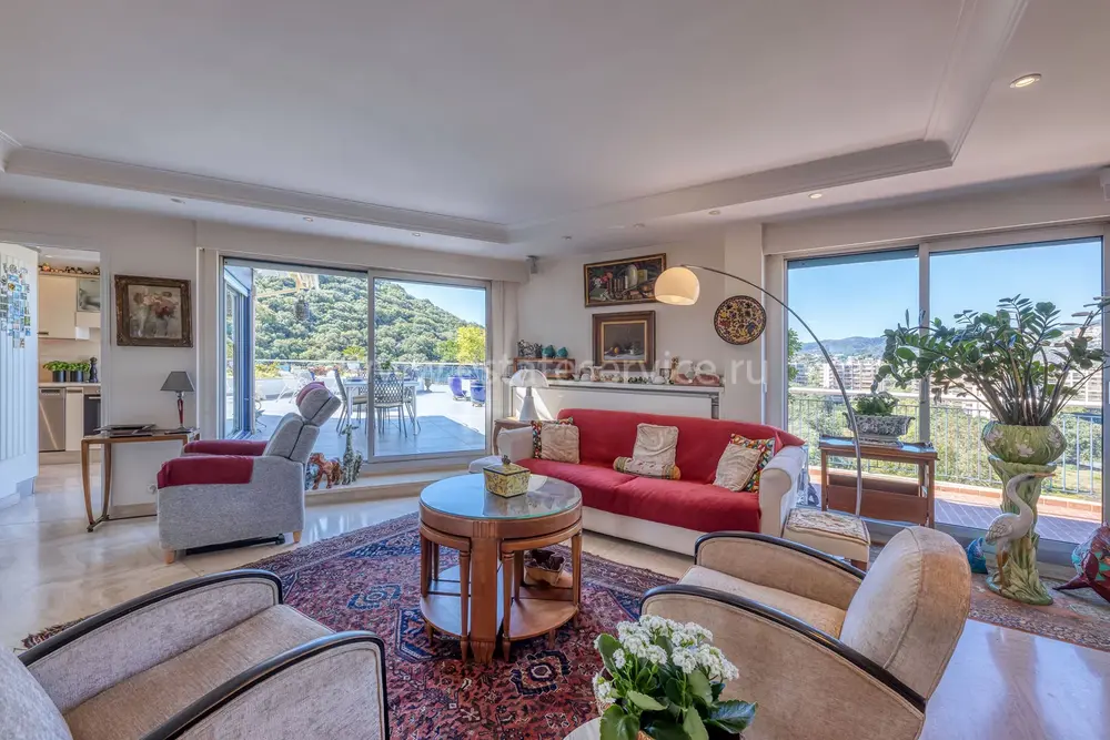 Квартира на верхнем этаже элитного комплекса с парком, бассейном, консьержем и видеонаблюдением в 500-х метрах от моря. Общая площадь 345 m² (жилая 122 m²) - прихожая, гостиная 30 m², столовая 21 m², кухня 9 m², две спальни 12.6 и 19 m², главная с гардеробной и ванной комнатой, кабинет 5.5 m² - все комнаты выходят на балкон 61 m² или панорамную террасу 162 m², общая душевая, прачечная и отдельный туалет. Отличное состояние, можно установить джакузи, оборудовать ещё две спальни, включены кладовая 4.6 m² и паркинг 11.8 m², можно докупить гараж и причал для лодки. Коммунальные платежи 700 €, годовой налог 1.791 €.