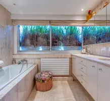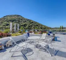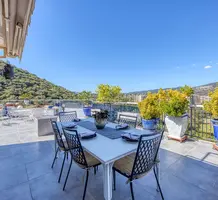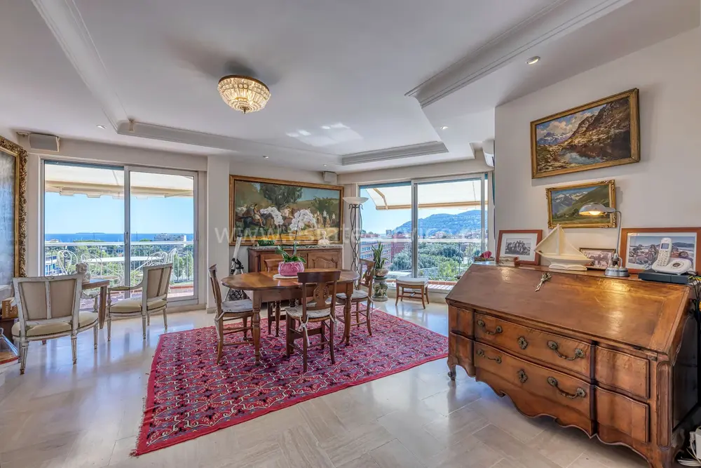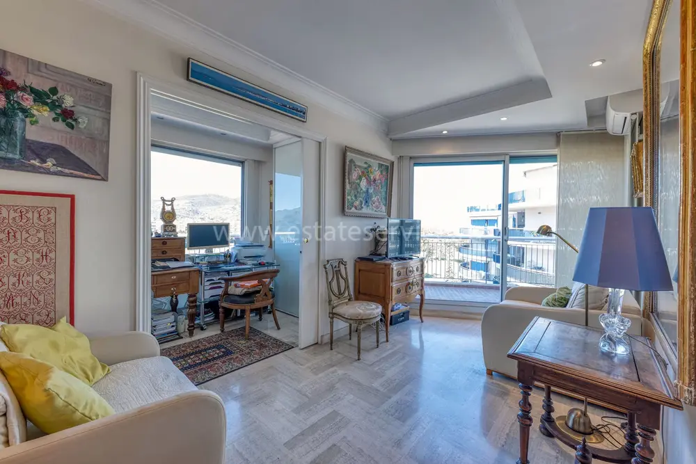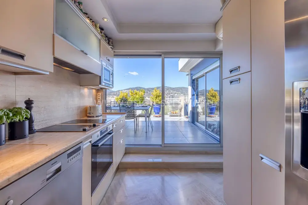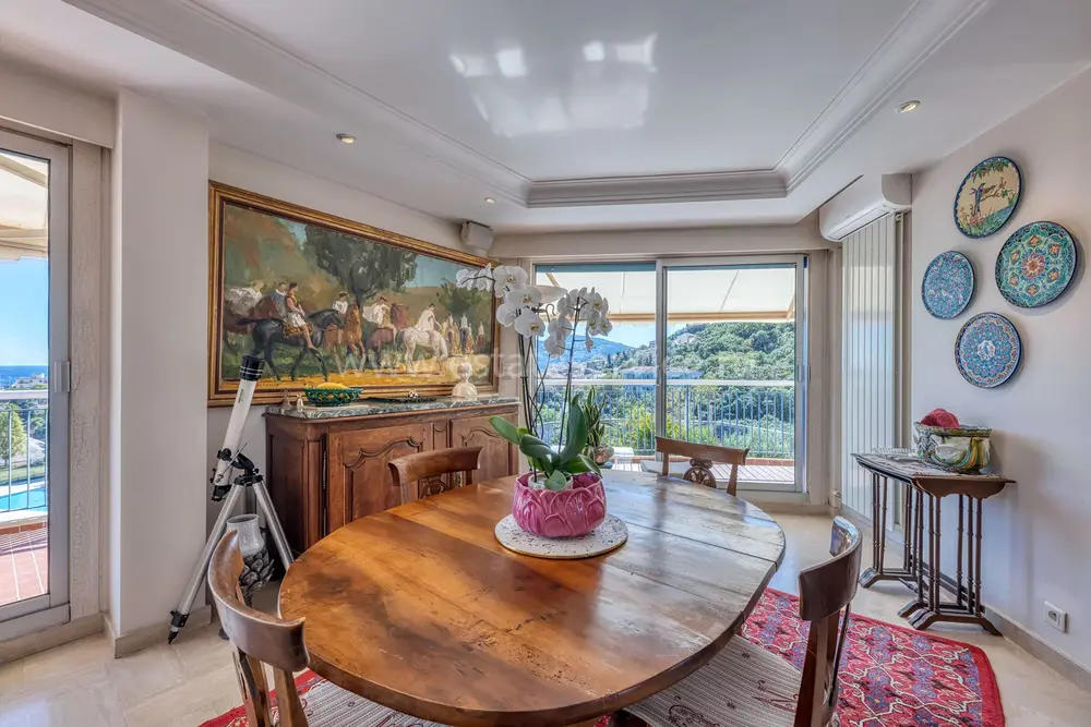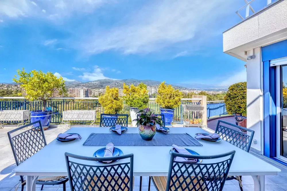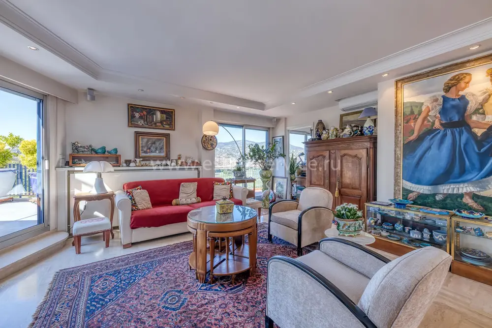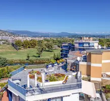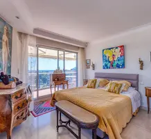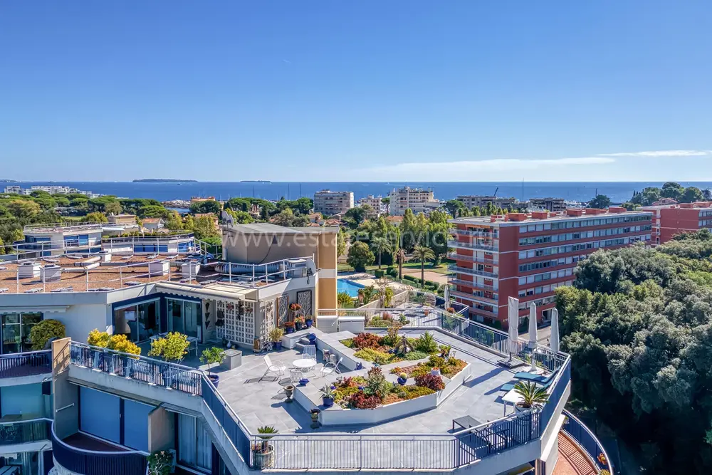 Квартира на верхнем этаже элитного комплекса с парком, бассейном, консьержем и видеонаблюдением в 500-х метрах от моря. Общая площадь 345 m² (жилая 122 m²) - прихожая, гостиная 30 m², столовая 21 m², кухня 9 m², две спальни 12.6 и 19 m², главная с гардеробной и ванной комнатой, кабинет 5.5 m² - все комнаты выходят на балкон 61 m² или панорамную террасу 162 m², общая душевая, прачечная и отдельный туалет. Отличное состояние, можно установить джакузи, оборудовать ещё две спальни, включены кладовая 4.6 m² и паркинг 11.8 m², можно докупить гараж и причал для лодки. Коммунальные платежи 700 €, годовой налог 1.791 €.