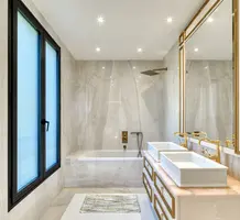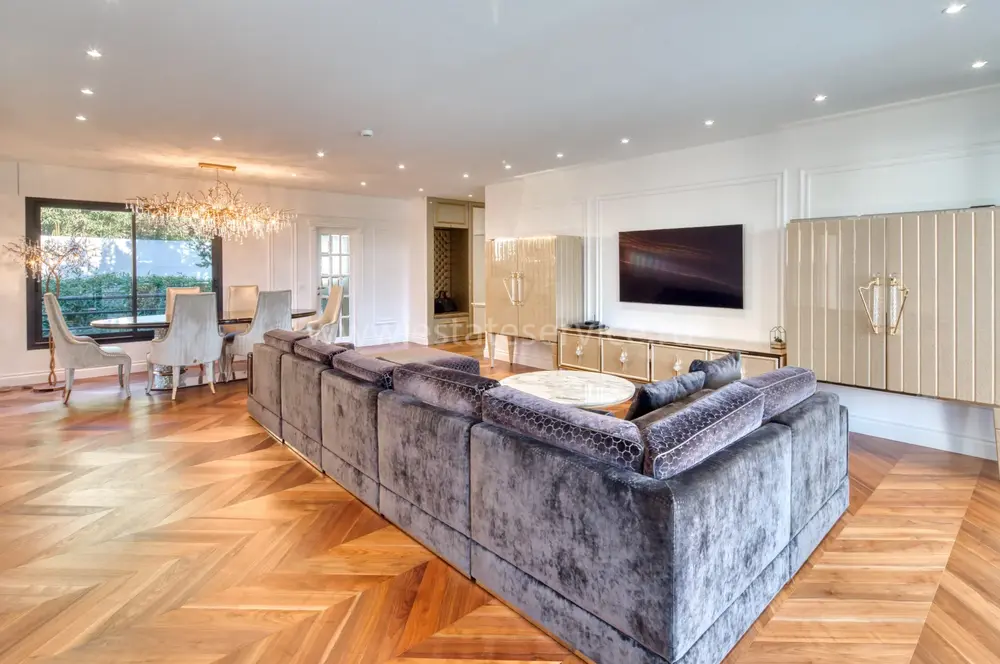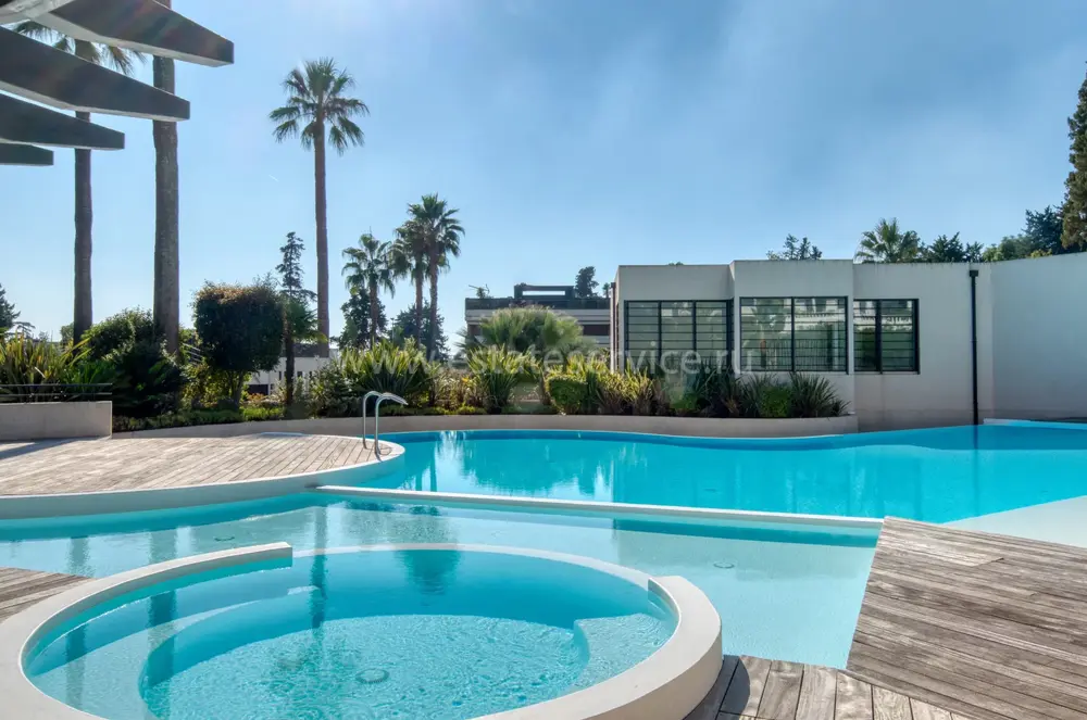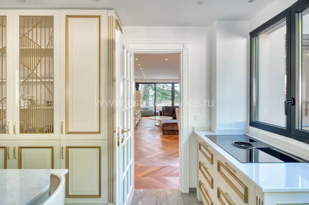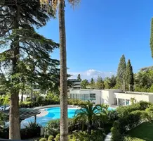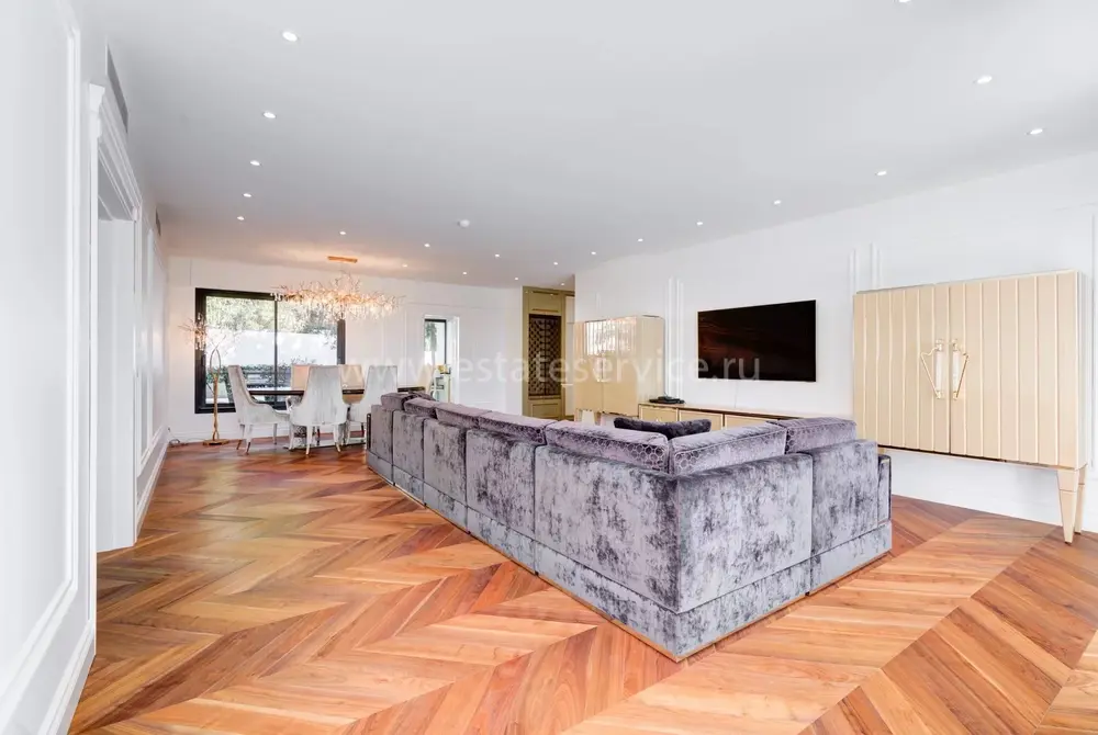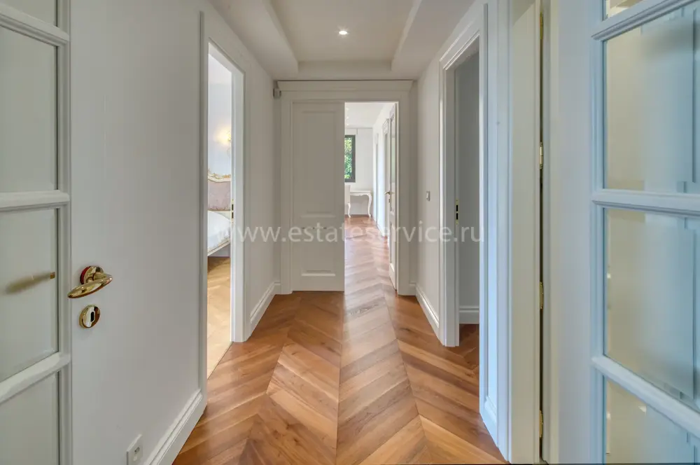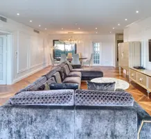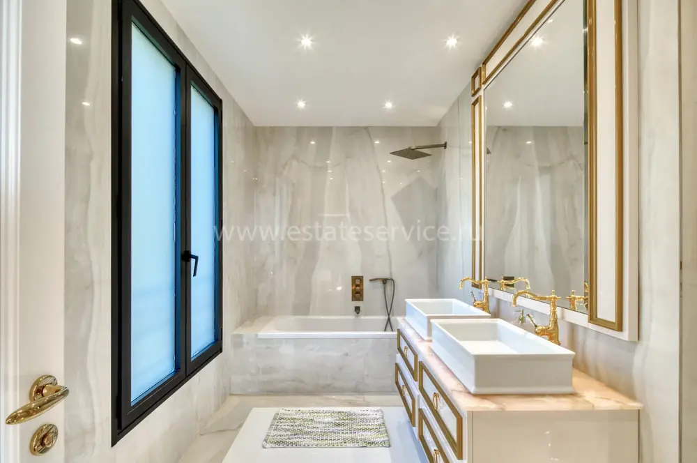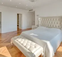 Квартира на третьем этаже закрытого комплекса с зелёной зоной, бассейном, джакузи и тренажерным залом. Жилая площадь 157 m² - прихожая, гостиная выходящая на большую террасу - панорамный вид на море, отдельная кухня с кладовой, три большие спальни-сьют с гардеробными и ванными комнатами/туалетами. Идеальное состояние, есть гараж на три автомобиля. Коммунальные платежи 835 €, годовой налог 3.447 €.