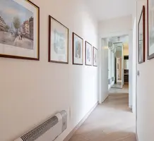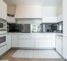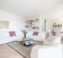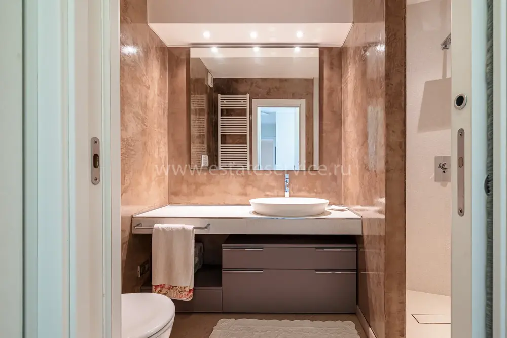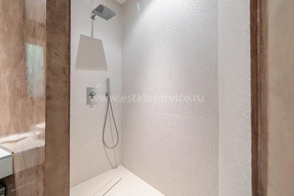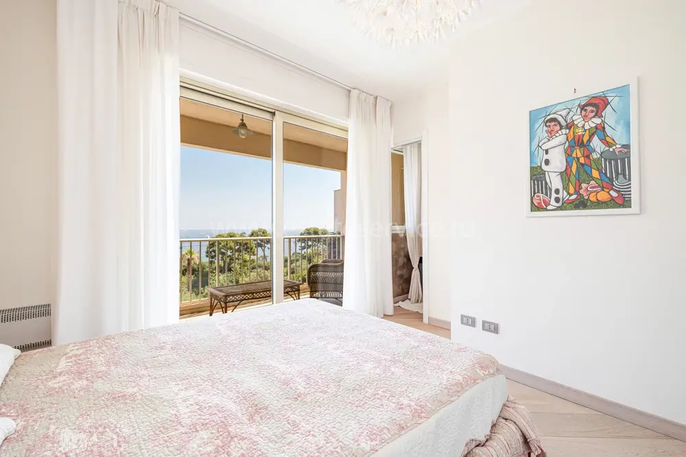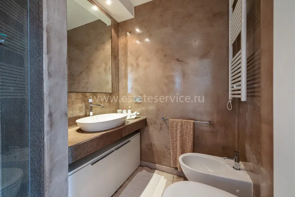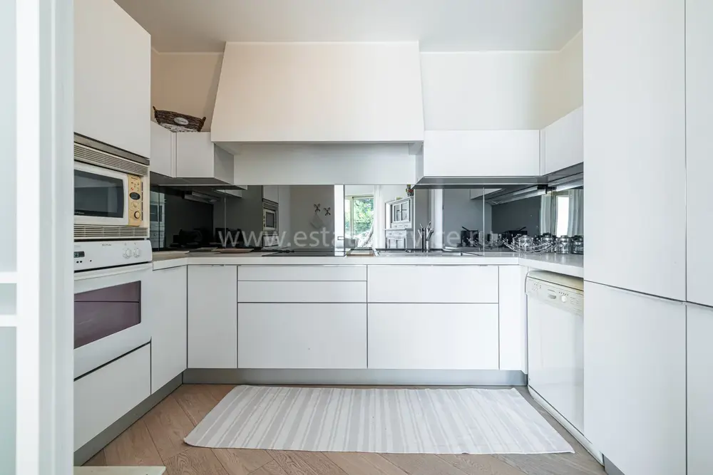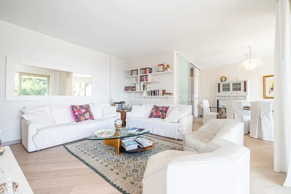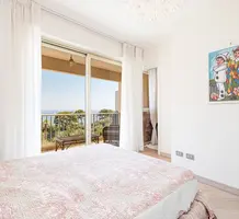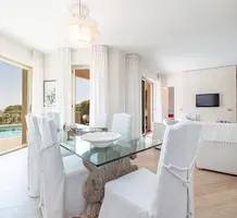 Смежная вилла в закрытой резиденции с консьержем в пешей доступности от моря. Жилая площадь 119 m², на первом уровне - прихожая, просторная гостиная с выходом на большую террасу с садом и частным бассейном, отдельная кухня и спальня с ванной комнатой. На втором разместились три спальни, одна из которых выходит на террасу, две ванные комнаты и пятая небольшая спальня наверху в мезонине. Приятный вид на море и Италию, есть два гаража и две кладовые. Коммунальные платежи 650 €, годовой налог 3.046 €.
